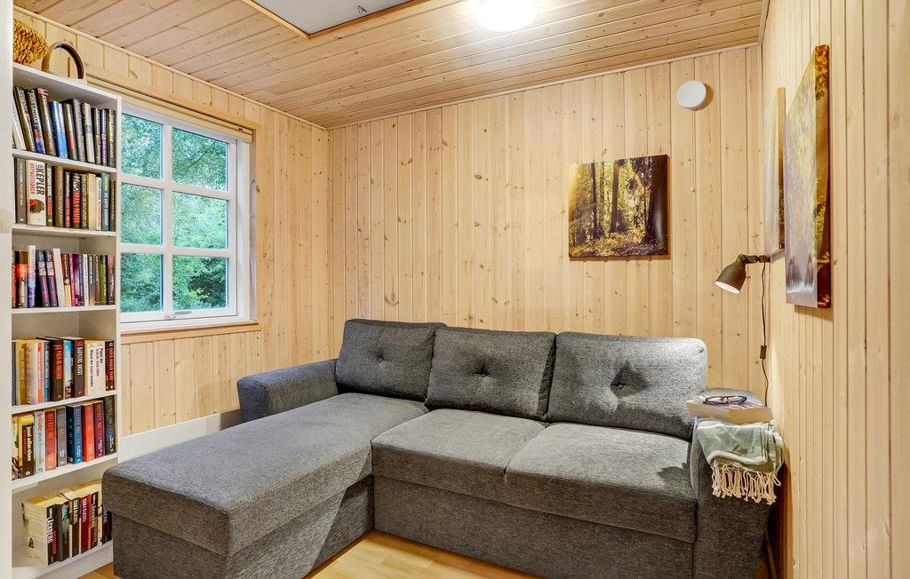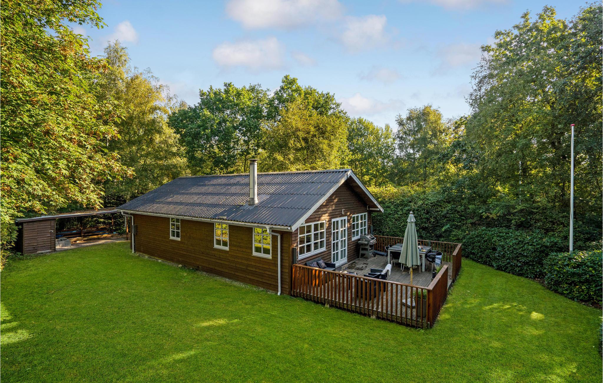 Helles und gepflegtes Feriemhaus mit finnischem Holzbad und idyllischem, geschütztem Naturgrundstück, nur 300 vom Limfjord entfernt.