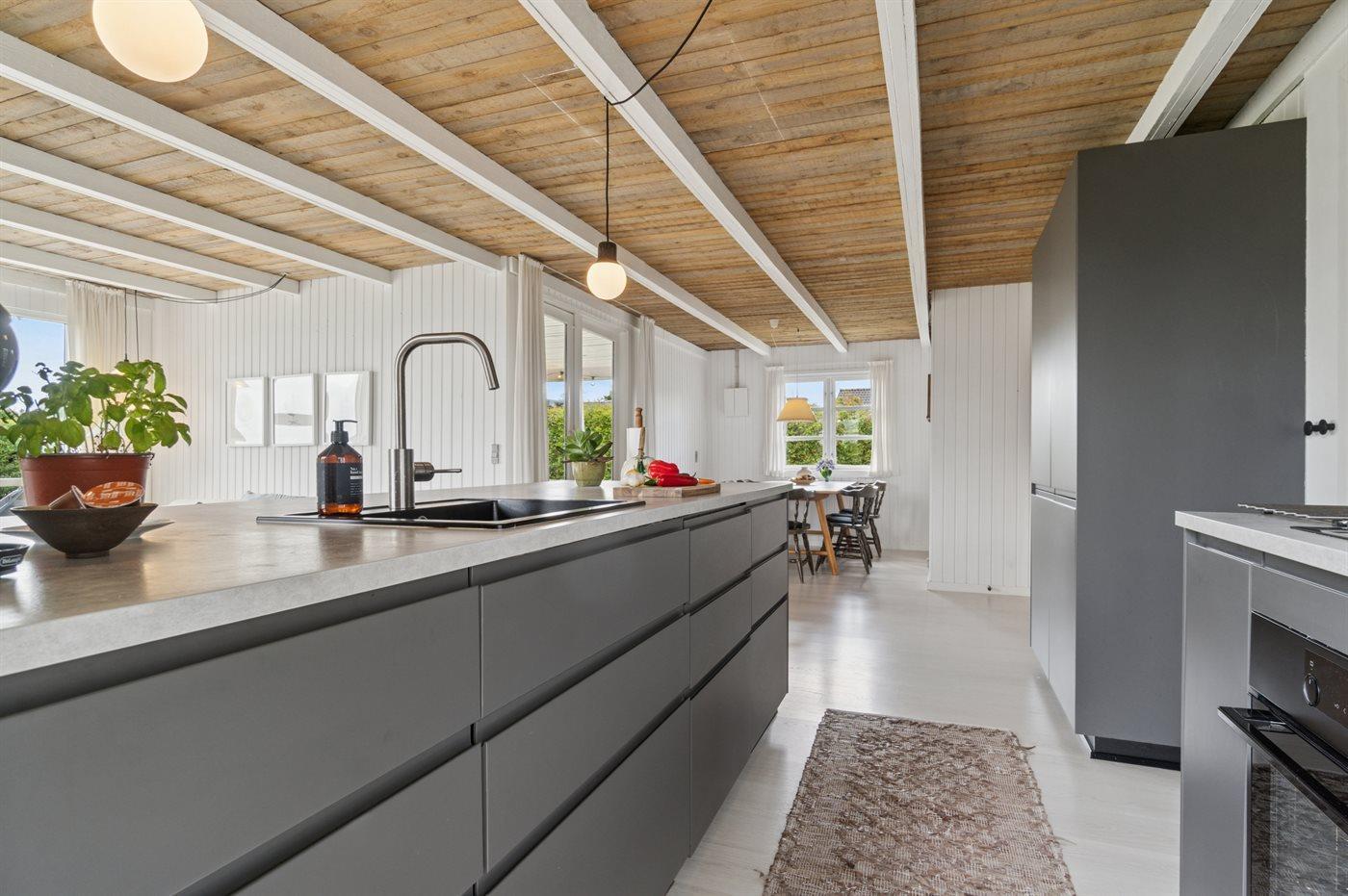 An der schönen Küste am Kattegat, nördlich von Juelsminde, findest du dieses gepflegte und einladende Ferienhaus – mit einer wirklich guten Lage – in einem attraktiven und beliebten Feriengebiet. Das Haus liegt nur ca. 180 Meter vom Meer entfernt, und sowohl drinnen als auch draußen kannst du die herrliche Aussicht über die Umgebung und das Wasser genießen. Unten am Strand gibt es einen schönen Badesteg – ein idealer Ort für die ganze Familie, um viele Stunden in der Natur zu verbringen.