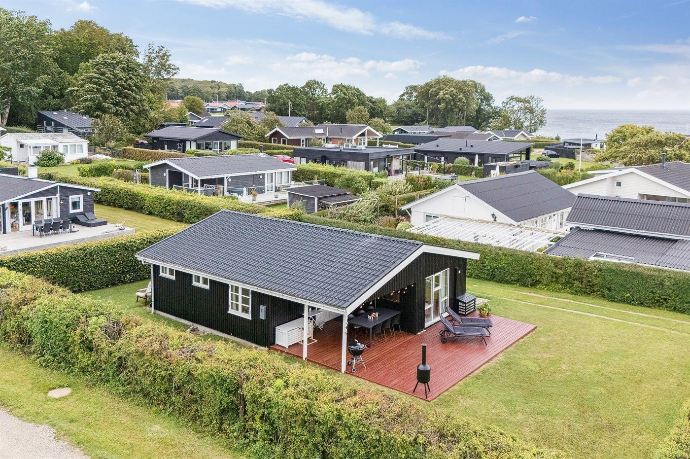 Charmantes Ferienhaus mit Meerblick nahe Juelsminde, ideal für Familien, mit Garten, Terrassen und Strandzugang.