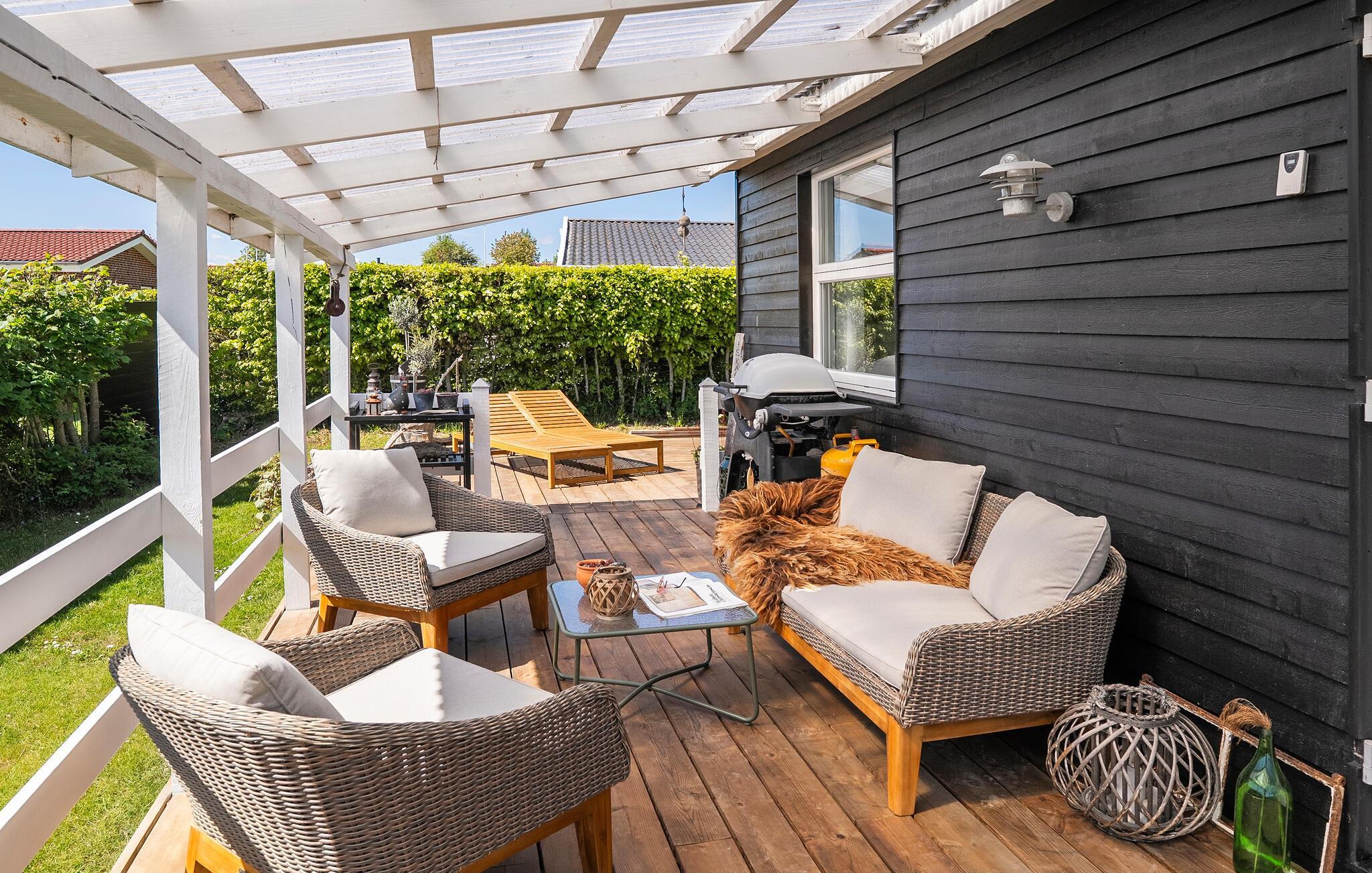Eine schöne Terrasse mit freien und überdachten Bereichen bietet Ihnen die Möglichkeit, bei jedem Wetter erholsame Stunden an der frischen Seeluft zu genießen. Starten Sie mit einem sonnigen Frühstück in den Tag, tanken Sie Energie auf der Sonnenliege und schlemmen Sie am Grill.