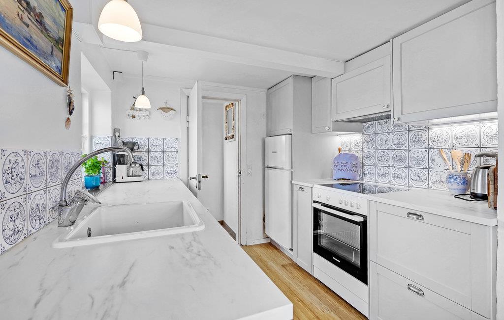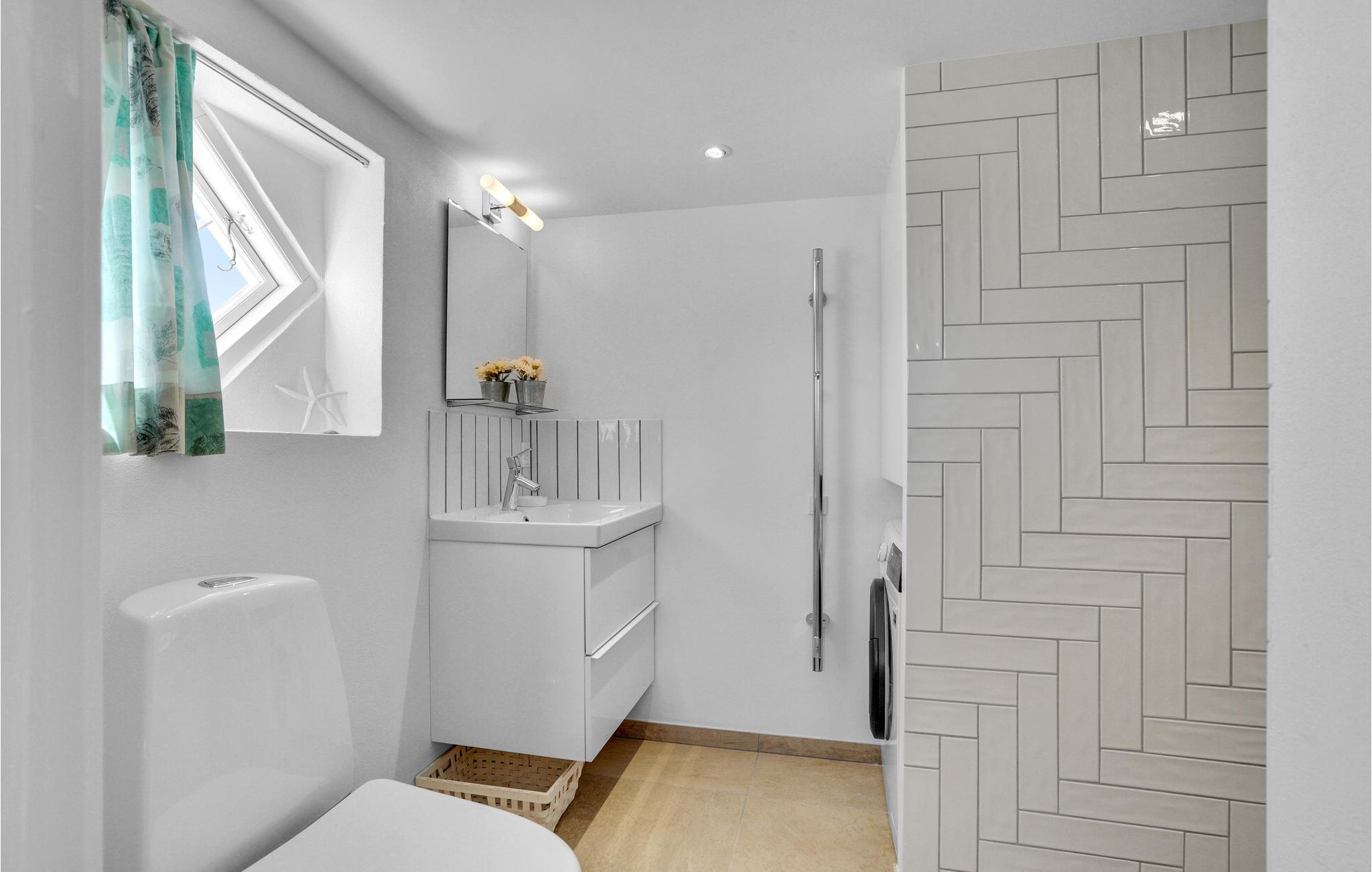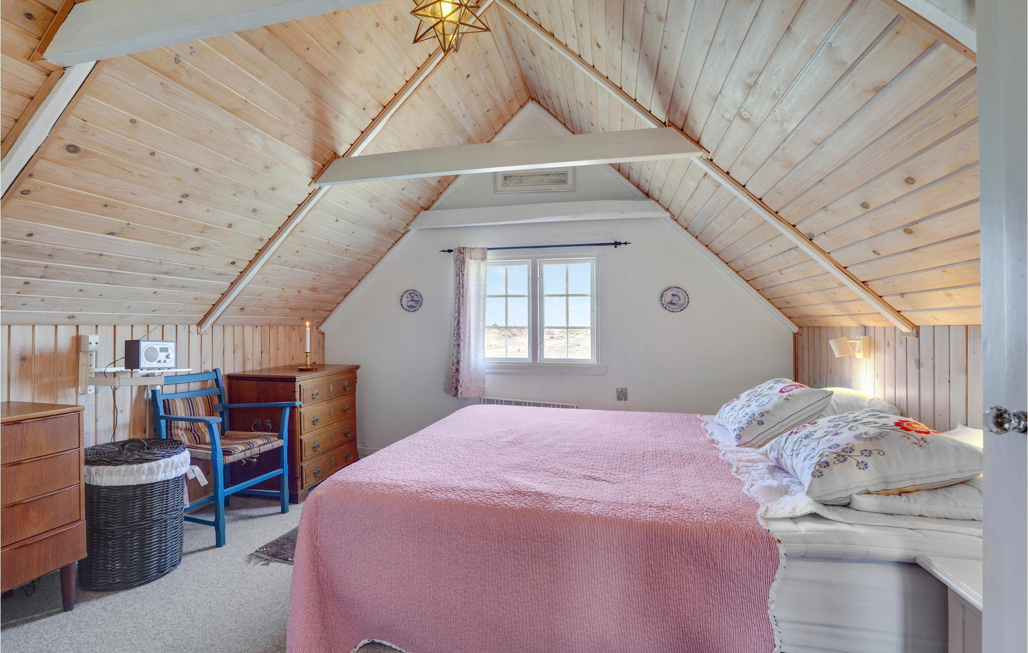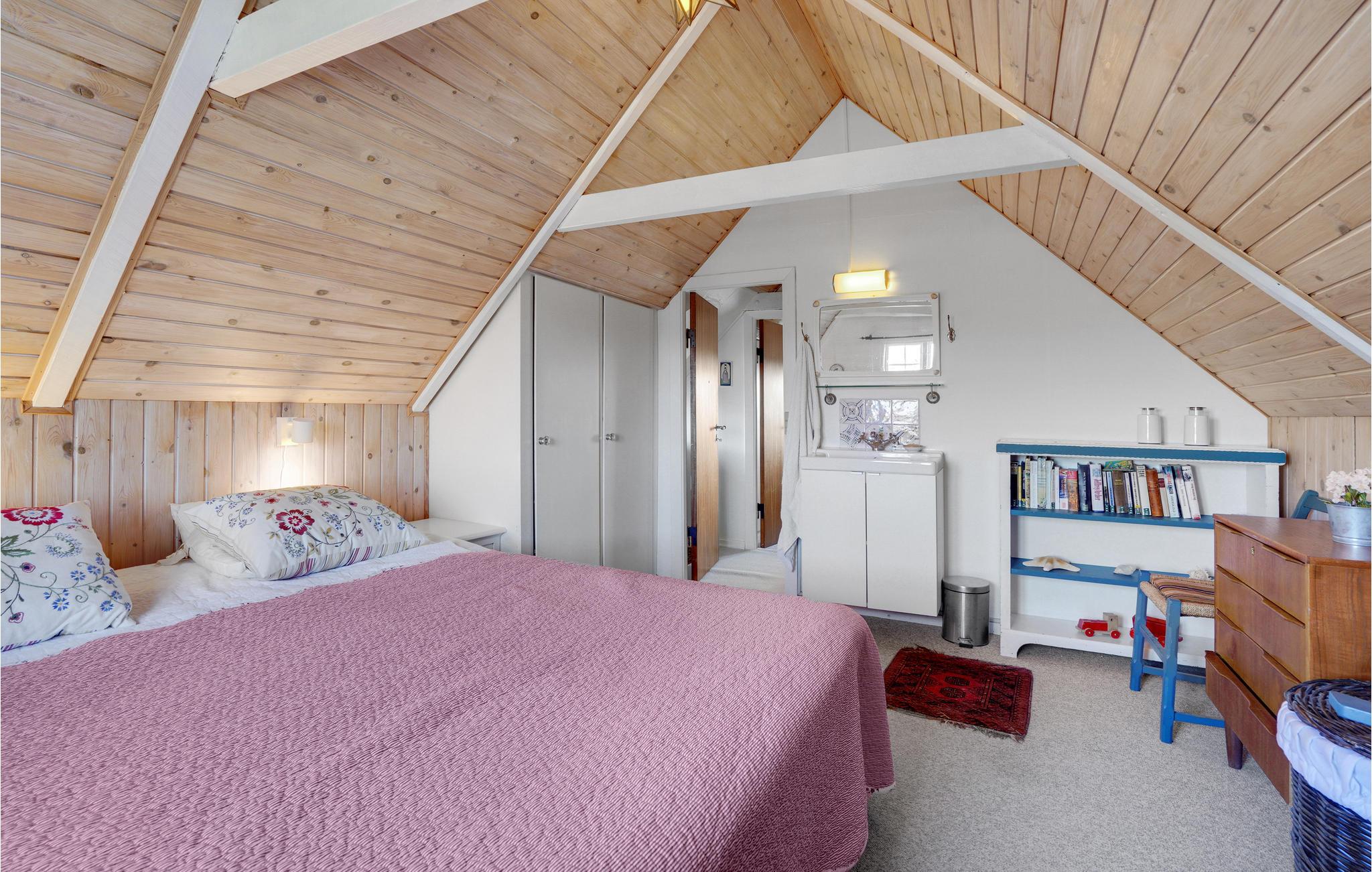 Das Haus ist gut eingerichtet mit komfortablen und soliden Möbeln sowie einem Holzofen unter der Treppe. Das Wohnzimmer steht in offener Verbindung mit der Funktionsküche, die unter anderem mit Backofen, Herd, Kühlschrank und Geschirrspüler ausgestattet ist. Hier können Sie leicht leckere Mahlzeiten für die Familie oder Freunde zubereiten. In Flur und Bad befindet sich eine Fußbodenheizung. Es gibt Platz für insgesamt vier Personen, die auf die beiden Schlafzimmer verteilt werden können. Das dritte Zimmer wird als Abstellraum genutzt.