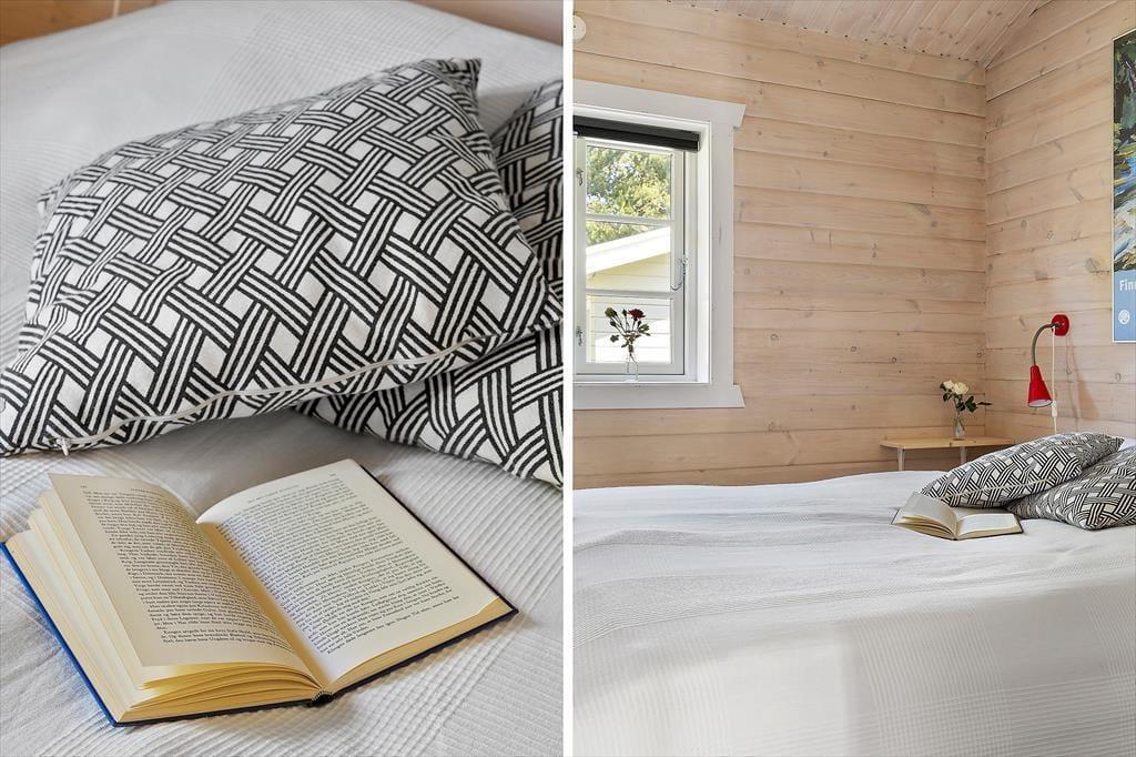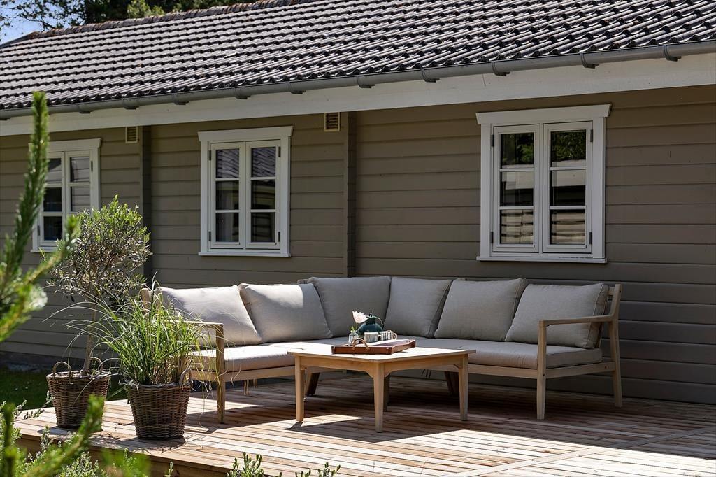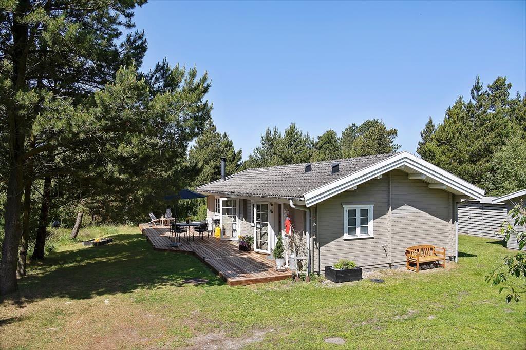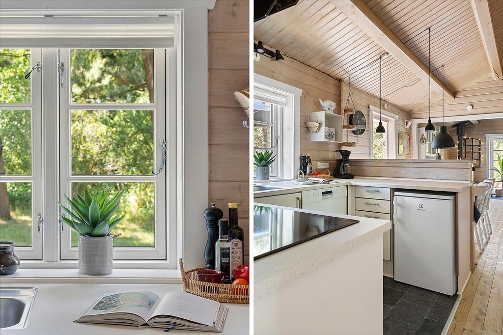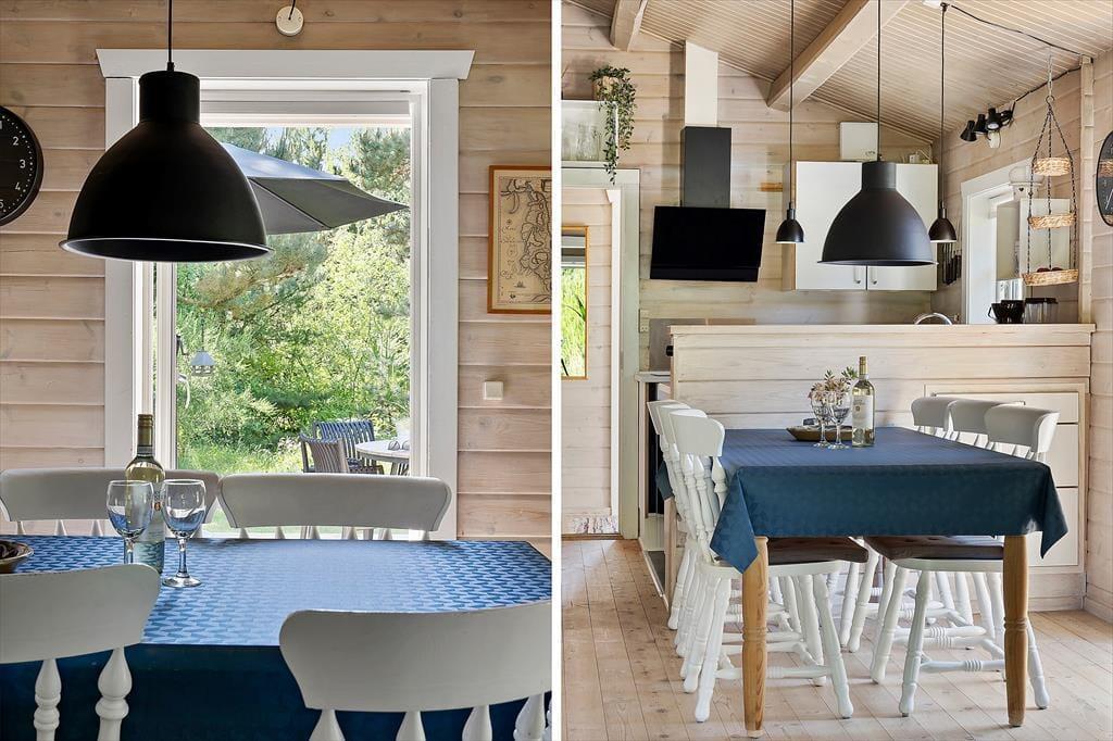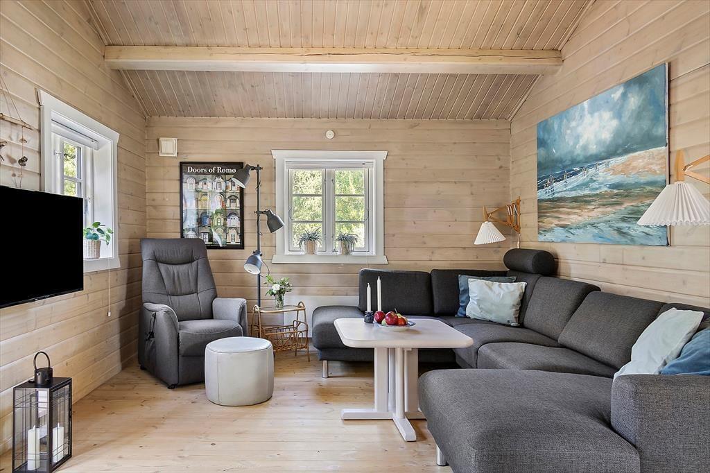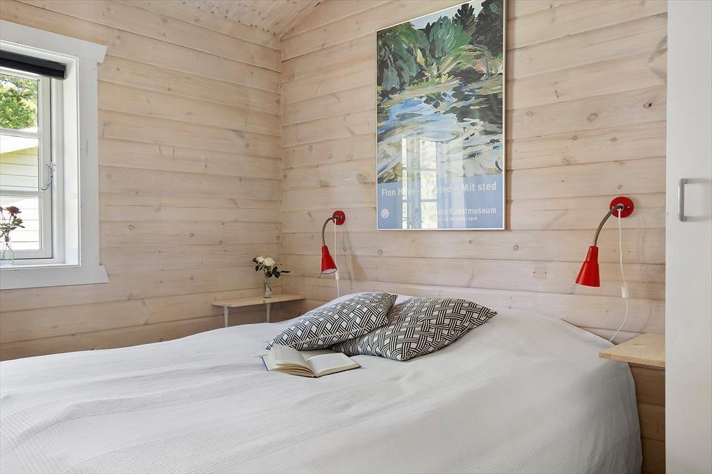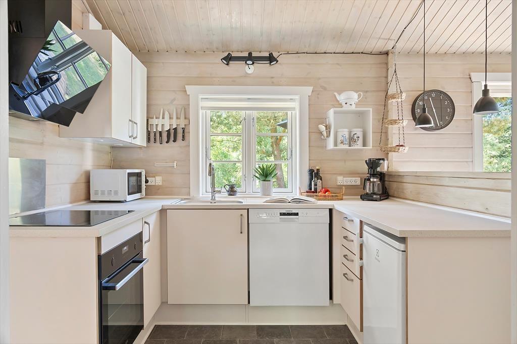 Das Ferienhaus steht hier seit 1992, wo es auf schöne und klassische Weise mit solider Holzfassade und weißen Sprossenfenstern errichtet wurde. Im Innen herrscht eine gute Atmosphäre. Es ist ein Ort, an dem du dich schnell zuhause fühlen und die Urlaubsstimmung wirklich erleben kannst, während du im offenen Küchenbereich mit dem Kochen beschäftigt bist, Brettspiele spielst und dich im Wohnzimmer entspannst oder in einem der drei Schlafzimmer lange schläfst. Alle Räume sind hell und einladend eingerichtet – auch das Badezimmer, das unter anderem mit einer Waschmaschine ausgestattet ist, sodass die Urlaubswäsche aufgefrischt werden kann, falls du nicht genug Shorts und Sommerkleider eingepackt hast.