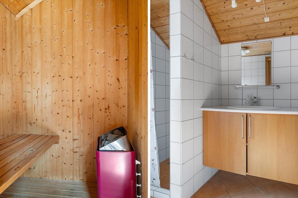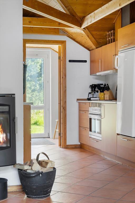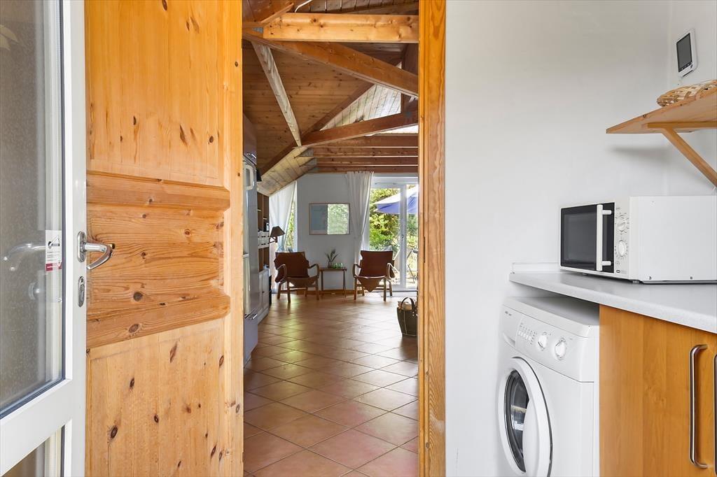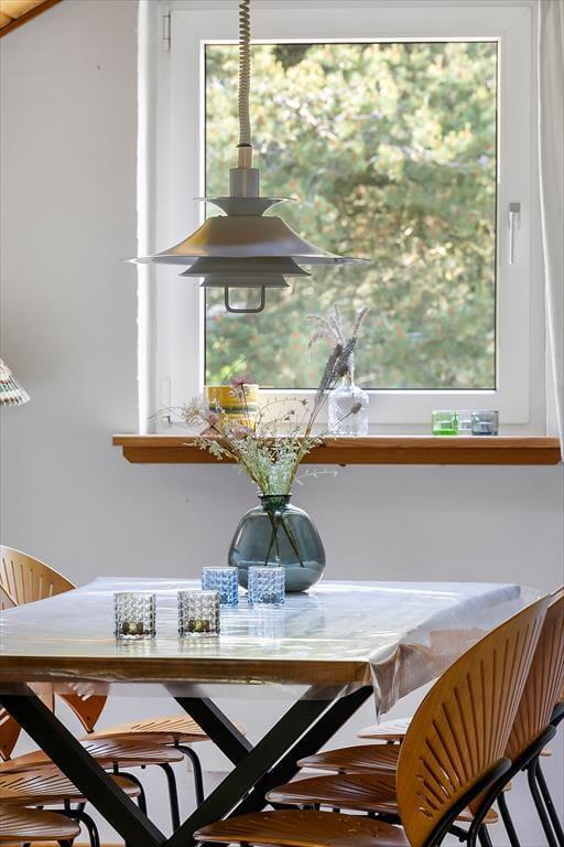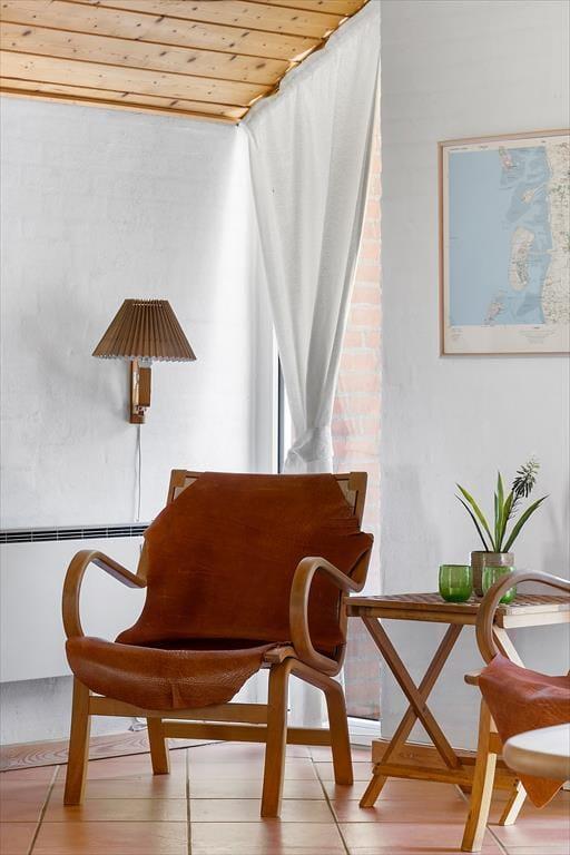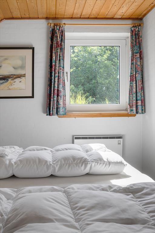 Es ist allerdings nicht nur die Umgebung, die Sie beeindrucken wird. Auch das Steinhaus selber wird Sie mit seinem ausgesprochen reizenden Erscheinungsbild und Einrichtungsstil schnell in den Bann ziehen. Freuen Sie sich im Wohnraum beispielsweise auf hohe Decken, eine ansprechende offene Balkenkonstruktion, schöne Fliesenböden und einen mittig platzierten Kaminofen, der an kühlen Abenden für behagliche Wärme und ein Maximum an echter dänischer Ferienhausgemütlichkeit sorgt. Die Möblierung fügt sich harmonisch in den Aufenthaltsbereich ein, der neben dem Wohnraum auch die offen integrierte und gut ausgestattete Küche beinhaltet, in der das Zubereiten der Mahlzeiten zum Vergnügen wird. Pure Erholung und Entspannung verspricht die vom Badezimmer aus zugängliche Sauna. Nach Ihrem Saunagang bieten sich die drei vorhandenen Schlafräume wunderbar für ein erholsames Nickerchen an.