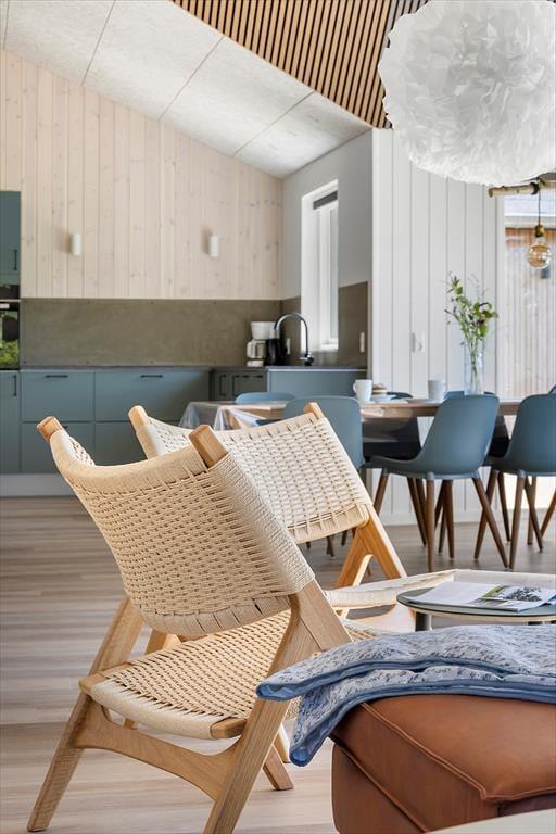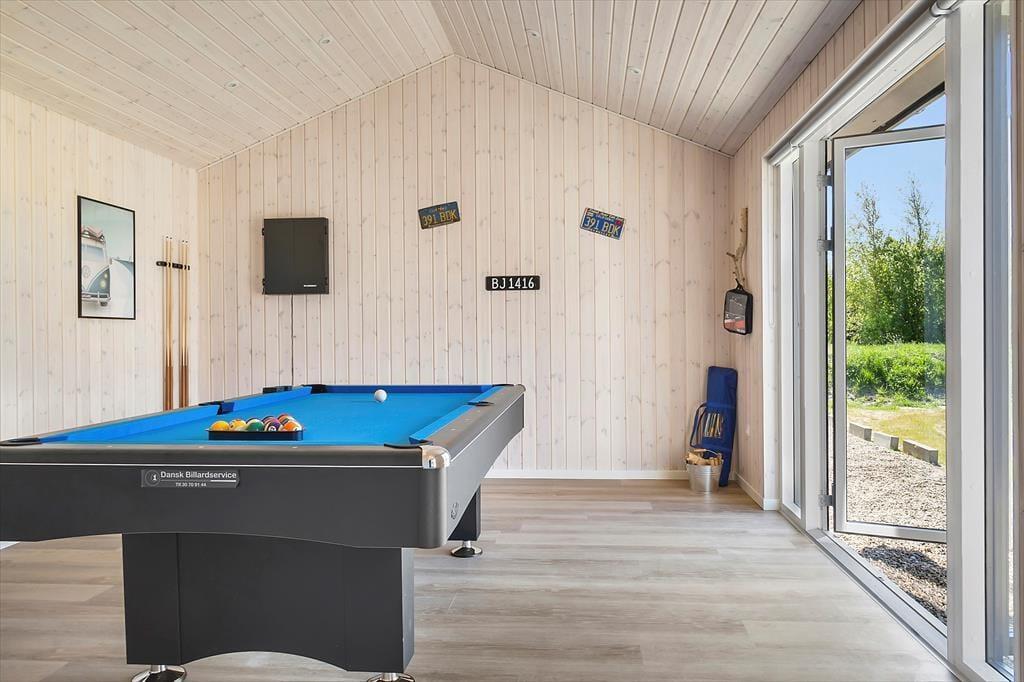 Beim Betreten dieses wunderschönen Ferienhauses wirst du sofort von einer hellen und luftigen Atmosphäre empfangen. Die hohen Decken und großen Fensterfronten lassen das Tageslicht großzügig herein und holen die umliegende Natur direkt ins Wohnzimmer. Die offene, stilvolle Küche ist durchdacht gestaltet – funktional und ästhetisch zugleich – und bietet reichlich Platz, damit alle gemeinsam kochen und essen können. Während das Essen langsam gart, kannst du dem Gespräch am Esstisch folgen oder dich mit einem Glas Wein auf das Sofa zurückziehen und den Blick in den Garten genießen. An kühleren Tagen sorgt der Brennofen für eine angenehme Wärme, und wenn der Spieltrieb erwacht, lädt der Aktivitätsraum mit Billardtisch zu vergnüglichen Abenden voller Spaß und Lachen ein.