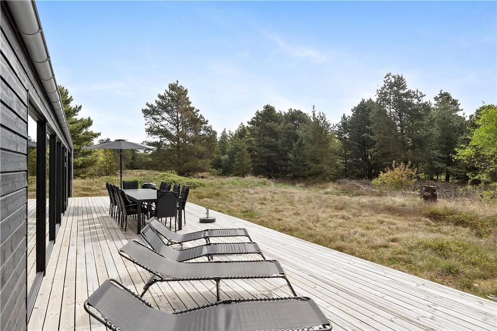 Traumhafte Urlaubsstunden wirst du auch unter freiem Himmel auf der großen und teilweise überdachten Holzterrasse an der Südseite des Hauses verbringen. Dies ist ein herrlicher Platz, um die Sommersonne und das beschauliche Urlaubstempo zu erleben. Lehne dich entspannt in deinen Liegestuhl zurück oder genieße gemütliche Grillabende im Kreise deiner Lieben.