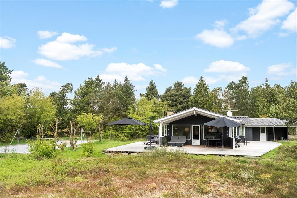 Das 3.070 m² große Naturgrundstück ist eine wunderbare Oase für die ganze Familie – auch für die Vierbeiner. Wunderschöne Bäume rahmen die Außenbereiche ein, für die Kinder gibt es eine Schaukel und für alle ballbegeisterten Gäste ist der Volleyballplatz ein Hit. Wenn du lieber in einem bequemen Gartenstuhl entspannen möchtest, kannst du auf der großen Holzterrasse sitzen, die sich rund um das Haus in alle Himmelsrichtungen erstreckt. Nach Süden hin verfügt die Terrasse über einen überdachten und teilweise abgeschirmten Bereich, der schnell zu deinem Lieblingssitzplatz werden kann, wenn du abends draußen sitzt, grillst und die ungestörte Natur genießt.