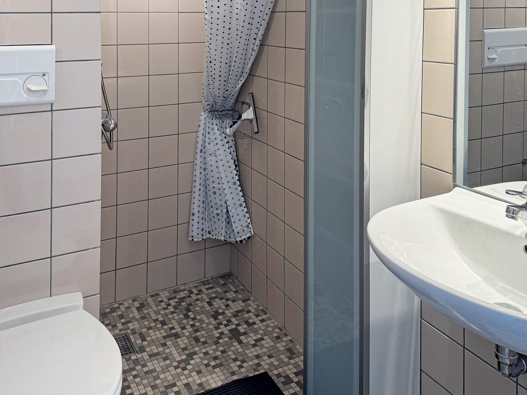 Die Wohnung verfügt über zwei geräumige Schlafzimmer: eines mit einem Doppelbett und das andere mit zwei Einzelbetten. Zusätzlich gibt es einen gemütlichen Dachboden (Hems) mit zwei zusätzlichen Schlafplätzen, sodass die Wohnung Platz für bis zu sechs Gäste bietet. Der offene Wohn- und Essbereich schafft eine entspannte Atmosphäre, in der Sie Mahlzeiten zubereiten, gemeinsam essen oder nach einem erlebnisreichen Tag gemeinsam entspannen können.