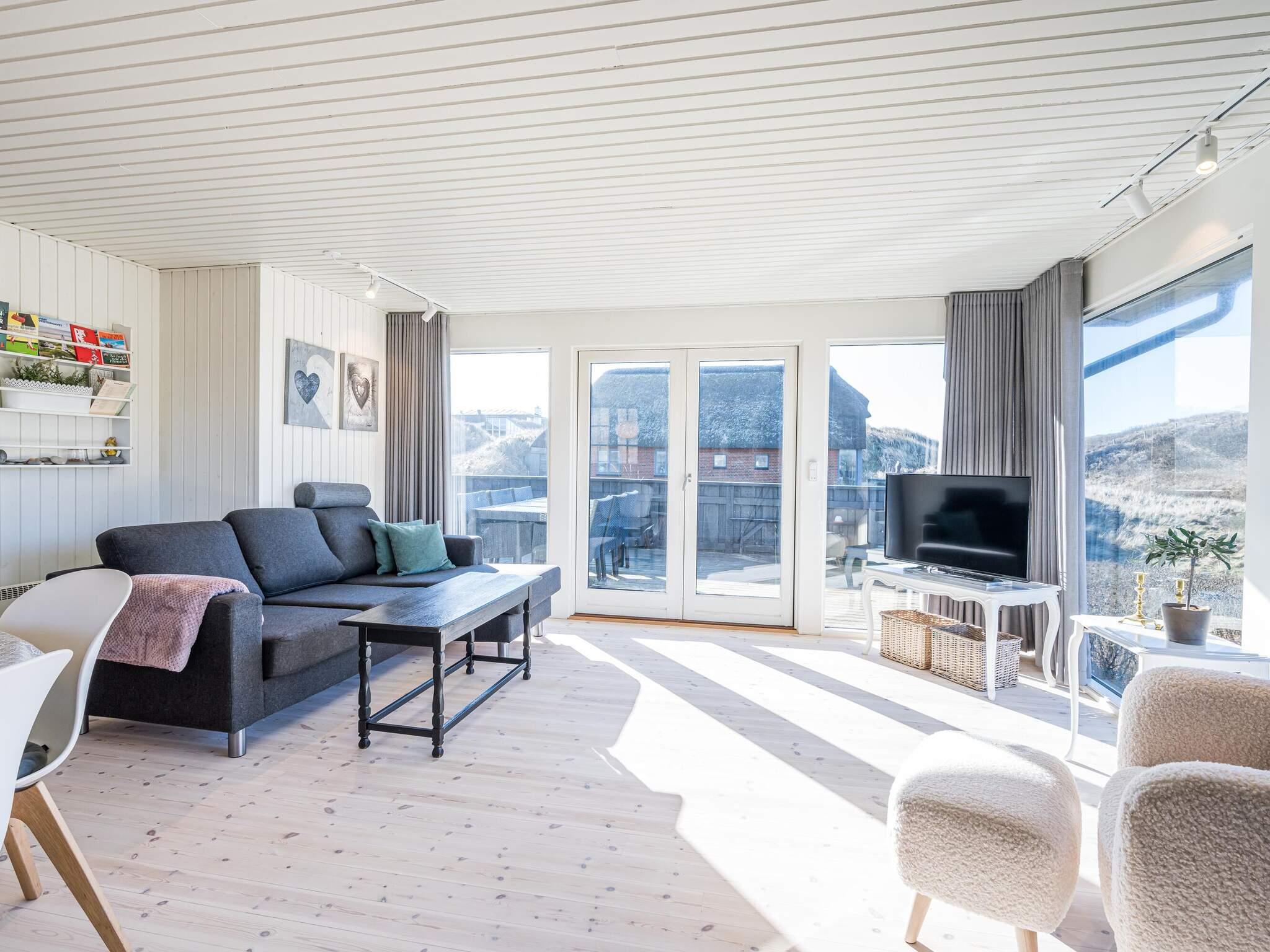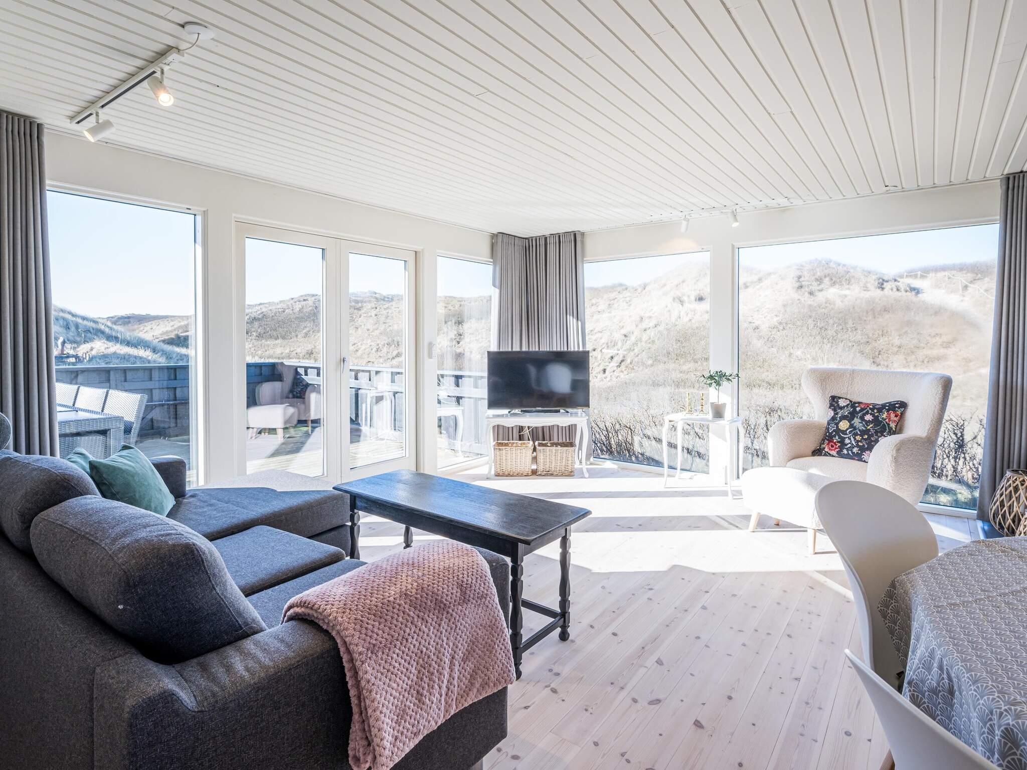 Vom Wohnzimmer aus haben Sie direkten Ausblick und Zugang zur Dünenlandschaft – hier spüren Sie die Nähe zur Natur, egal zu welcher Jahreszeit. Draußen erwartet Sie eine windgeschützte Holzterrasse, auf der Sie die Sonne, die Ruhe und vor allem das Meerrauschen genießen können. Die Terrasse lädt zu Entspannung, Grillabenden und langen Sommernächten unter freiem Himmel ein.