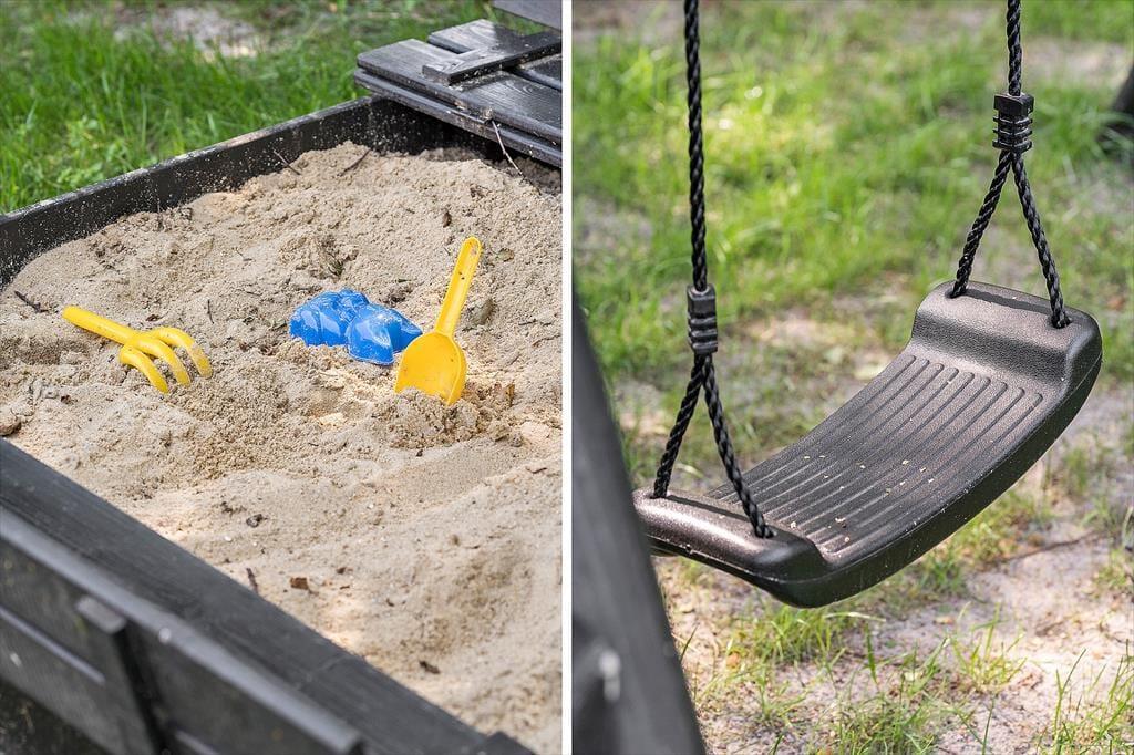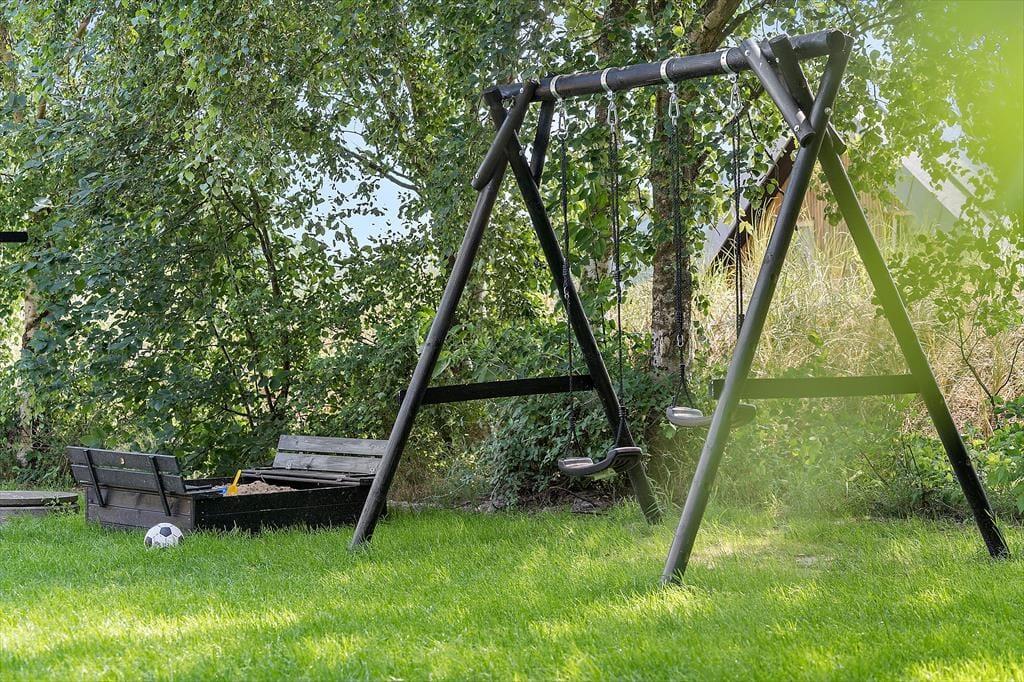Das 1280 m2 große Grundstück liegt gut und ungestört an einer kleinen, abgesperrten Straße. Es ist deshalb ein wunderbarer Ort zum Spielen, Grillen und Entspannen. Draußen gibt es auf der Wiese Platz zum Ballspielen. Für die Kleinsten gibt es auch eine Schaukel und einen Sandkasten. Es gibt Terrassen, die sowohl nach Osten als auch nach Westen ausgerichtet sind, damit Sie sowohl morgens als auch abends die Sonne genießen können. Auf der westlichen Terrasse gibt es auch einen kleineren, überdachten Bereich, wenn Sie Schatten bevorzugen. Darüber hinaus können Sie auf der Terrasse des Hauses einen ruhigen Moment im Wildnisbad genießen.