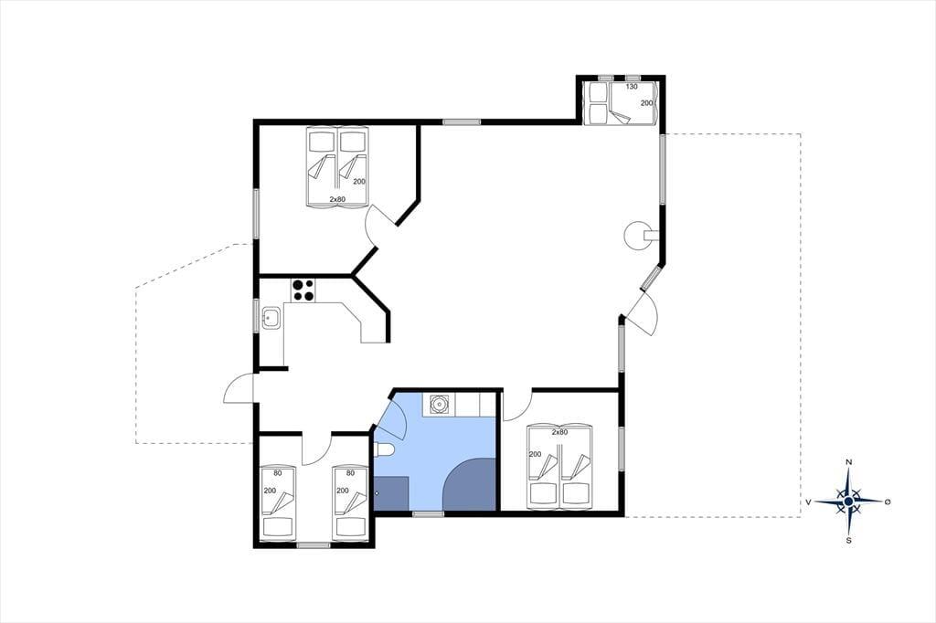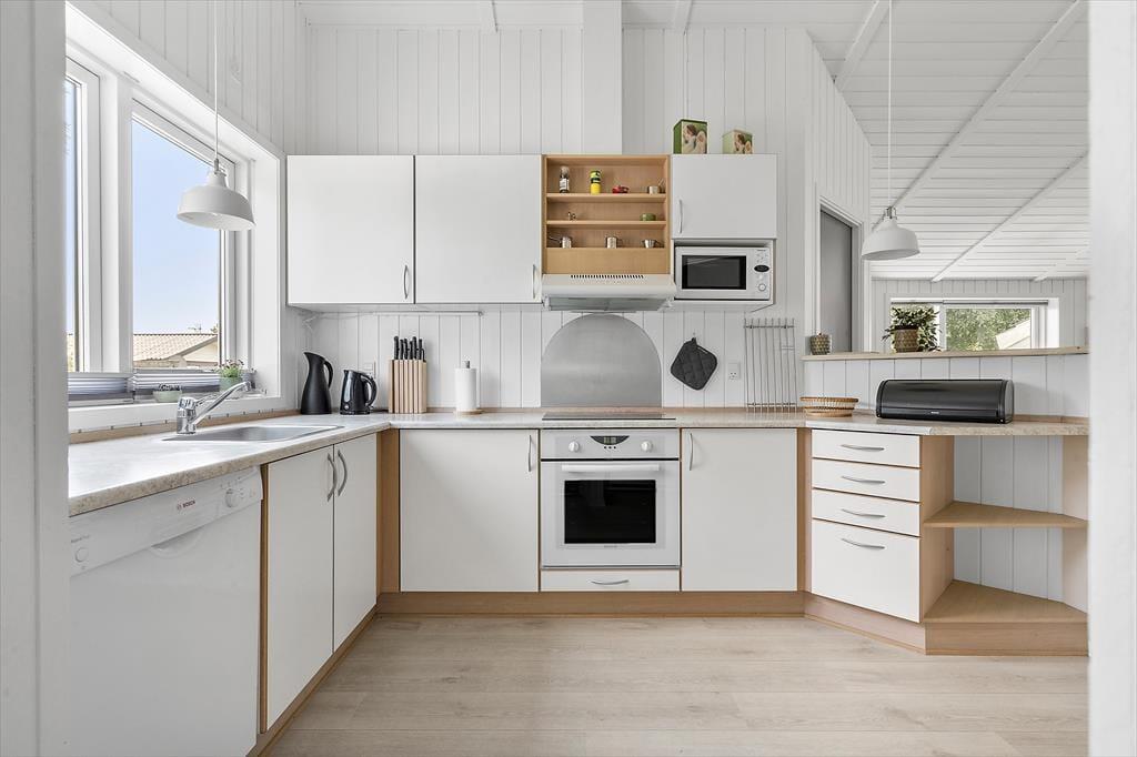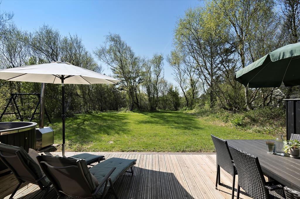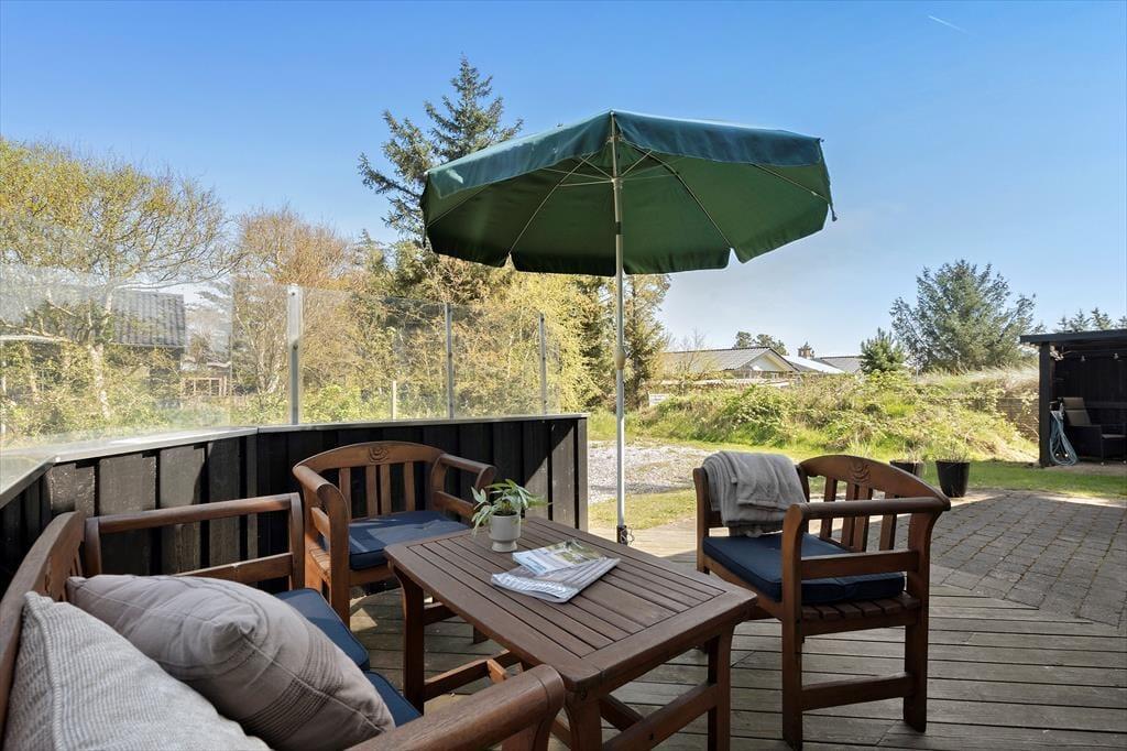 Von der kleinen, gesperrten Straße aus ist es einfach, sich in Søndervig und Umgebung fortzubewegen. Wenn Sie an den Strand wollen, müssen Sie etwa einen Kilometer durch das malerische Sommerhausgebiet laufen, und zuletzt müssen Sie die äußerste Dünenreihe passieren, bevor Sie die Nordsee vor sich haben. Östlich von Holmsland Klit verbreitet sich der Ringkøbing Fjord, und Sie sind auch nicht weit vom nächsten Put-and-Take-See entfernt, wenn Sie angeln möchten. Die Tage können Sie auch beim Surfen, Radfahren, Vogelbeobachten und vielem mehr in der Natur verbringen. Im Stadtzentrum von Søndervig haben Sie auch eine gute Auswahl an Geschäften, Restaurants und Urlaubsaktivitäten.