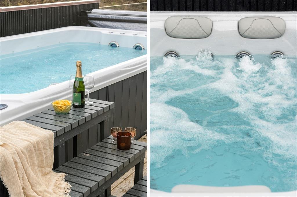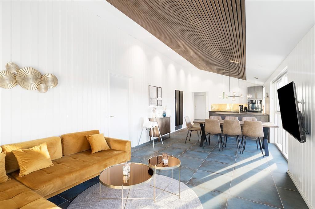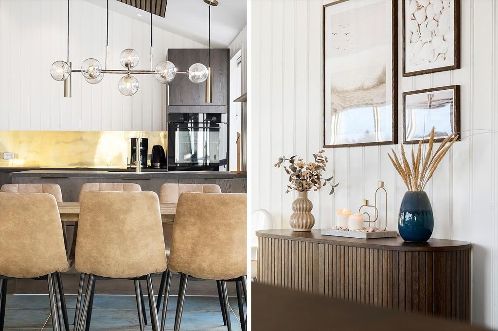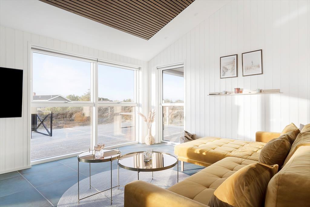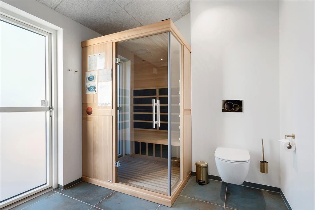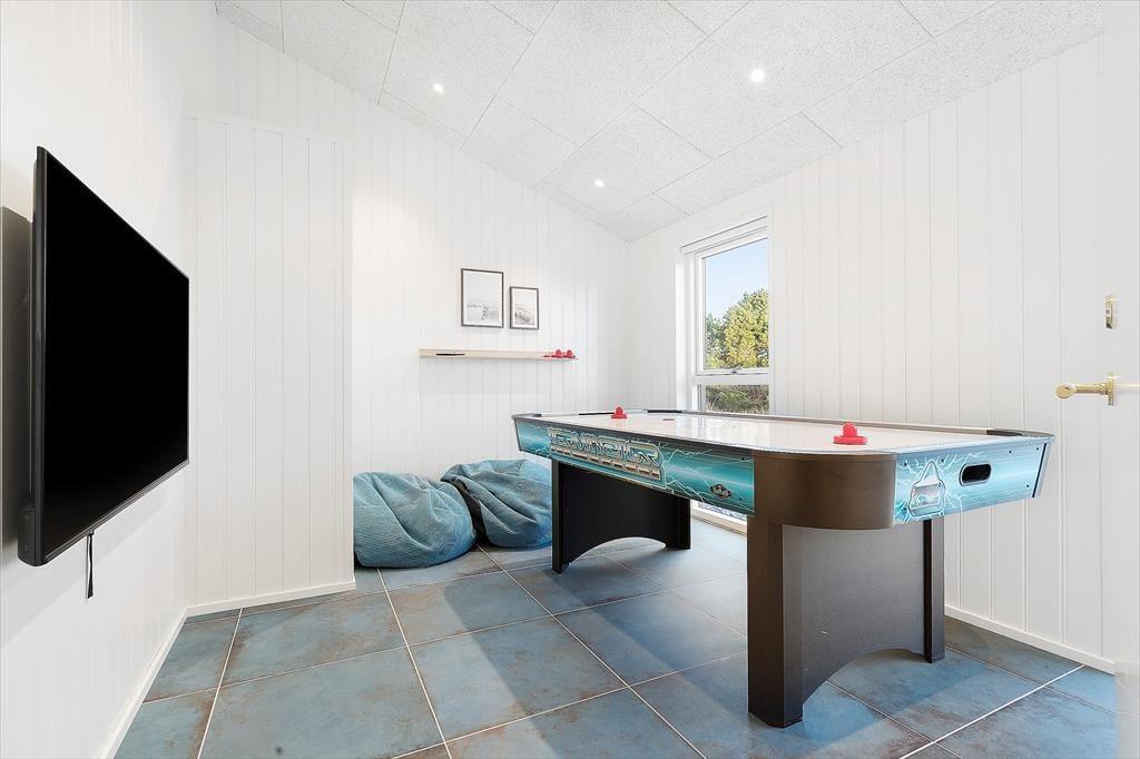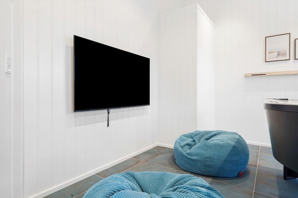 Als das 120 m2 große Ferienhaus im Jahre 2023 gebaut und eingerichtet wurde, wurden die besten Materialien und die schönste Innenausstattung verwendet. Sowohl von innen als auch von außen wirkt das Ferienhaus daher unglaublich stilvoll und es gibt viele schöne Details – schauen Sie sich nur die schönen, großen Bodenfliesen mit integrierter Heizung und die eleganten Schranklösungen an, die sich in der Küche wiederholen. in den beiden Badezimmern und in den Schlafzimmern. Es gibt drei Schlafzimmer, die zusammen Platz für acht Personen bieten, sodass Sie die Möglichkeit haben, Freunde oder Familie in den Urlaub einzuladen. Sowohl Kinder als auch kindliche Seelen können sich über einen Aktivitätsraum mit Airhockey freuen, und die Sauna wird sicher auch ein Hit sein. Auch das Wohnzimmer, in dem Wohnzimmer und Küche untergebracht sind, lädt zum Verweilen ein, nicht zuletzt wegen des schönen Lichts und der schönen Aussicht, die die Fenster freigeben.