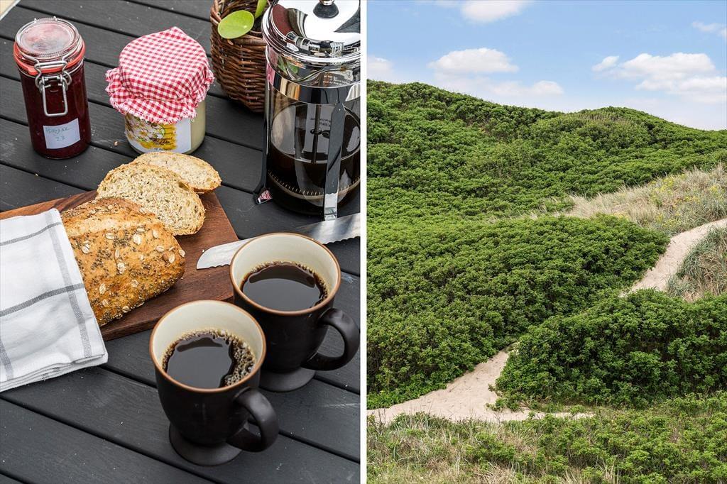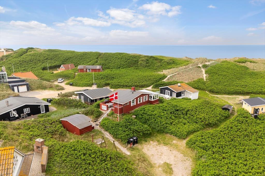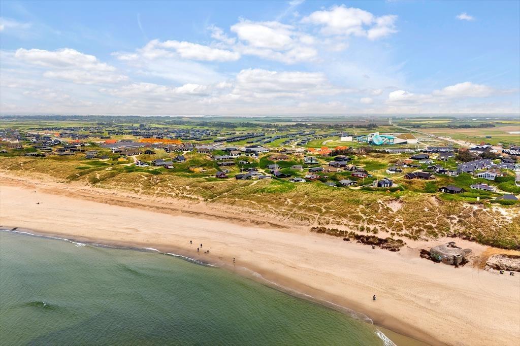 Der Lodbergsvej endet blind direkt am Sommerhaus und von dieser ruhigen Adresse gehen die Wege in der Dünenlandschaft auch hinunter zum Strand. Hier versteht man Søndervigs lange Geschichte als Ferienort, denn es ist etwas ganz Besonderes, in der Nähe eines breiten Sandstrandes zu wohnen und freien Zugang zu den tosenden Wellen der Nordsee zu haben – ob zum Schwimmen oder einfach nur um vom Land aus die Aussicht zu genießen. Heutzutage kann Søndervig alle moderne Bedürfnisse erfüllen. Im Stadtzentrum ganz in der Nähe des Ferienhauses gibt es Geschäfte, Restaurants und Eiscafés, und mit Golfplatz, Badeland und Fahrradverleih gibt es viele Möglichkeiten für Abwechslung und vergnügliche Aktivitäten.