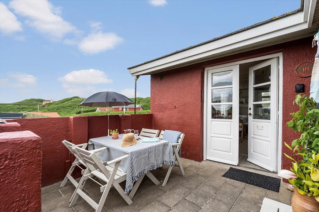 Am Lodbergsvej 119 verbringen Sie Ihren Urlaub in schönster Umgebung. Hinter den Türen dieses netten Sommerhauses herrscht eine gemütliche Atmosphäre und mit Wintergarten und mehreren Terrassen haben Sie reichlich Gelegenheit, sich in unmittelbarer Nähe zu entspannen. Erleben Sie Søndervigs Hagebuttenrosen und die mit Strandhafer bewachsenen Dünen – und wenn Sie von Ihren Badeausflügen im Meer heimkehren, stehen Ihnen sogar eine Außendusche zur Verfügung.