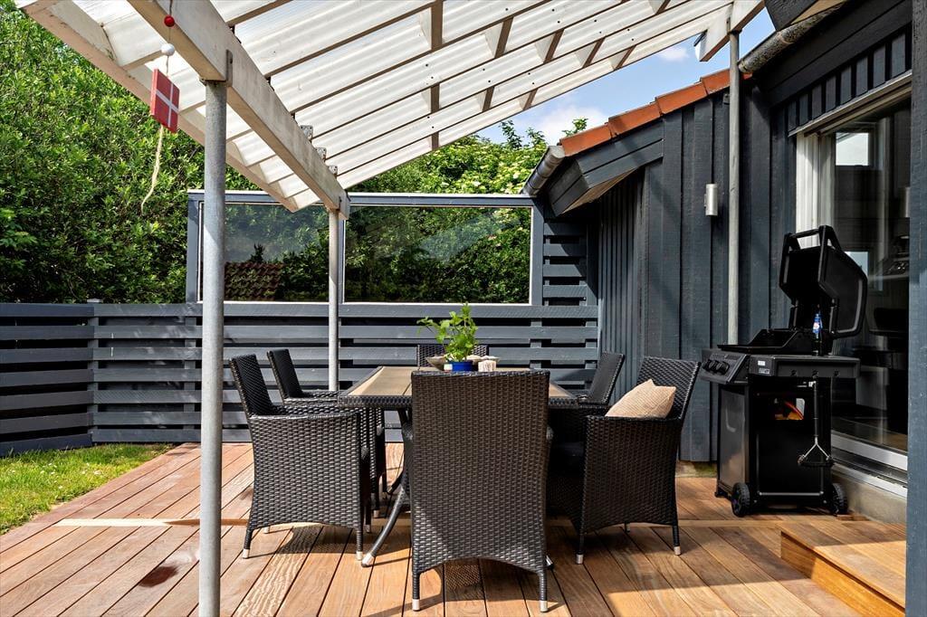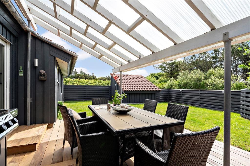 Das Ferienhaus am Hjelmevej 33 bietet sowohl eine überdachte als auch eine geschlossene Terrasse – die Großen können sich zu entspannen, während die Kinder sicher im Garten spielen. Schaukel und Sandkasten werden sicherlich ein Hit für die Jüngsten sein, die stundenlang spielen können. Gleichzeitig könnt ihr die frische Luft und die friedliche Ruhe genießen, die Søndervig auszeichnet. Egal bei welchem Wetter - die Terrasse kann das ganze Jahr über genutzt werden. Unter dem überdachten Teil könnt ihr nämlich geschützt im Trockenen verweilen - mit einem warmen Getränk oder einem guten Glas Wein – und die Kinder können spielen und spielen.