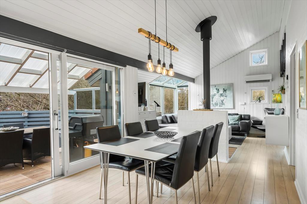 Sobald ihr das Ferienhaus betretet, werdet ihr von einer hellen und einladenden Atmosphäre begrüßt. Der offene Küchenbereich ist der Mittelpunkt des Hauses und hier könnt ihr jede Menge gemütliche Stunden zusammen verbringen. Ihr könnt euch leckere Ferienmahlzeiten bereiten und dabei die spielenden Kinder im Auge behaltet, die vielleicht schon den Weg zur geschlossenen Terrasse heraus sind. In den kühleren Monaten ist es eine Freude, sich ins Wohnzimmer zurückzuziehen zu können und die Wärme des Kaminofens zu genießen. Außerdem gibt es auch eine Sauna, in der ihr euch entspannen und den Alltagsstress vergessen könnt, doch auch perfekt für entspannte Abende nach einem aktiven Tag an der frischen Luft. Nach einem Tag voller Aktivitäten im Freien können Sie sich in der Sauna entspannen oder es sich vor dem Holzofen gemütlich machen.