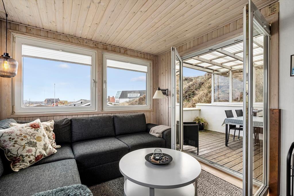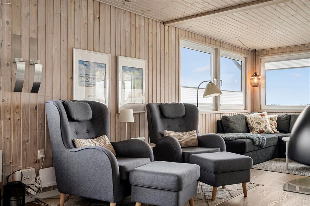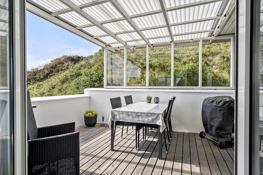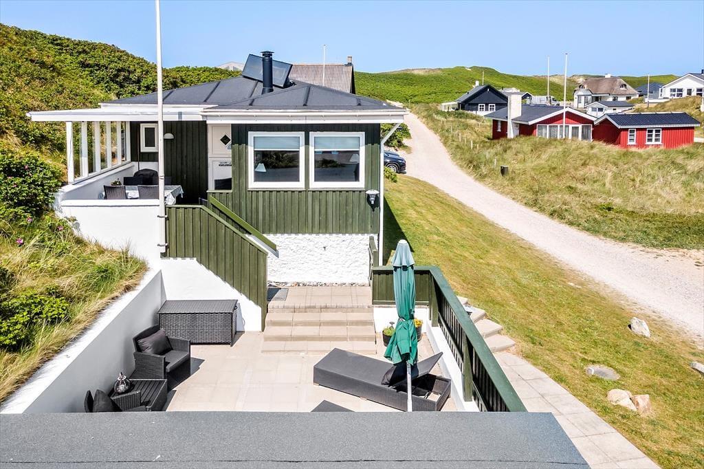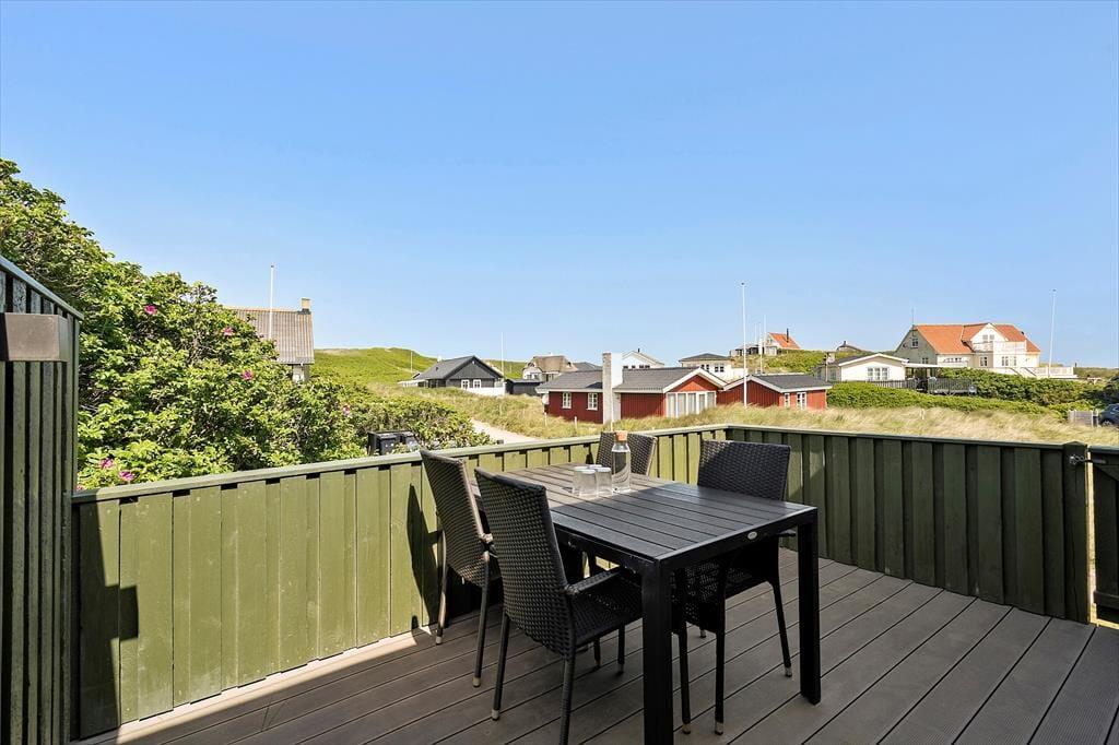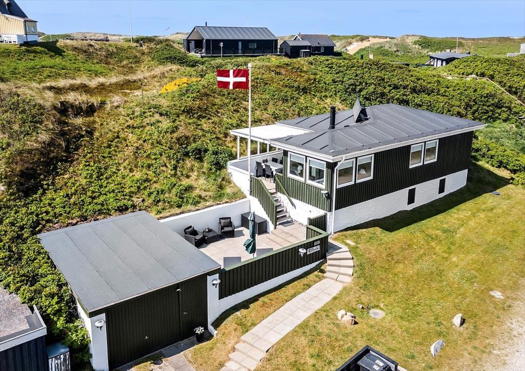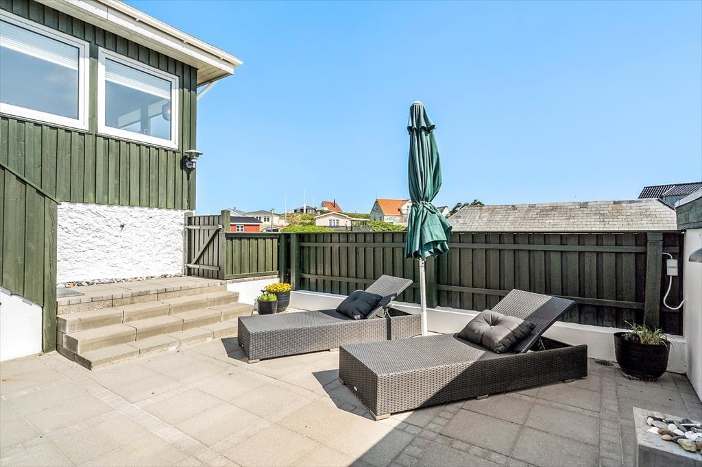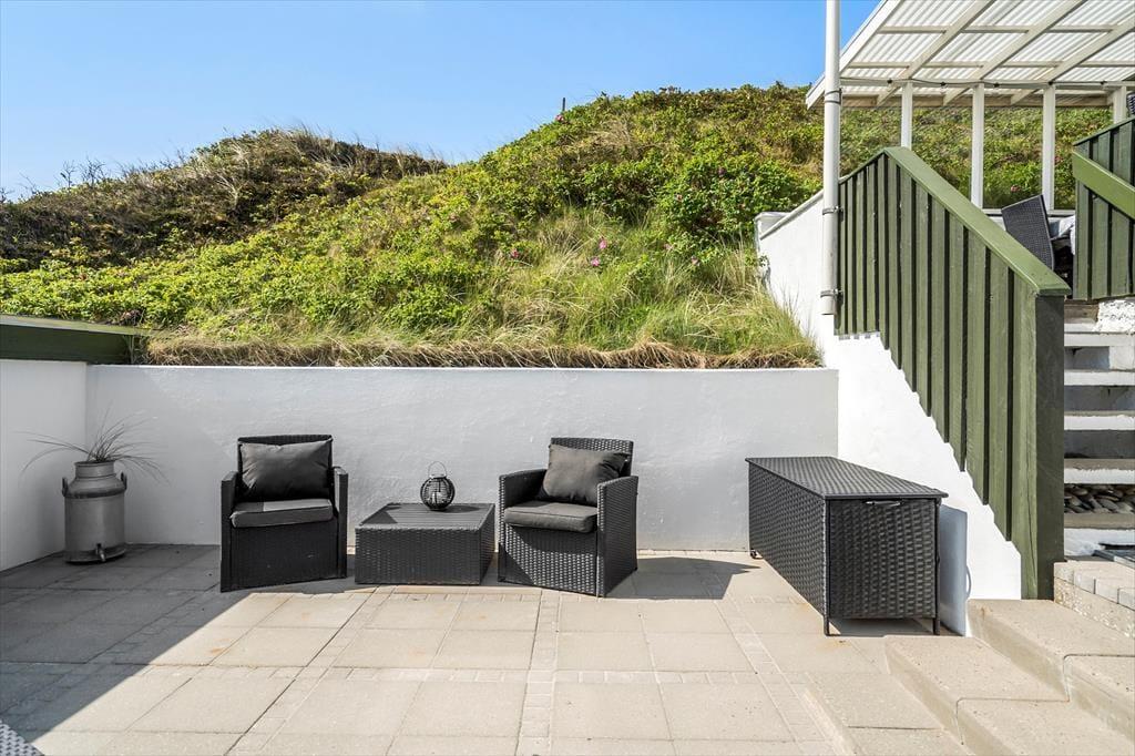 Der Außenbereich ist mindestens genauso ansprechend wie das Ferienhaus selbst, denn hier haben Sie die Wahl, ob Sie bei einem Kaffee oder bei einem guten Buch den Blick über die Dünen an der Westküste oder bis zum Ringkøbing Fjord schweifen lassen. Eine teilweise überdachte Terrasse befindet sich im Osten, eine weitere, offene Terrasse im Westen des Hauses. Des Weiteren bietet das Haus einen großen Garten, der durch Zäune abgeschirmt wird. Neben Loungemöbeln, Sonnenschirm und Grill stehen Ihnen hochwertige Gartenmöbel zur Verfügung. Eine hohe Düne sorgt dafür, dass das Haus und der Außenbereich windgeschützt sind.