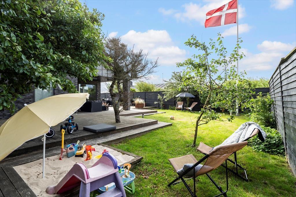 Das 2017 neu erbaute und durchweg aus qualitativ hochwertigen Materialien errichtete Ferienhaus besticht sowohl innen als auch außen durch seine geschmackvolle Gestaltung.Das Herzstück dieses prachtvollen Hauses bildet der offen miteinander kombinierte Wohn- und Küchenbereich. Die hellen Holzwände und die hohen und ebenfalls hellen Holzdecken, lassen den Wohnbereich wunderbar freundlich und luftig wirken. Die tolle, sehr gut ausgestattete Küche verfügt über sämtliche modernen Hilfsmittel wie beispielsweise einen Geschirrspüler und ist gut ausgestattet, so dass das Kochen einfach wird. Im Wohnzimmer können Sie es sich vor dem Holzofen gemütlich machen und das Flammenspiel hinter der Glasscheibe genießen. Ein großer Flachbildfernseher mit Satellitenschüssel sorgt für Unterhaltung und auch an einem windigen Tag ist ein gutes Buch in den bequemen Ledermöbeln schön. Hinzu gesellen sich der moderne Essplatz und ein kleiner Tresenbereich, der sich hervorragend für Arbeiten am Laptop oder dergleichen eignet. Die großen Fenster gewährleisten nicht nur einen wunderbaren Lichteinfall, sondern bieten Ihnen auch einen fantastischen Ausblick über die hügelige Umgebung und die Dünen. Ihnen stehen in diesem herrlichen Haus zwei komplette Bäder mit Dusche, WC und Fliesenboden mit Fußbodenheizung zur Verfügung. Eines der Bäder versprüht mit seinem Whirlpool und der Sauna einen Hauch von Luxus und verspricht entspannte Stunden nach einem langen Urlaubstag. Das 130 m2 große, stilvolle Backsteingebäude kann problemlos acht Erwachsene und zwei Kinder beherbergen, da es vier große Schlafzimmer und einen großen Schlafboden gibt. Neben dem Kamin sorgt auch eine energiesparende Wärmepumpe für ein behagliches Wohnklima. Im Hauswirtschaftsbereich steht Ihnen eine Waschmaschine zur Verfügung.Damit Sie auch im Urlaub auf dem Laufenden bleiben, erwartet Sie im Ferienhaus kostenloses WLAN.