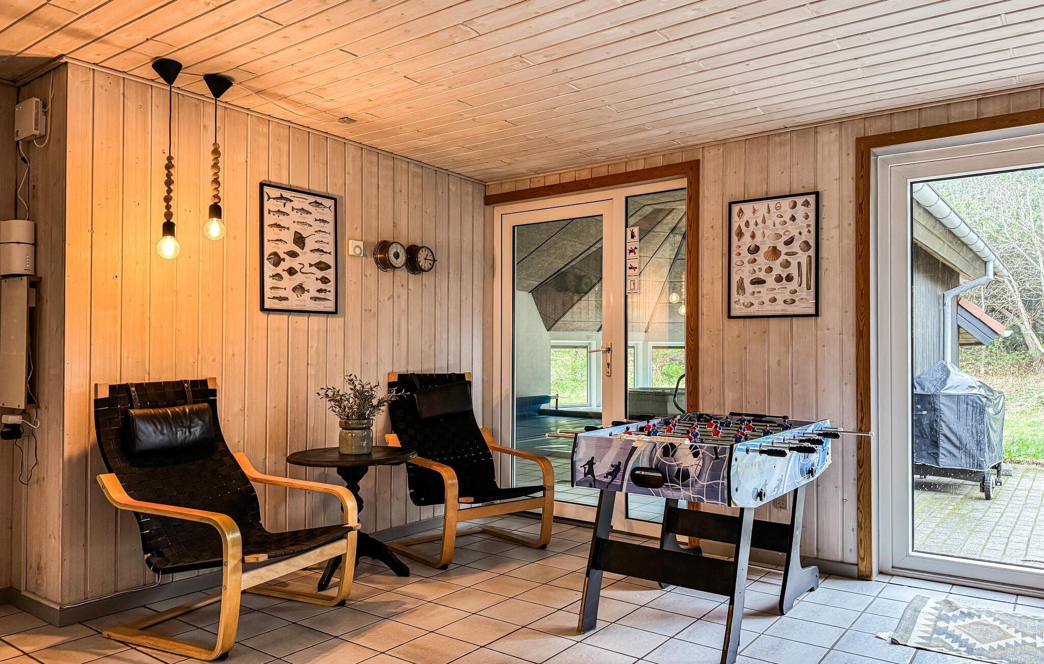 Im beliebten Ferienort Søndervig liegt dieses schöne Swimmingpoolhaus. Es eignet sich ideal für die große Familie oder zwei befreundete Familien, die gemeinsam in den Urlaub fahren, denn die fünf Schlafzimmer sind in zwei Einheiten auf jeweils einer Seite des Gemeinschaftsraums gelegen. Von hier aus haben Sie auch Zugang zur Terrasse und zum Poolbereich, wo Rutsche, Vier-Personen-Whirlpool und eine tolle Sauna Jedem erquickende Erlebnisse versprechen. Beide Wohneinheiten verfügen über ein eigenes Badezimmer und es gibt vier extra Schlafplätze. Im Sommer kann man das Finnische Holzbad benutzen.