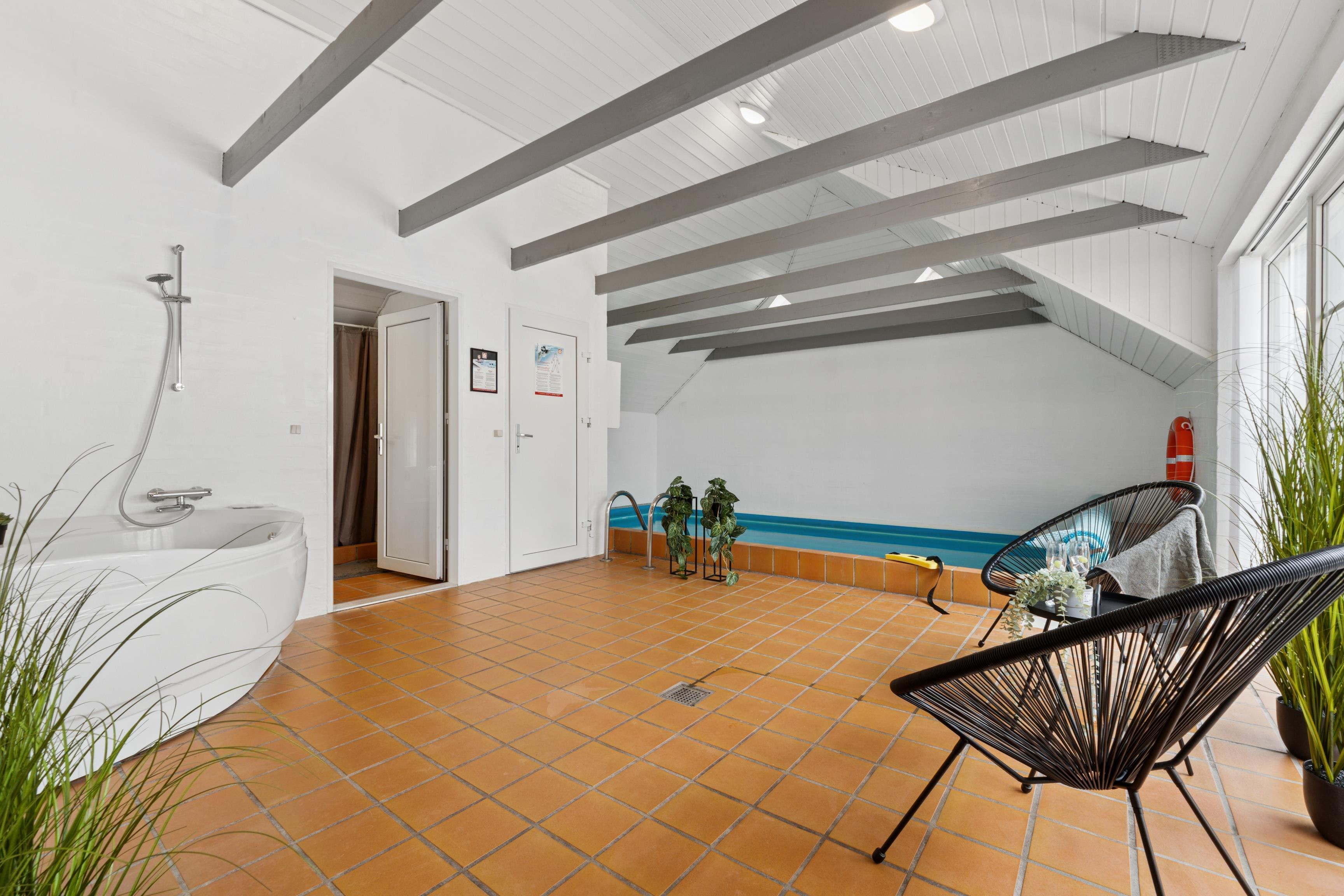 Träumen Sie von einem Urlaub, bei dem Wohlbefinden und Naturerlebnisse Hand in Hand gehen? Dieses wunderschöne Poolhaus in der Wolle Friks Vej 33 in Søndervig ist wie geschaffen für Sie – egal, ob Sie mit einer großen Familie oder mehreren befreundeten Paaren reisen. Hier genießen Sie eine einzigartige Kombination aus privatem Wellness und Komfort – gelegen auf einem abgeschiedenen Dünengrundstück, nur 750 Meter von einem der schönsten Sandstrände Dänemarks entfernt.