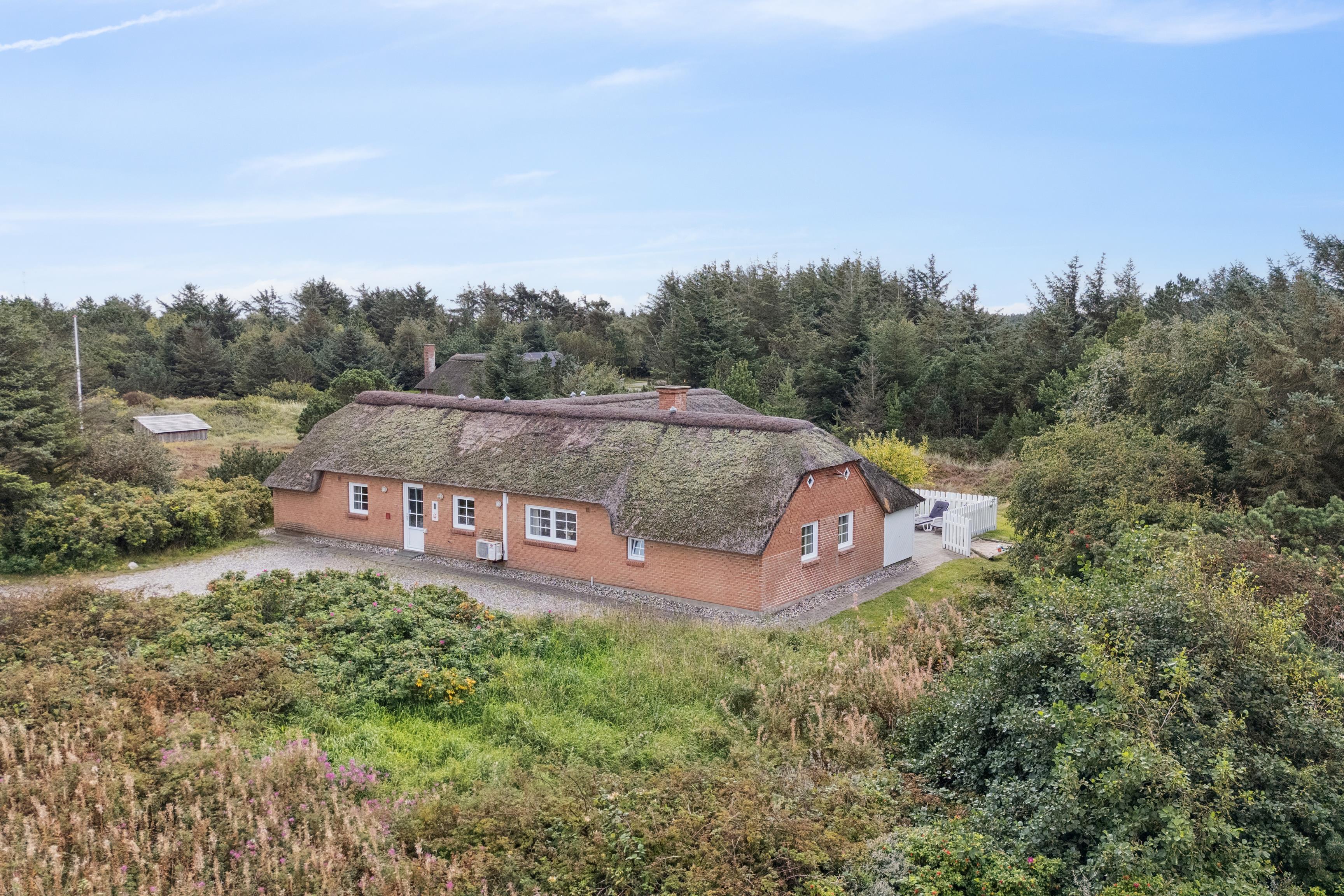 Das 2.250 m² große Grundstück ist von Heidekraut, Wildrosen und Kiefern umgeben und bietet Privatsphäre sowie eine herrliche Kulisse für Aktivitäten im Freien. Auf der Terrasse finden Sie Gartenmöbel, Liegestühle und einen Gasgrill, die zu gemütlichen Sommerabenden unter freiem Himmel einladen.