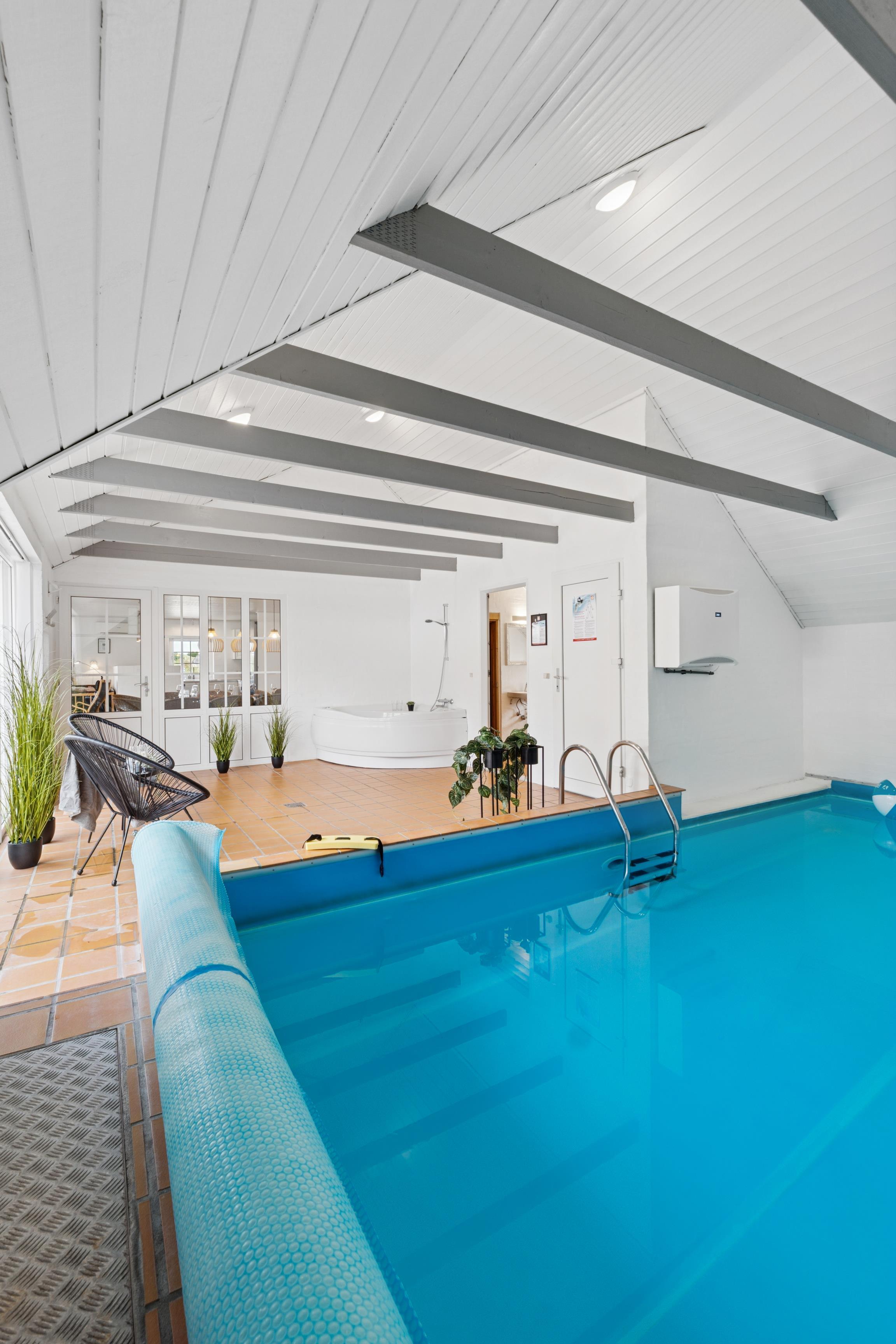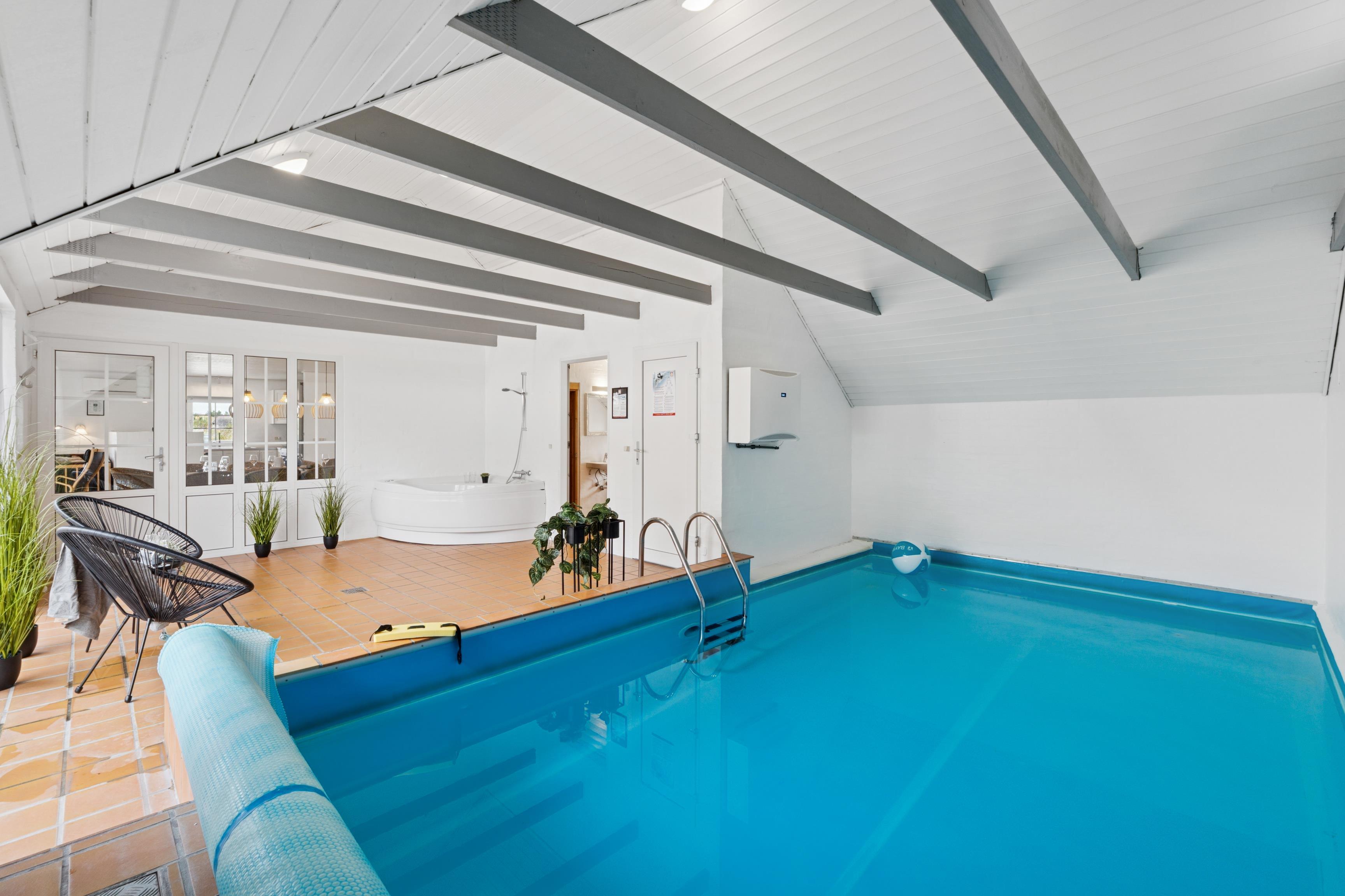 Modernes Ferienhaus mit Pool und Sauna, nur 750 m vom Strand in Søndervig entfernt, ideal für Familien und Freunde.
