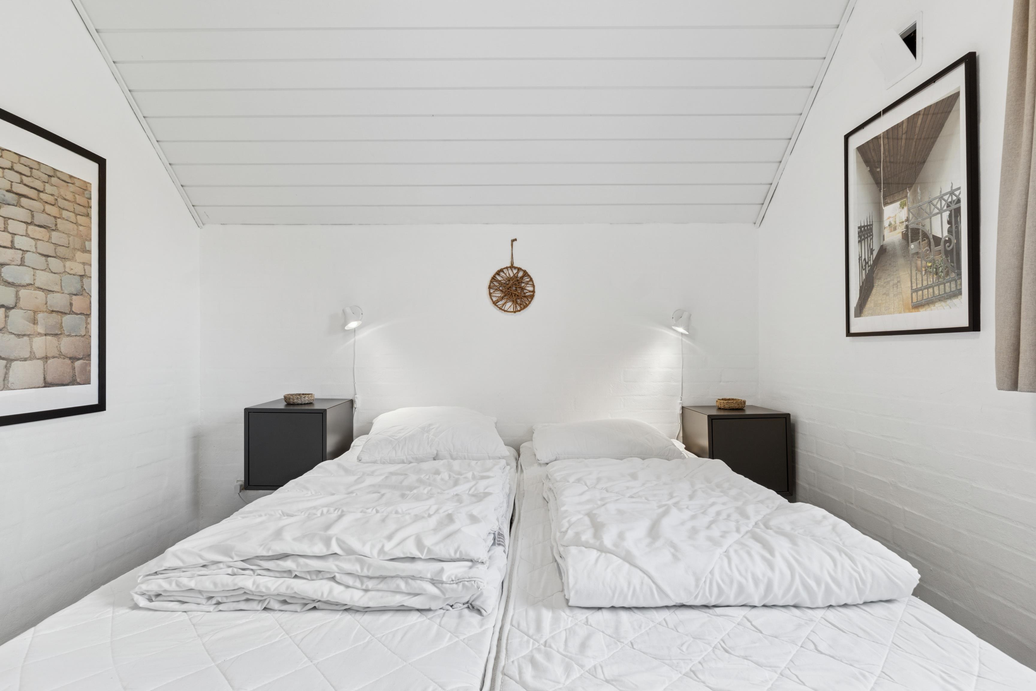 Das Haus verfügt über zwei separate Schlafbereiche, jeweils mit eigenem Badezimmer und Fußbodenheizung, was es besonders für mehrere Familien geeignet macht, die sowohl Privatsphäre als auch gemeinsames Beisammensein schätzen. Insgesamt gibt es sechs Schlafzimmer – vier mit Doppelbetten und zwei mit Einzelbetten – sodass ausreichend Platz für alle vorhanden ist.