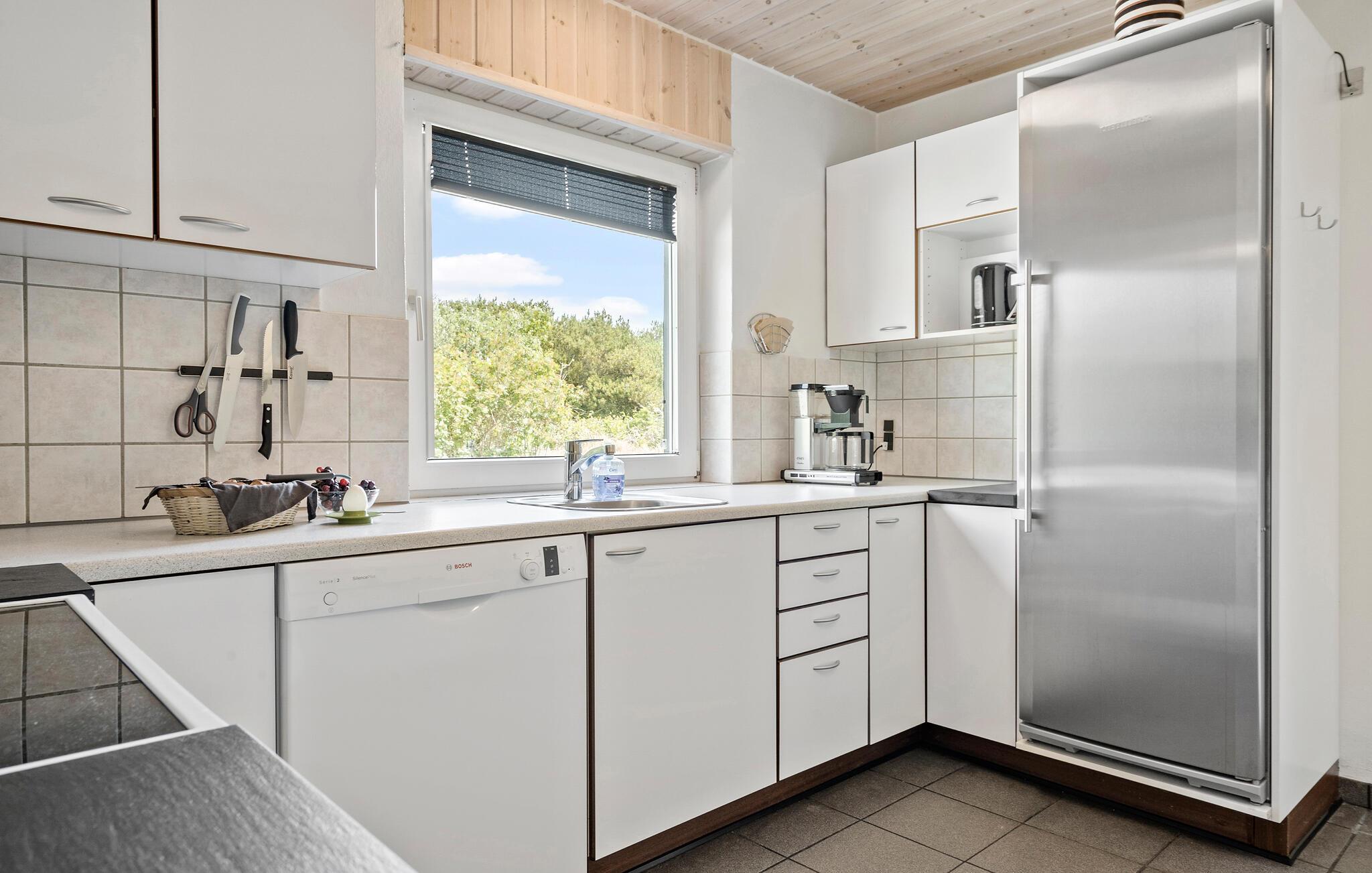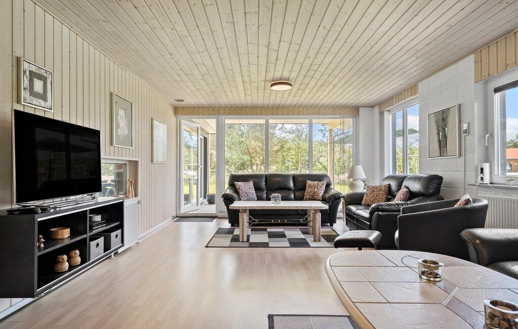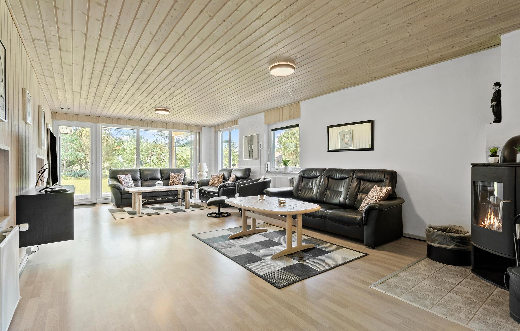 Freuen Sie sich auf Ihr Ferienhaus, das keine Wünsche offenlässt, sowohl was die Annehmlichkeiten im Haus als auch die Umgebung betrifft. Genießen Sie die Ruhe und den Komfort und lassen Sie sich von der Schönheit und Vielfalt der nahe gelegenen Westküste verzaubern. Der offene Wohnbereich ist mit einem Kaminofen und bequemen Sofas ausgestattet und bietet ideale Voraussetzungen für Entspannung und geselliges Beisammensein. Machen Sie es sich vor dem Kaminofen gemütlich und schauen Sie einen spannenden Film.