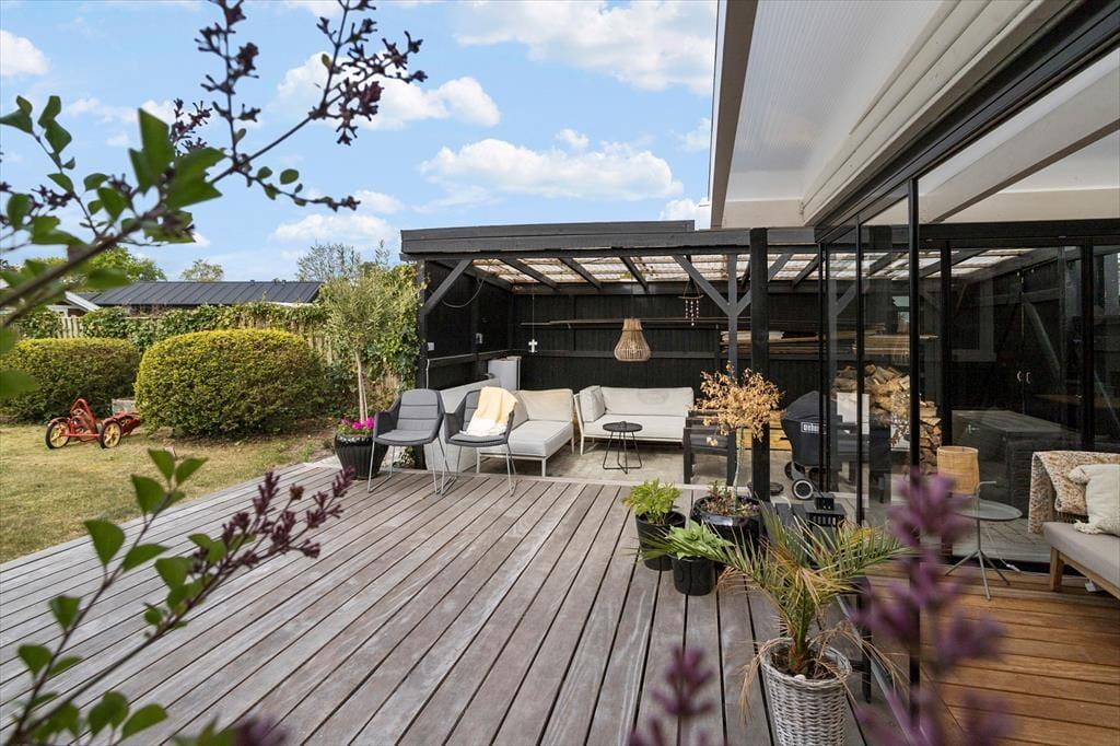 Neue Holzterrassen erstrecken sich an drei Seiten des Mietobjektes und bieten Ihnen daher sehr gute Möglichkeiten, das Leben unter freiem Himmel in vollen Zügen zu genießen. Gegen Süden und Westen lockt ein gänzlich ungestörter Gartenbereich. Freuen Sie sich hier auf eine, vor der Küche platzierte, überdachte Terrasse sowie auf ein ebenfalls überdachtes Areal mit Loungemöbeln. Der Garten ist gemütlich und verwöhnt Sie mit zahlreichen gut vor Wind geschützten Eckchen, sodass Sie hier stets einen schönen Aufenthaltsplatz finden werden.