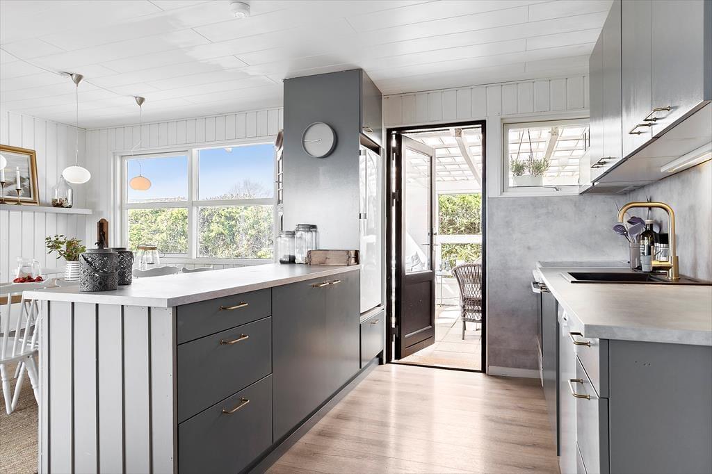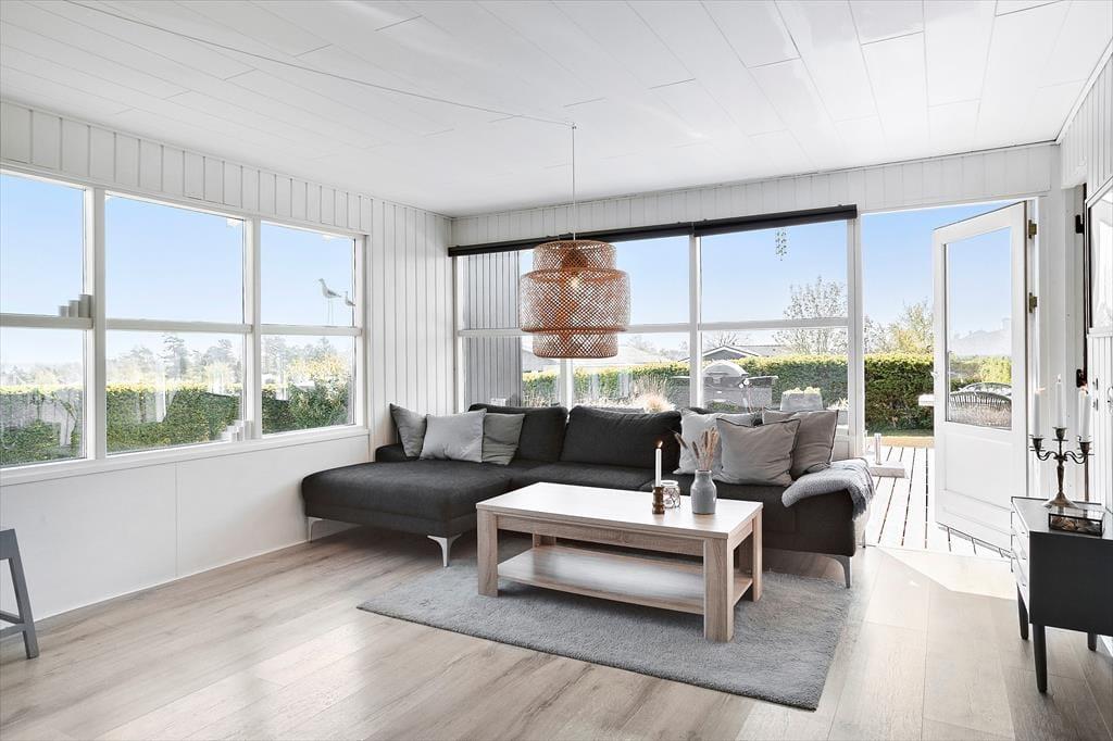 Wir freuen uns sehr, Ihnen dieses überaus gemütliche Ferienhaus in Saksild präsentieren zu dürfen. Das Haus beinhaltet drei Schlafräume, einen Küchen- und Essbereich, einen Wohnraum, ein Badezimmer und einen schönen Wintergarten mit einem Essplatz. Das Haus eignet sich sehr gut für Familien und für gute Freunde, die eine entspannte Auszeit vom Alltag in schöner Umgebung nah am Saksild Strand genießen möchten. Die Schlafplätze verteilen sich auf einen Schlafraum mit einem Doppelbett, einen Raum mit Einzelbetten und einen Raum mit einem Etagenbett. An die Küche schließt ein ansprechender Esstisch mit Platz für alle Mitreisenden. Die Küche ist offen mit dem Wohnraum kombiniert. Im Wohnraum werden Sie viele gemeinsame Stunden auf dem Sofa und mit vergnügten Spielrunden verbringen. Ein Fernseher mit einem TV-Paket, das dänische, deutsche, schwedische und norwegische Sender empfängt, sorgt für Unterhaltung und Abwechslung. Sie können zudem Ihre privat abonnierten Streamingdienste über Chromecast nutzen. Das Badezimmer beinhaltet eine Dusche und ein WC.