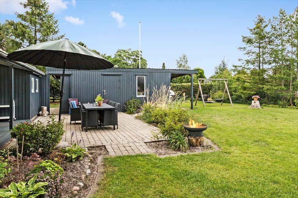 Sie wohnen auf einem großen Grundstück, das mit seiner Grasfläche zum Spielen und Umhertollen animiert. Eine offene und eine geschlossene Terrasse laden zu entspannten Stunden in der Sonne und mit gutem Windschutz ein. An der Feuerstelle können Sie allabendlich in gemütlicher Runde Stockbrote rösten. Da auch ein Holzkohlegrill zur Verfügung steht, werden Sie sicher gerne und oft das Abendessen unter freiem Himmel zubereiten und im Anschuss auf der Terrasse genießen. Freuen Sie sich auf diverse gemütliche Eckchen, Gartenmöbel und Liegestühle, die das Urlaubserlebnis im Freien wunderbar abrunden. Für die jüngsten Urlauber stehen im Garten eine Schaukel und eine Netzschaukel bereit.
