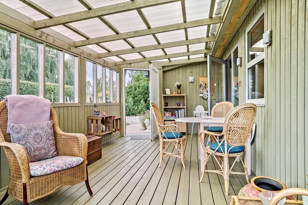 Es bietet ausreichend Platz für vier Urlauber, die sich auf zwei Schlafräume mit guten Betten verteilen. Der Wohnraum beinhaltet eine Sofagruppe, in der Sie viel wertvolle gemeinsame Zeit genießen werden. Die Küche ist offen mit dem guten Essplatz und dem Wohnraum verbunden. Hier gehen nette Gespräche, unterhaltsame Spiele am Esstisch und die Zubereitung der Mahlzeiten Hand in Hand. Das Haus verfügt über eine Wärmepumpe, die innerhalb kurzer Zeit für behagliche Temperaturen sorgt und gleichzeitig energiesparend ist. Das Badezimmer begrüßt Sie mit einer Dusche und einem WC. Der Wintergarten ist ansprechend möbliert und wird sicher schnell zu Ihrem Lieblingsplatz avancieren.