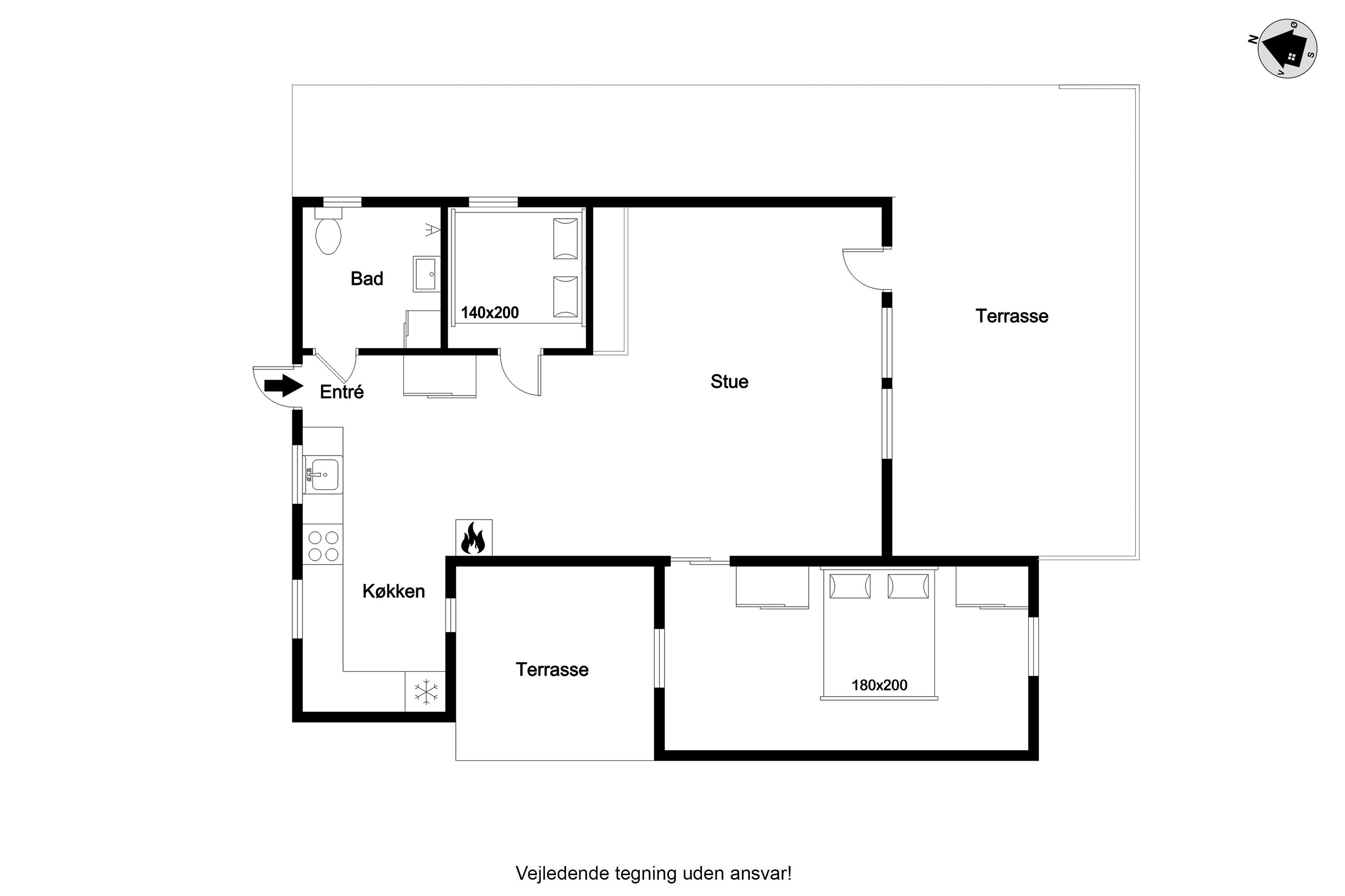 Innen erwartet Sie ein helles und einladendes Ambiente, ideal für Familien oder Gruppen. Das Haus verfügt über zwei gemütliche Schlafzimmer mit Doppelbetten für einen erholsamen Schlaf. Zusätzlich gibt es im Wohnzimmer ein Schlafsofa, auf dem zwei weitere Gäste Platz finden. Das moderne Badezimmer mit Dusche und WC sorgt für maximalen Komfort.