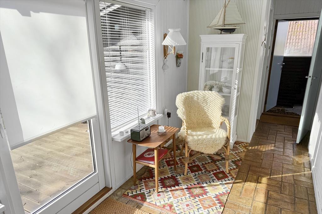 Genieße das Leben im Freien: Das Haus liegt auf einem ca. 800 m² großen Grundstück mit schöner Holzterrasse und einem gemütlichen Garten mit mehreren sonnigen Sitzbereichen. Vom Grundstück aus genießen Sie Meerblick. Zum Ferienhaus gehören Gartenmöbel, Liegestühle, Sonnenschirm, Grill und zwei Fahrräder.