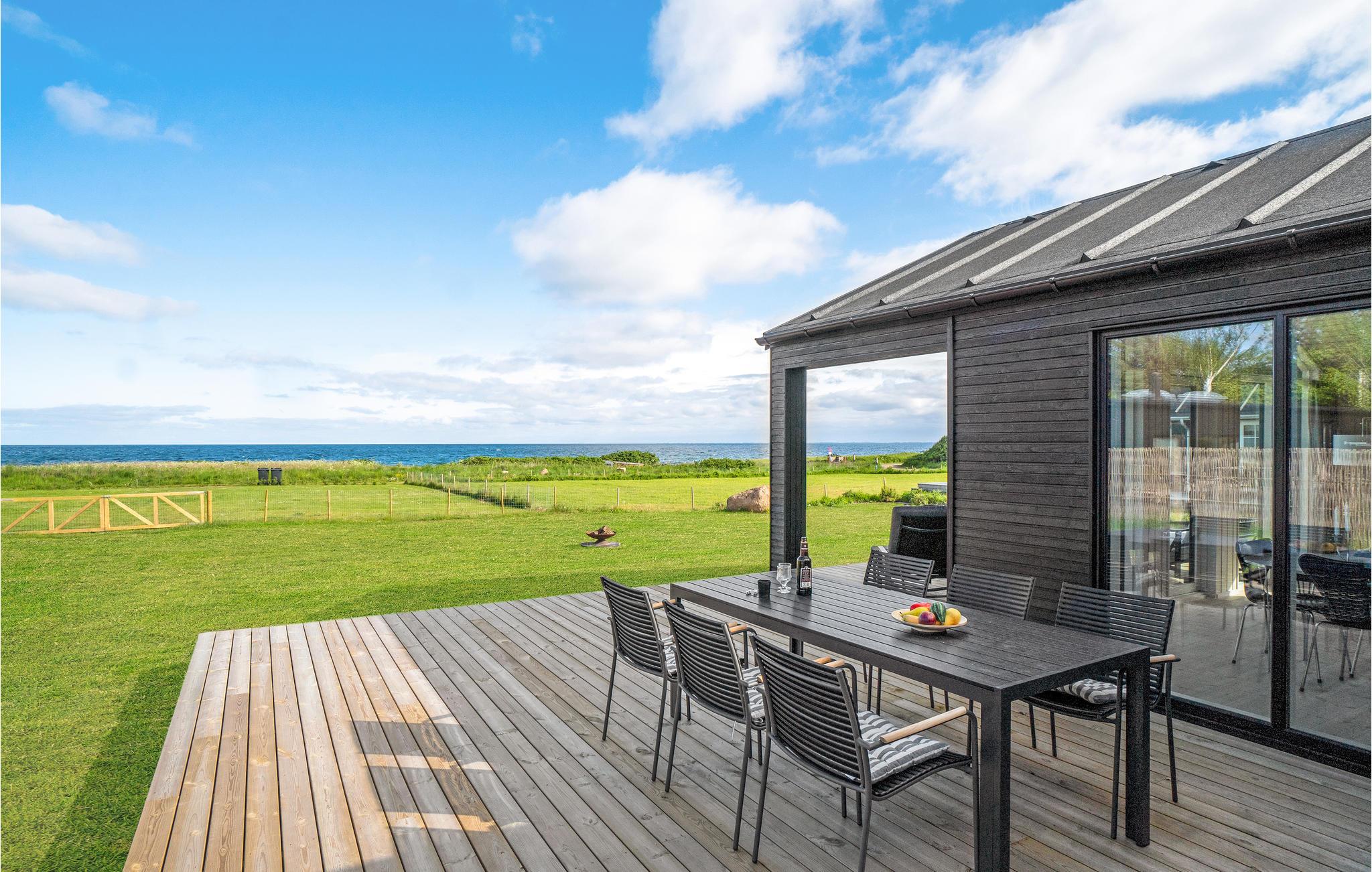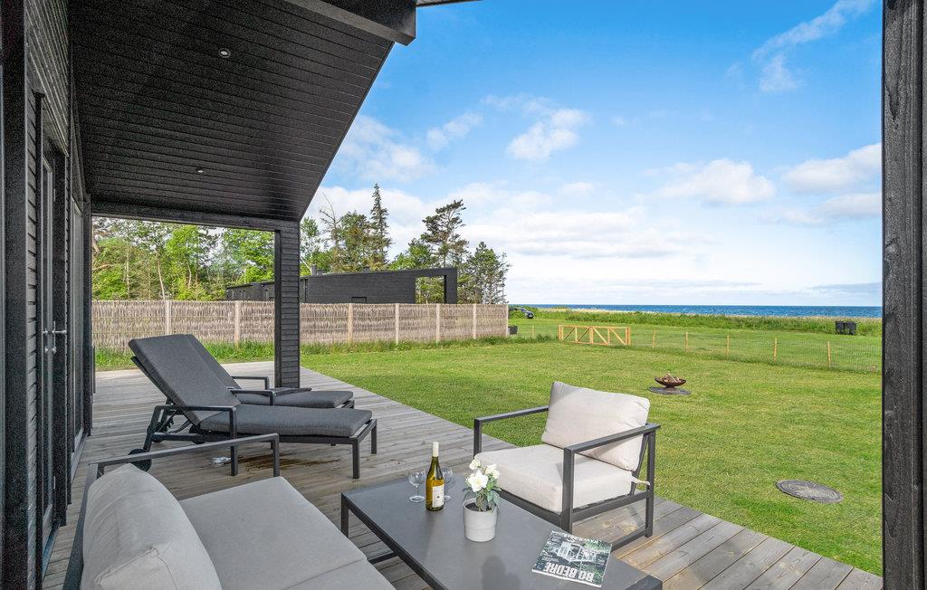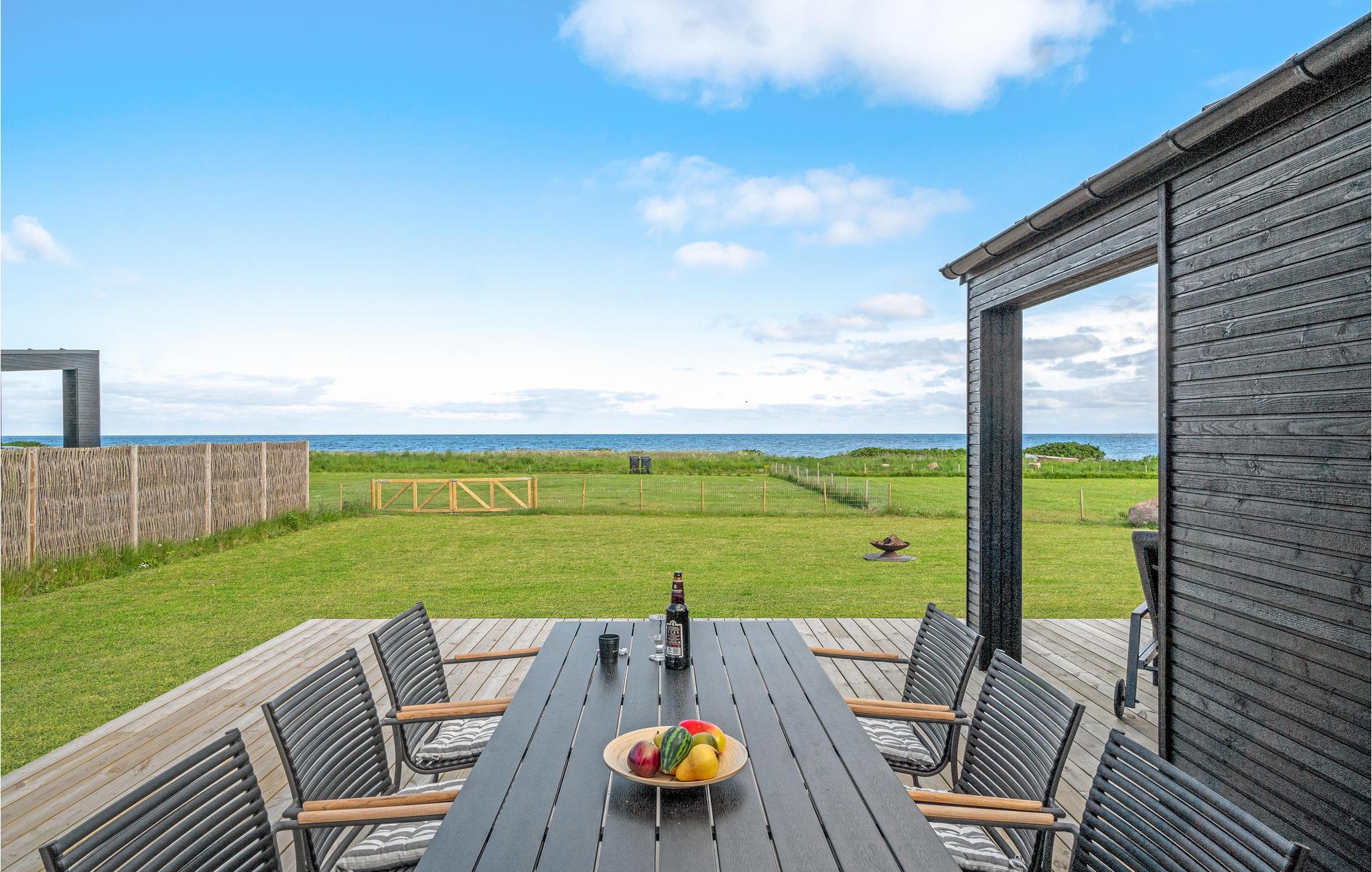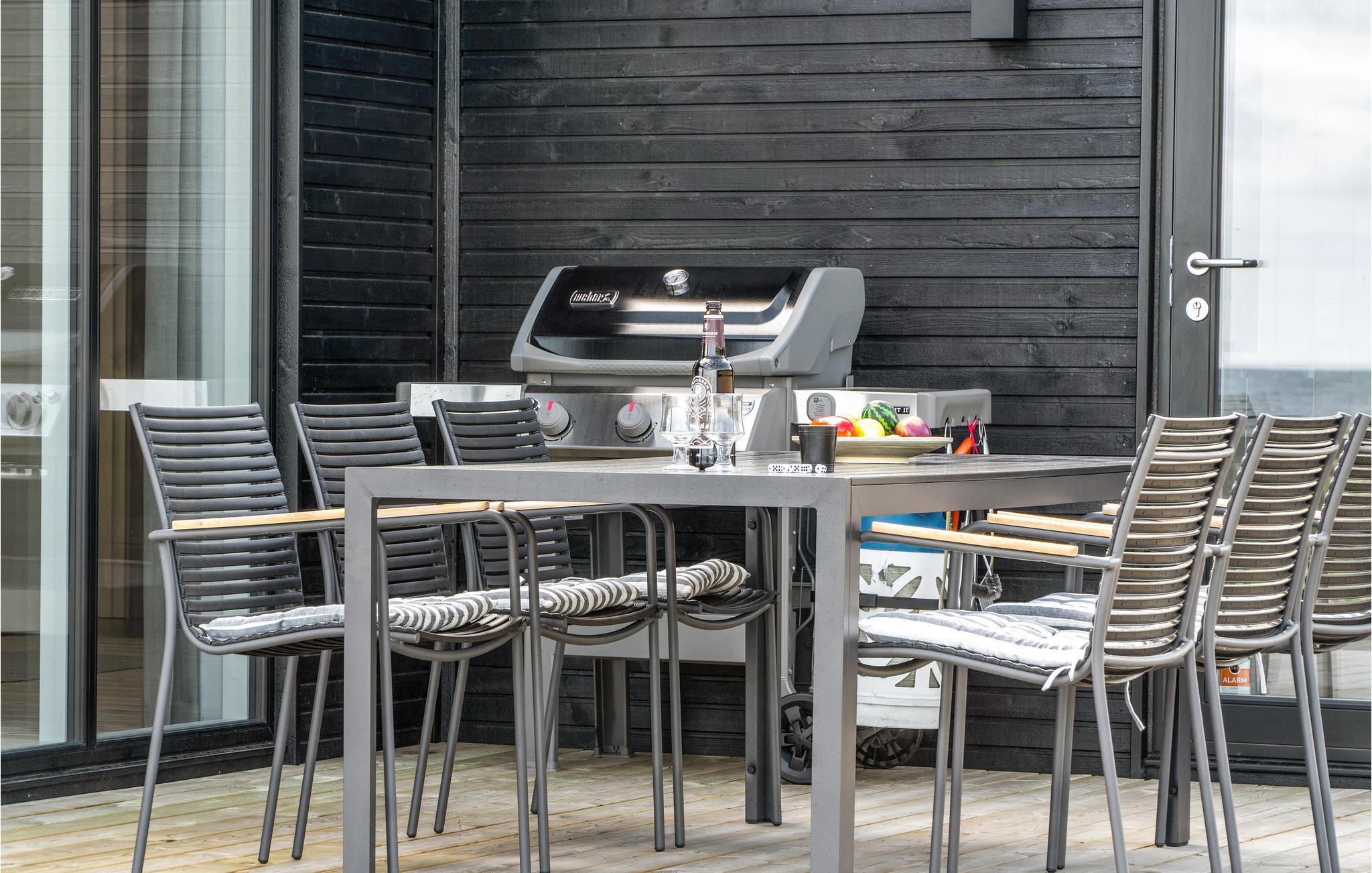 Das Haus liegt auf einem großen, sonnigen Grundstück mit Grill, Loungemöbeln und Sonnenliegen, wo Sie auf der großzügigen Terrasse mit Meerespanorama immer einen geschützten Platz finden. An hellen Sommerabenden können Sie sich es an der Feuerstelle gemütlich machen oder im finnischen Holzbad den Meerblick bei einem Glas Sekt oder einer Tasse Tee genießen.