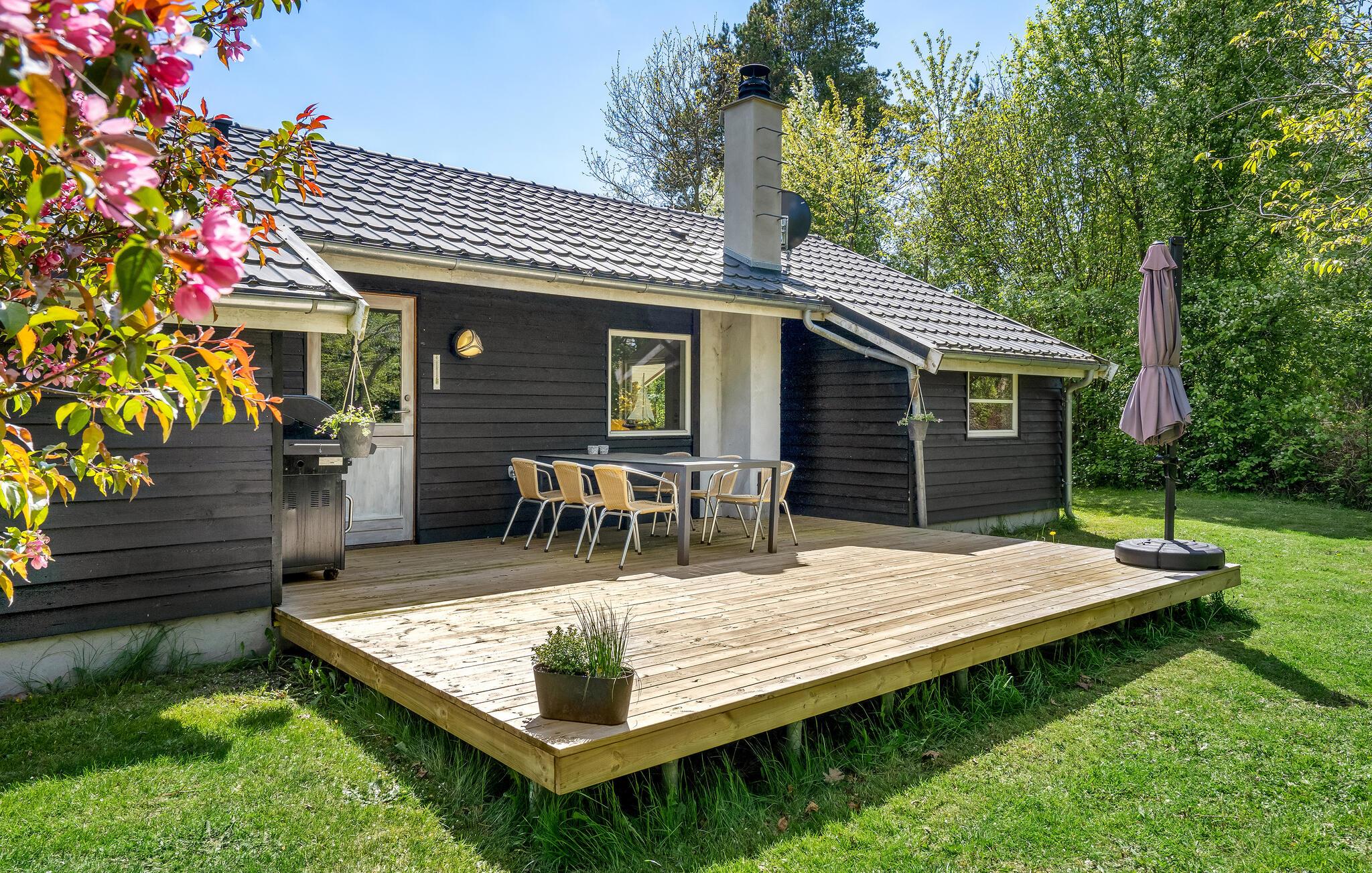Das schöne Ferienhaus befindet sich auf einem großen, geschlossenen Naturgrundstück, auf dem Platz zum Spielen und Gemütlichkeit für die ganze Familie ist.