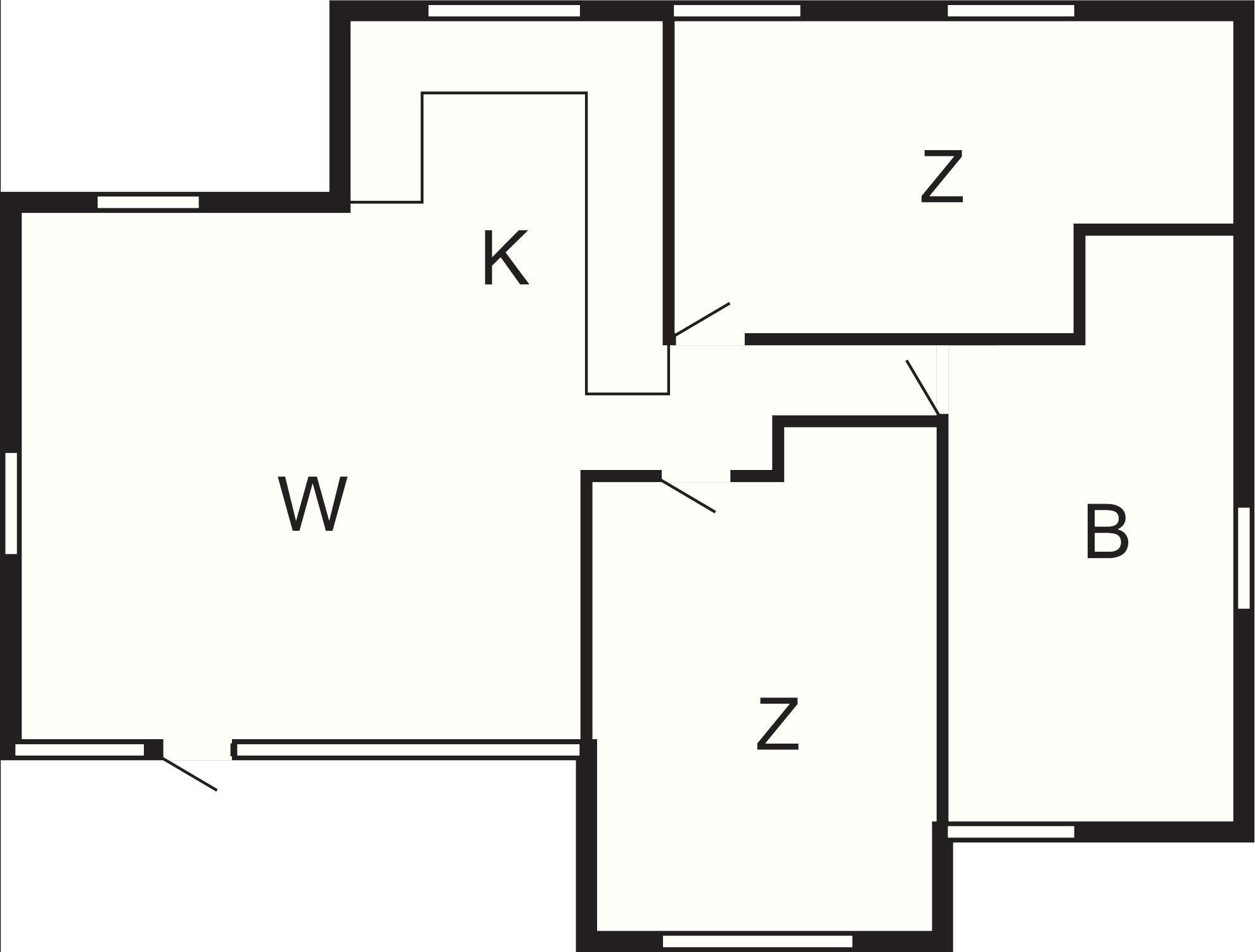 Off. Küche: E-Herd, Kühlschr. m. Gefrierfach, Mikrow., Abzugsh., Spülm.