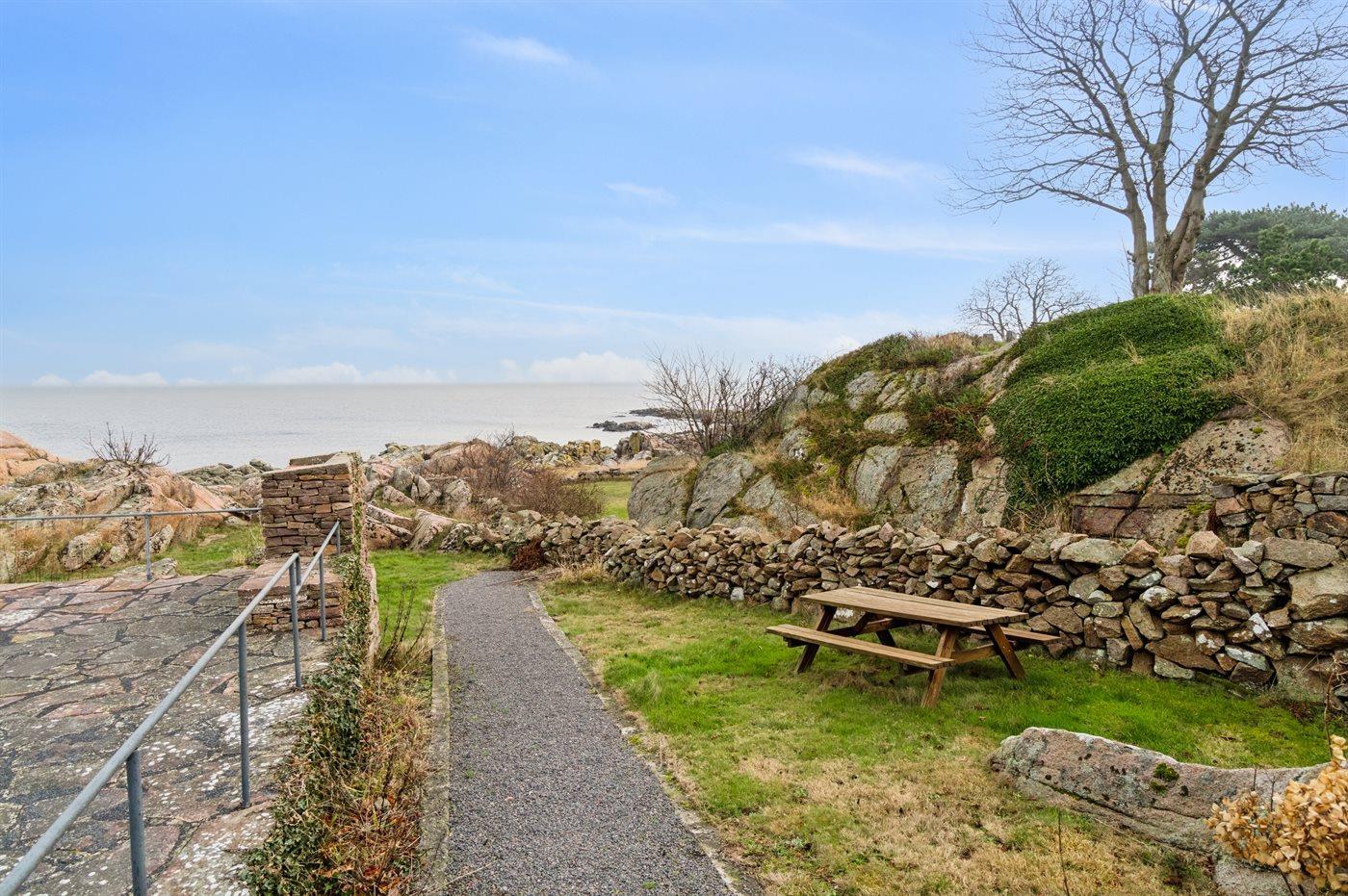 Das schöne Grundstück, das sich bis hinunter zu den Klippen erstreckt, ist mit den anderen Wohnungen gemeinsam, hat jedoch Zugang zu einem privaten Garten, der nur mit der Wohnung im Obergeschoss gemeinsam ist. Vom Garten aus hast du, über die Klippen, direkten Zugang zum Wasser – das Haus liegt schließlich in der ersten Reihe zum Meer.