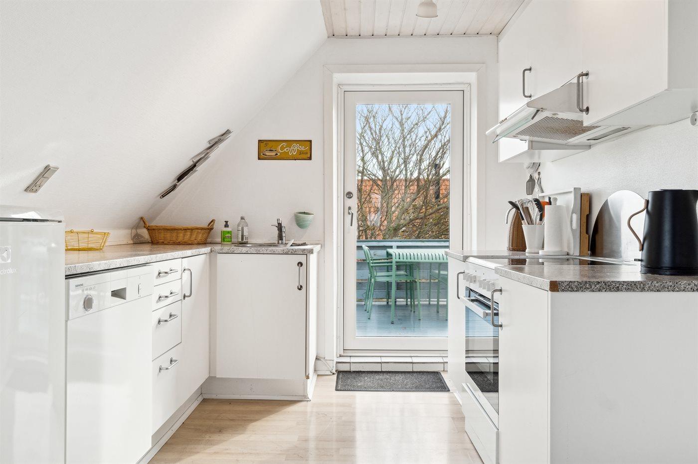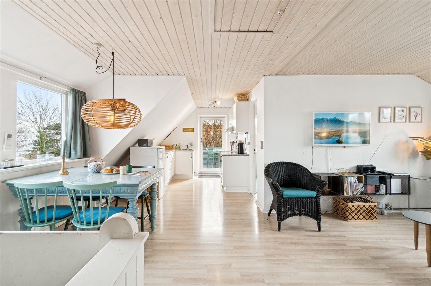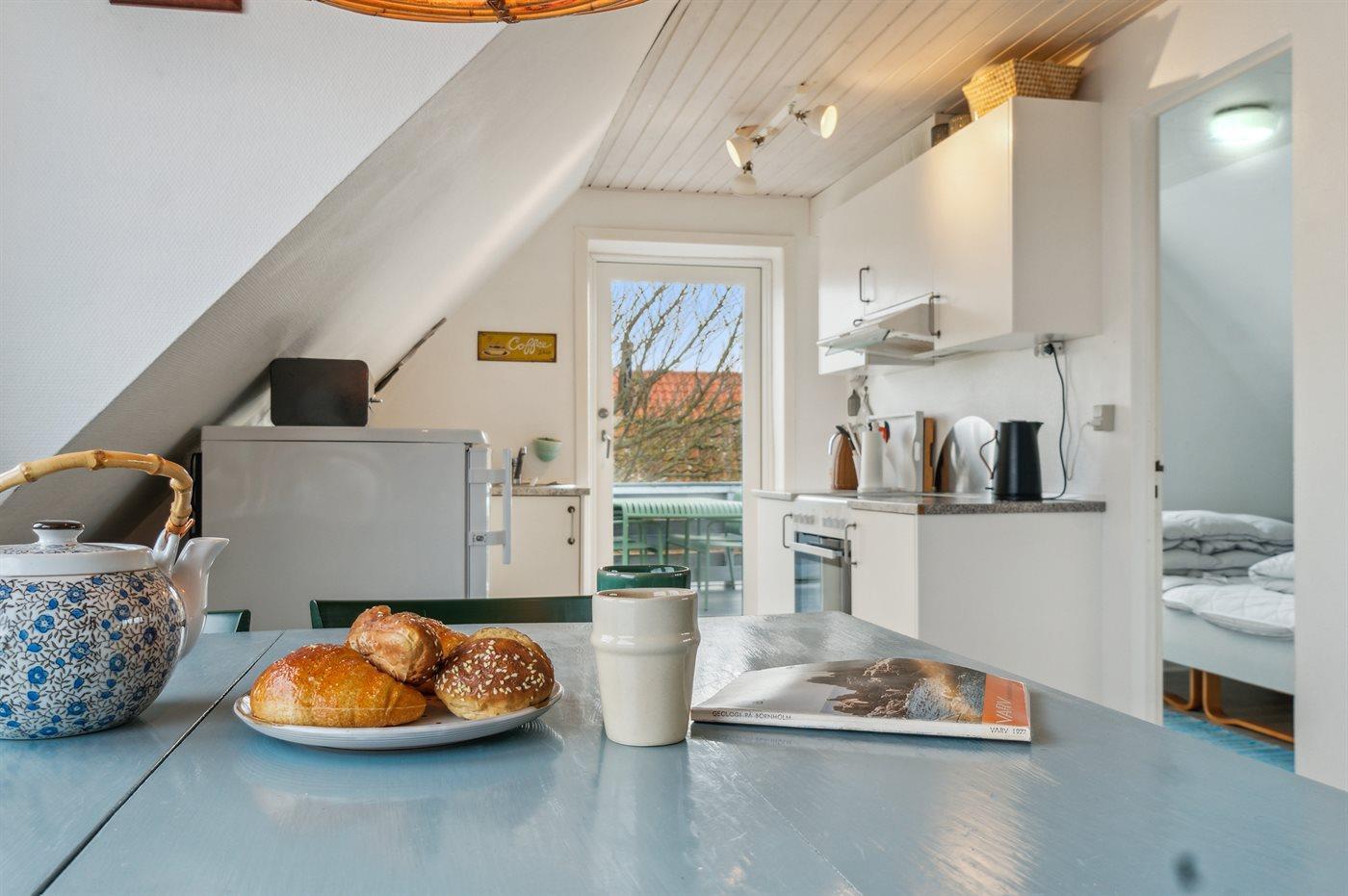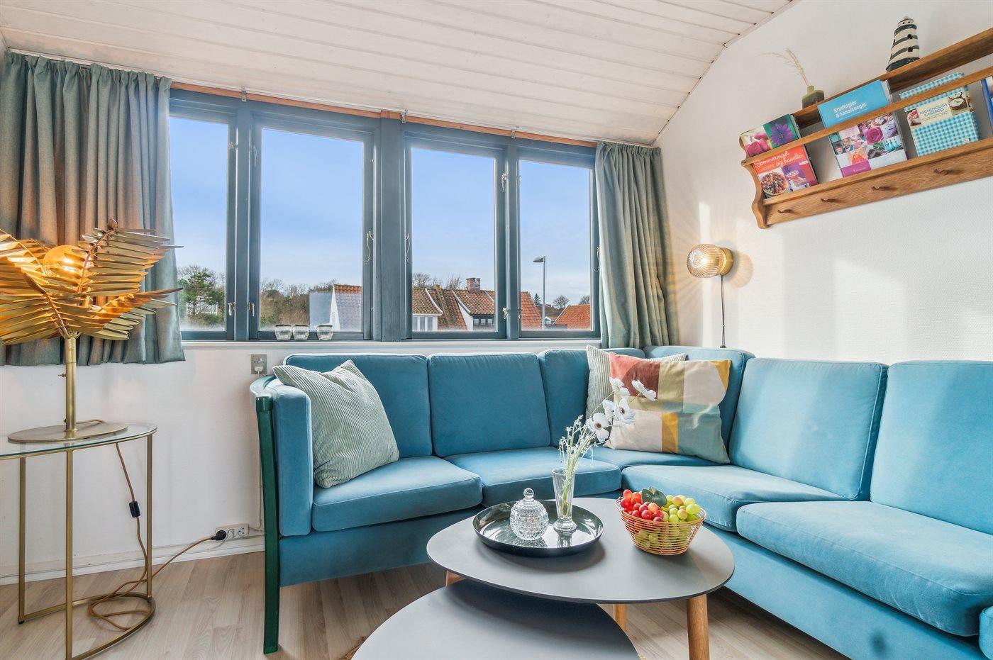 Gemütliche Ferienwohnung mit Meerblick und großer Dachterrasse in Allinge/Sandvig, perfekt für einen erholsamen Nordbornholm-Urlaub.