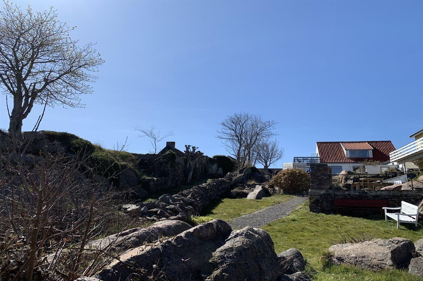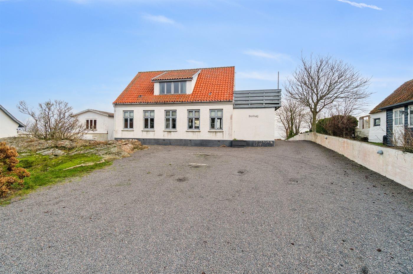 Das große Grundstück, das durch die Nähe zur Küste und die Felsen in der Umgebung geprägt ist, ist mit den anderen Mietern des kleinen Ferienortes Solhøj gemeinsam. Solhøj liegt in der Nähe der Veranstaltungsflächen des Volkstreffens ”Folkemødet”, wo es in der 24. KW von Menschen geradezu wimmelt, jedoch ansonsten ein ruhiger und friedlicher Ferienort ist.