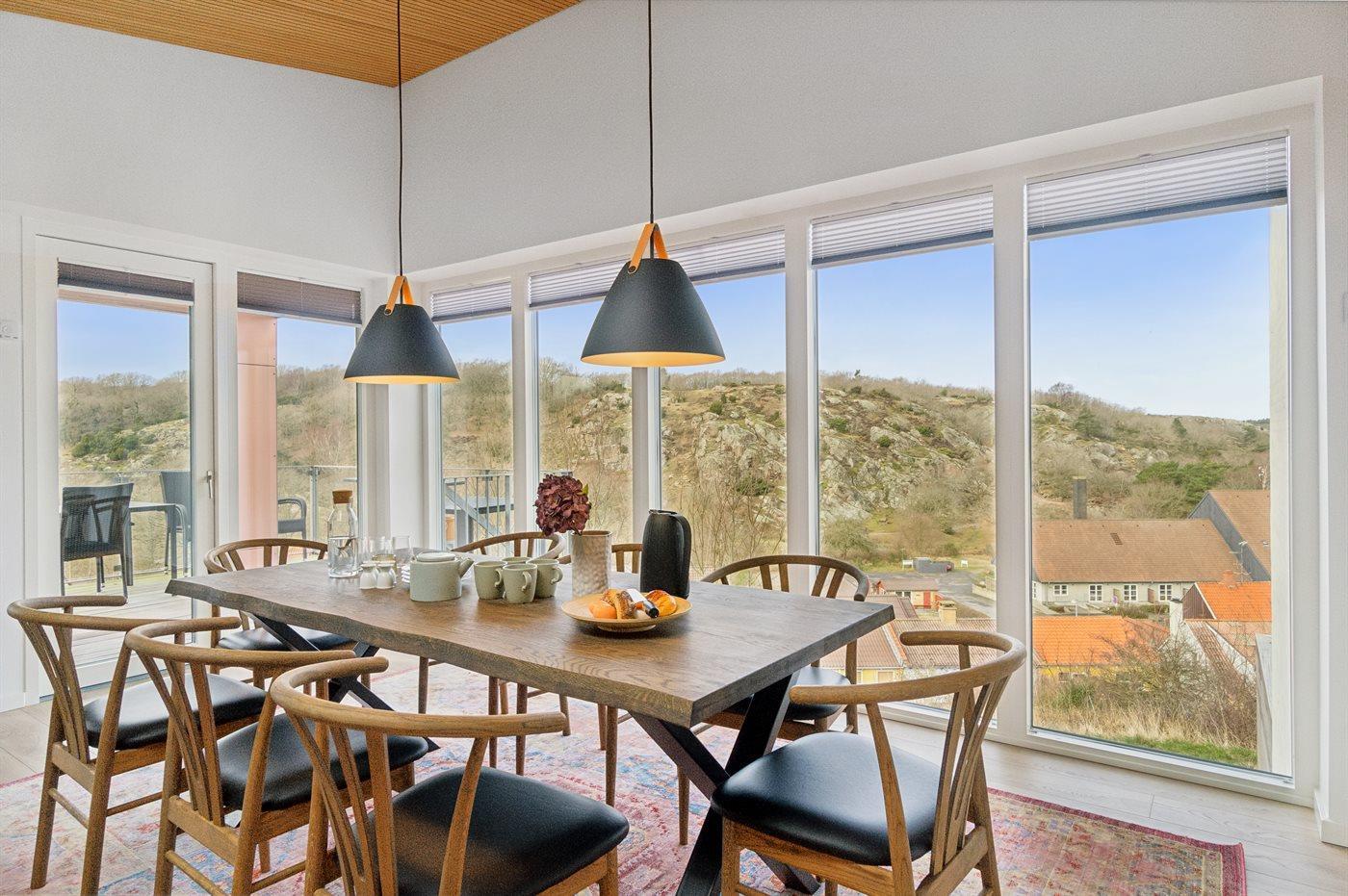 Modernes Ferienhaus mit Panoramablick auf Hammerknuden und Sandvigbucht, neu gebaut und ideal für Naturfreunde.