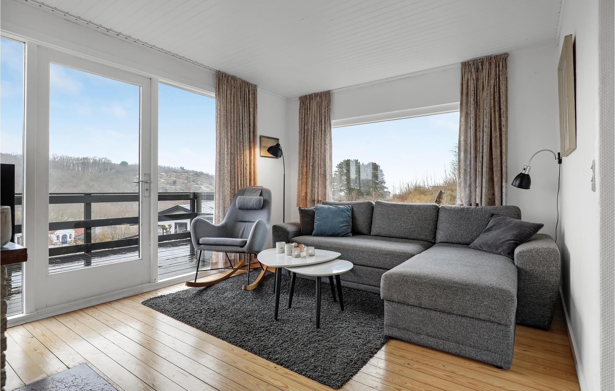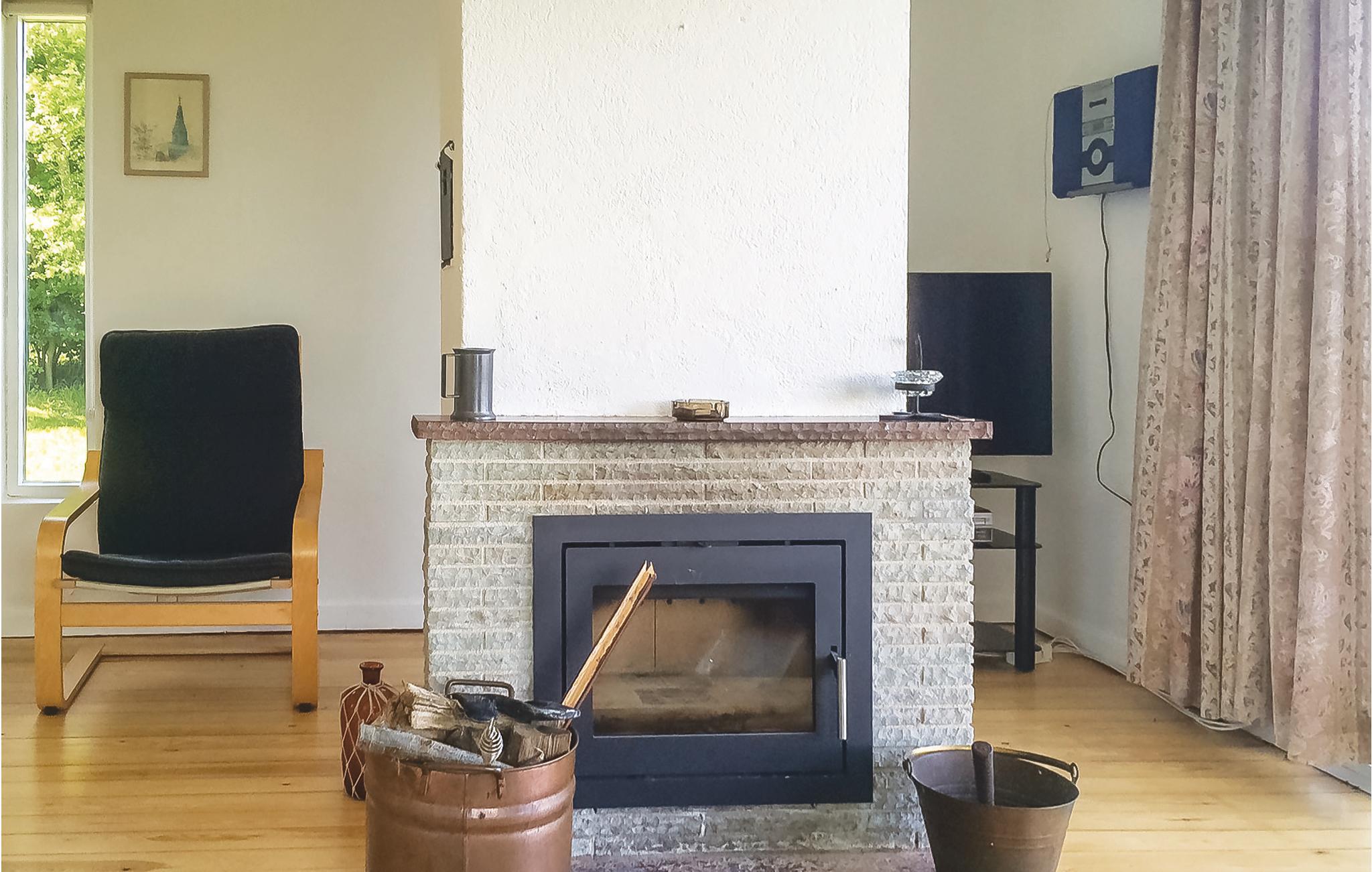 Ferienhaus mit Meerblick und Kamin in Sandvig