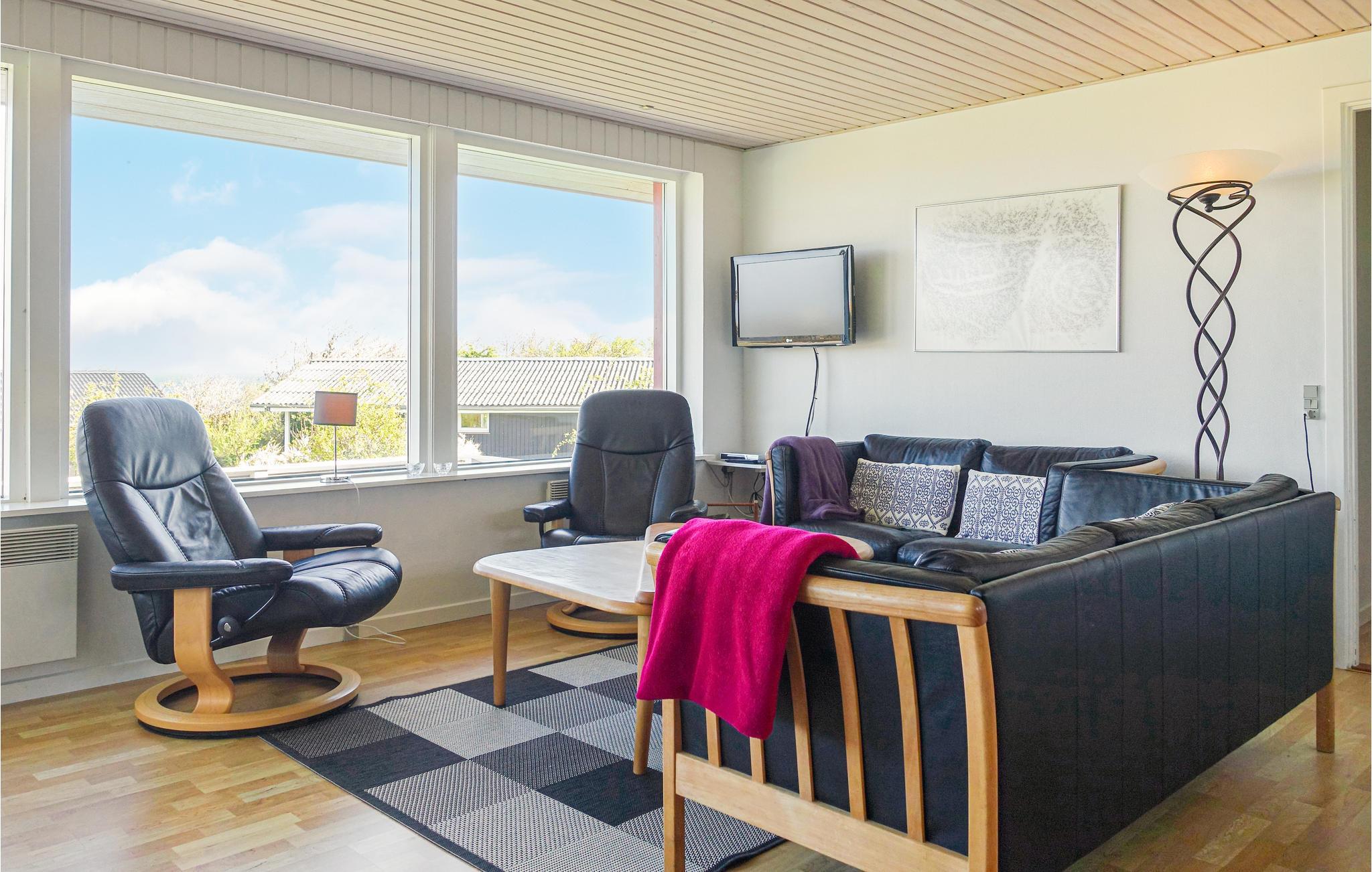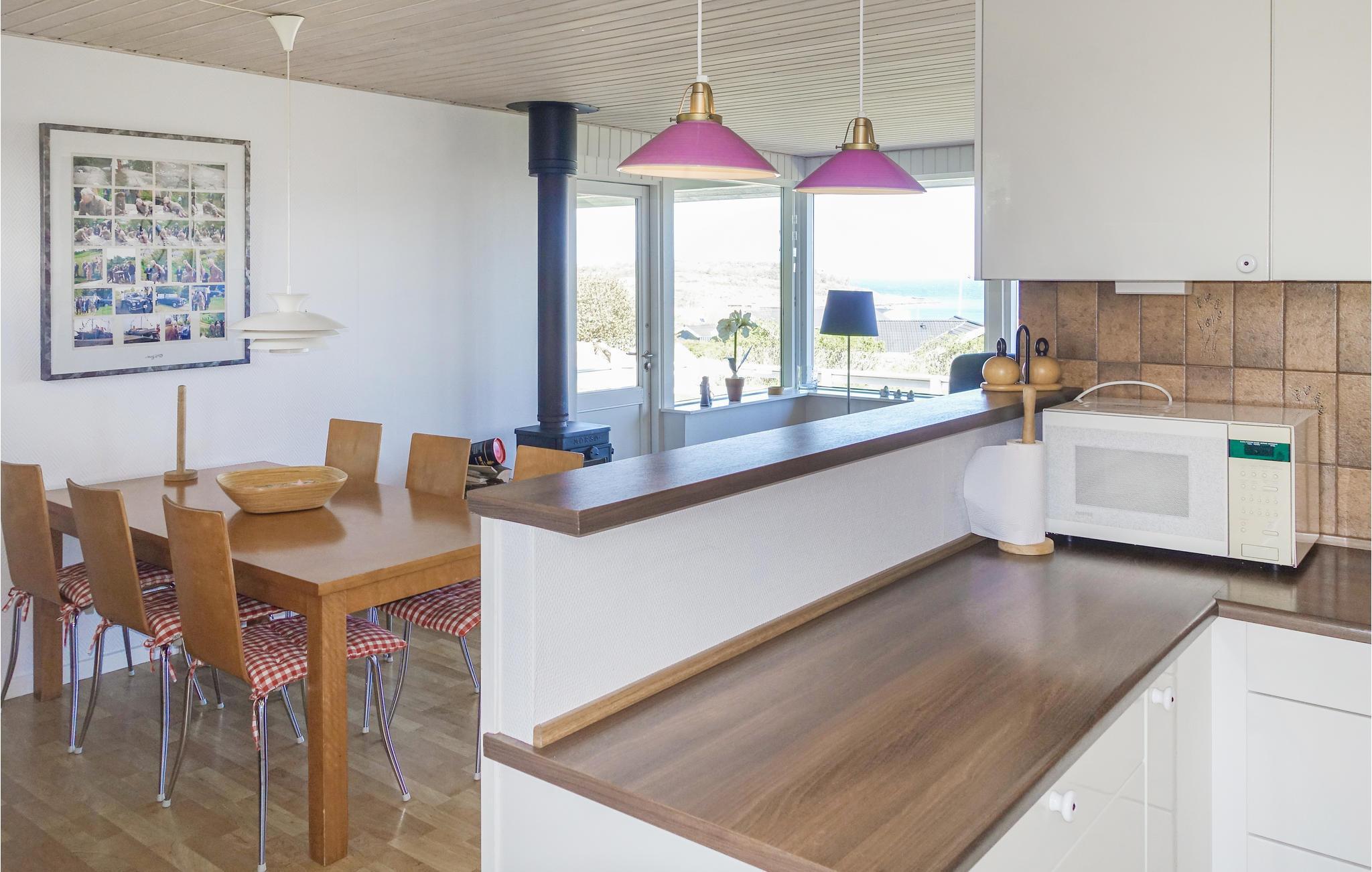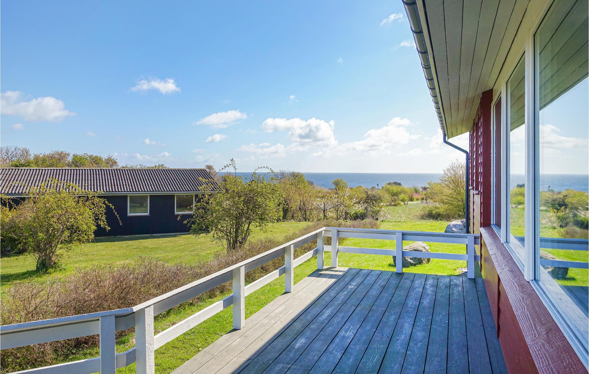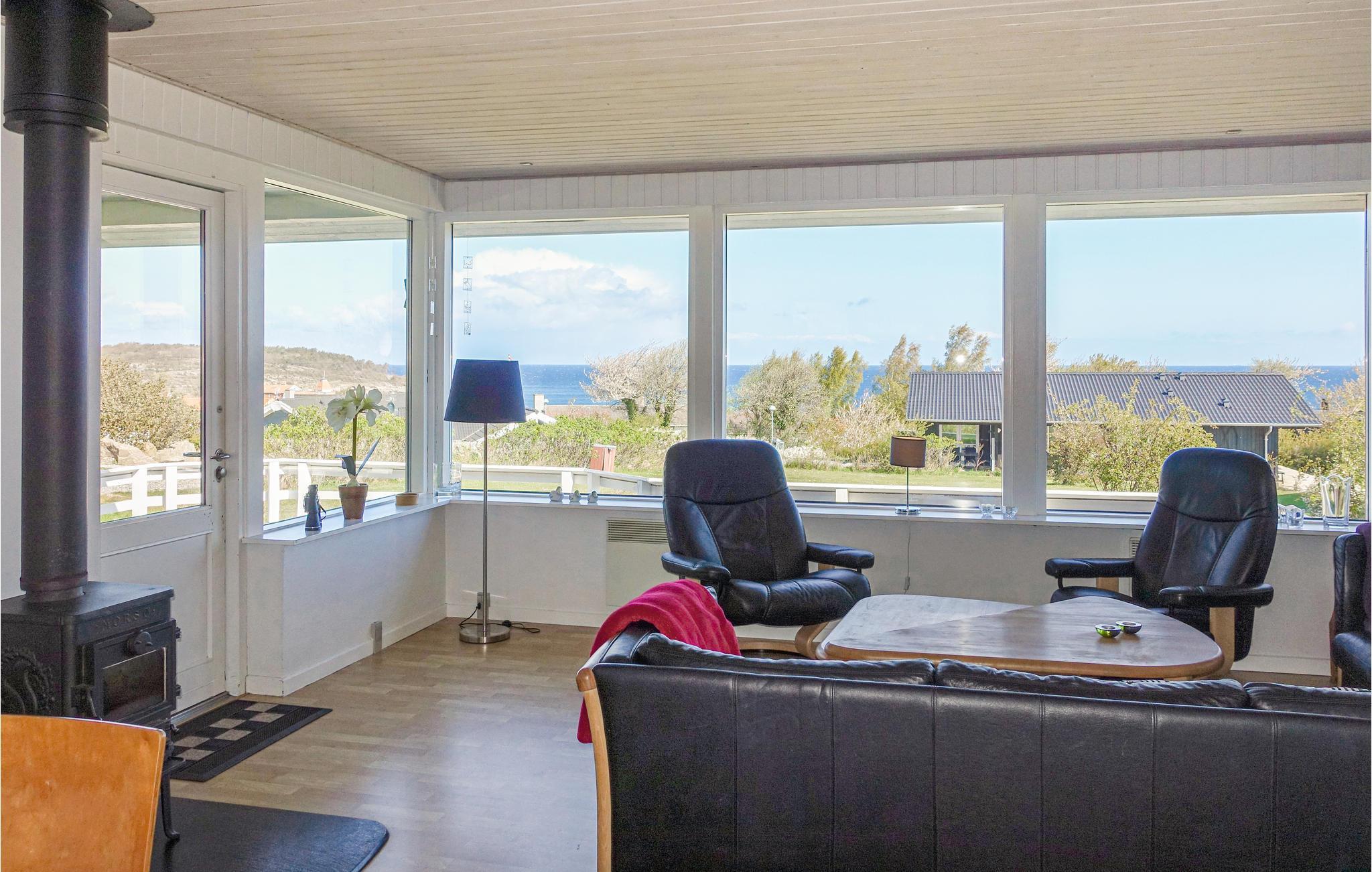 Traumhaft gelegenes Ferienhaus mit beeindruckendem Panoramablick auf die Ostsee und der Insel Christiansø im Hintergrund. Das Haus liegt in erhöhter Lage im charmanten Ort Sandvig und ist mit dem schönen Naturgebiet bei Hammeren benachbart.