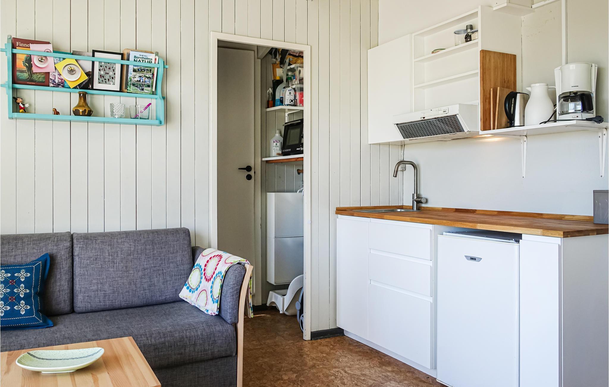 Willkommen in diesem gemütlichen Ferienhaus, das sowohl für ein Paar als auch für eine Familie mit Kindern geeignet ist. Das Herzstück des häuslichen Lebens ist die Wohnküche, in der Sie sich entspannen, fernsehen, Radio oder Musik hören und Ihre Lieblingsgerichte zubereiten und genießen können. Die Küche verfügt über eine Mikrowelle und zwei Kochplatten. Im Wohnzimmer befindet sich ein Doppelschlafsofa (140 cm).