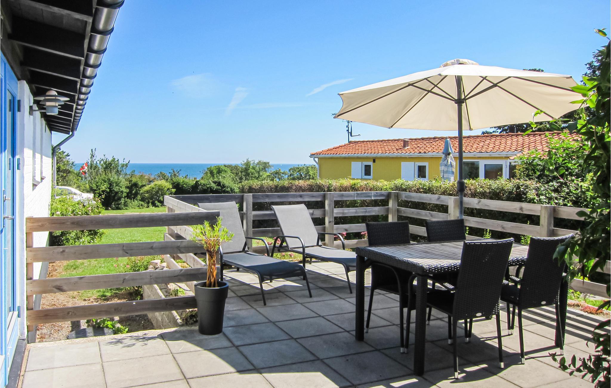 Helle Ferienwohnung mit Meerblick, Terrasse, Gemeinschaftspool und Nähe zu Strand und Allinge-Sandvig.