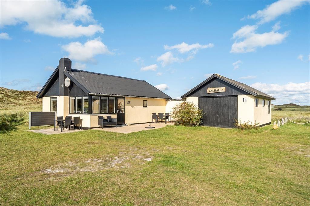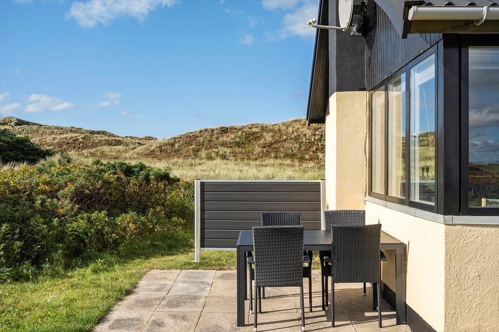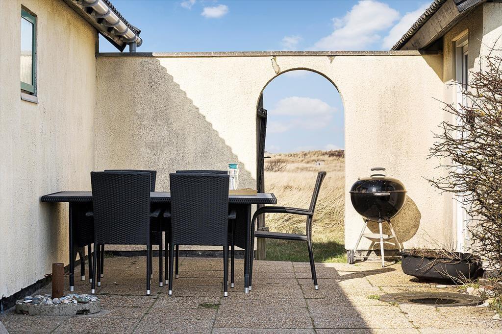 Die landschaftlich schöne Umgebung genießt du selbstverständlich auch unter freiem Himmel. Dein Ferienhaus ist von Terrassen umgeben. Ringsum bietet sich viel Platz. Die Nachbarhäuser sind angenehm weit entfernt. Du genießt eine traumhafte Ruhe, die nur vom fröhlichen Vogelgezwitscher und vom Klang der hinter den Dünen an den Strand rollenden Wellen unterbrochen wird. Bereits früh am Morgen wird dich die aufgehende Sonne mit dem ersten Becher Kaffee hinaus auf die Ostterrasse ziehen, auf der du vor dem Westwind geschützt weit über die Dünenheide blickst. Herrliche Aussichten erwarten dich außerdem auf der Süd- und der Westterrasse. Letztgenannte eignet sich für bestens für den späten Nachmittag und die Abendstunden, da du hier den Sonnenuntergang hinter den Dünen aus erster Reihe genießt. Das große Naturgrundstück bietet deinen Kindern viel Platz zum Umhertollen und Spielen. Problemlos könnt ihr zusammen euren neuen Lenkdrachen in ungeahnte Höhen aufsteigen lassen. Eure mitgebrachten Fahrräder, das Angelequipment und die Surfausrüstung lagert ihr im Nebengebäude, wo sich zudem ein großzügig bemessener Fischreinigungsplatz mit fließendem Wasser befindet. Beachte bitte, dass das Wasser in den Wintermonaten abgestellt ist. Gartenmöbel und entsprechende Auflagen, Liegestühle und Sonnenschirme sind ebenfalls im Nebengebäude untergebracht. Ein Holzkohlegrill ist vorhanden und lädt zum ein oder anderen stimmungsvollen Grillabend vor herrlicher Kulisse ein.