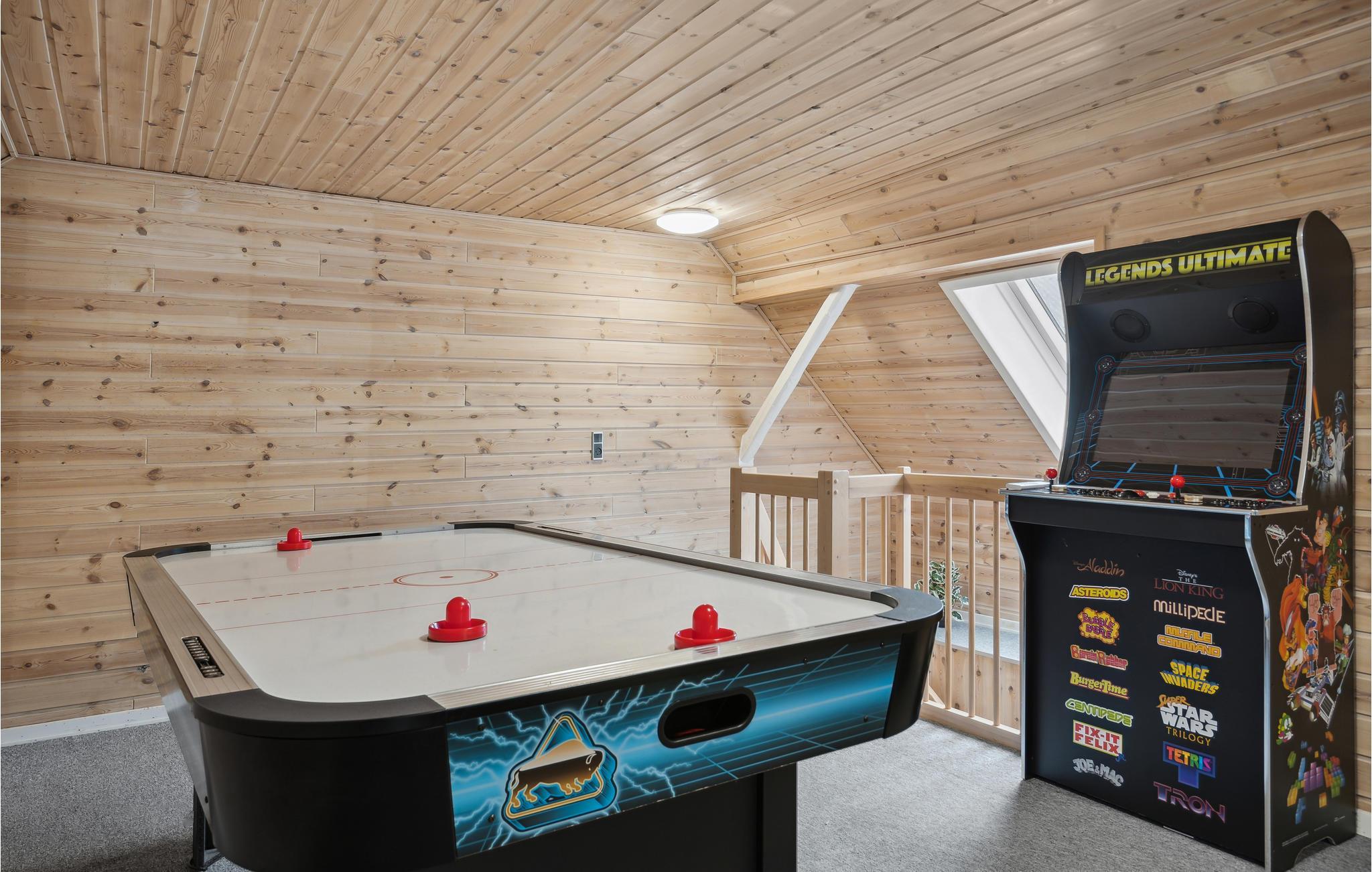 Das Ferienhaus verfügt über einen Kaminofen, der mit Holzpellets beheizt wird und so zu niedrigeren Heizkosten beiträgt. Im Spielraum haben Sie Pooltisch, Airhockey und Tischfußball. Zum Haus gehört auch ein geschlossener, teilweise überdachter Innenhof mit Tischtennis und anderen Spielen.