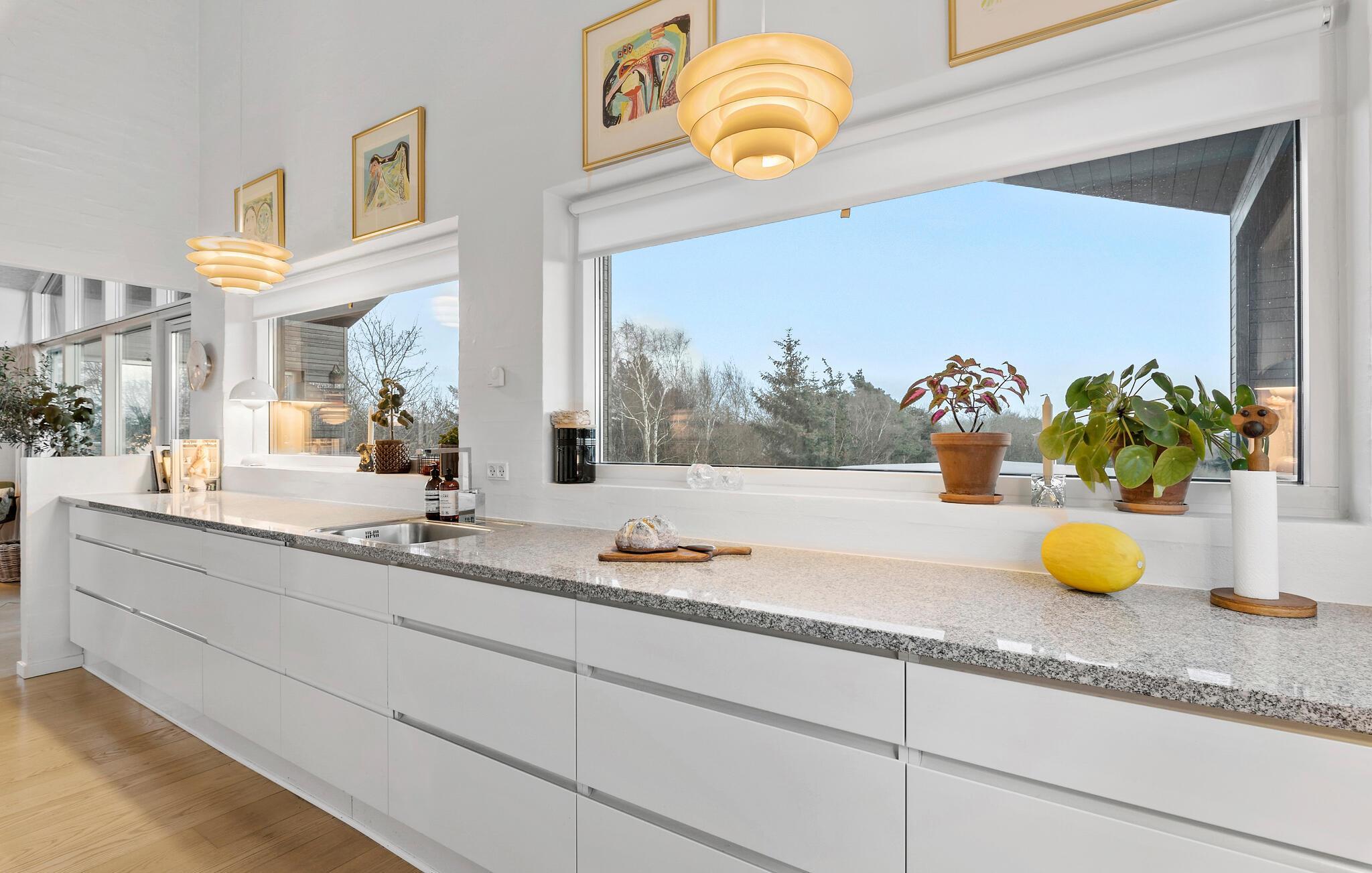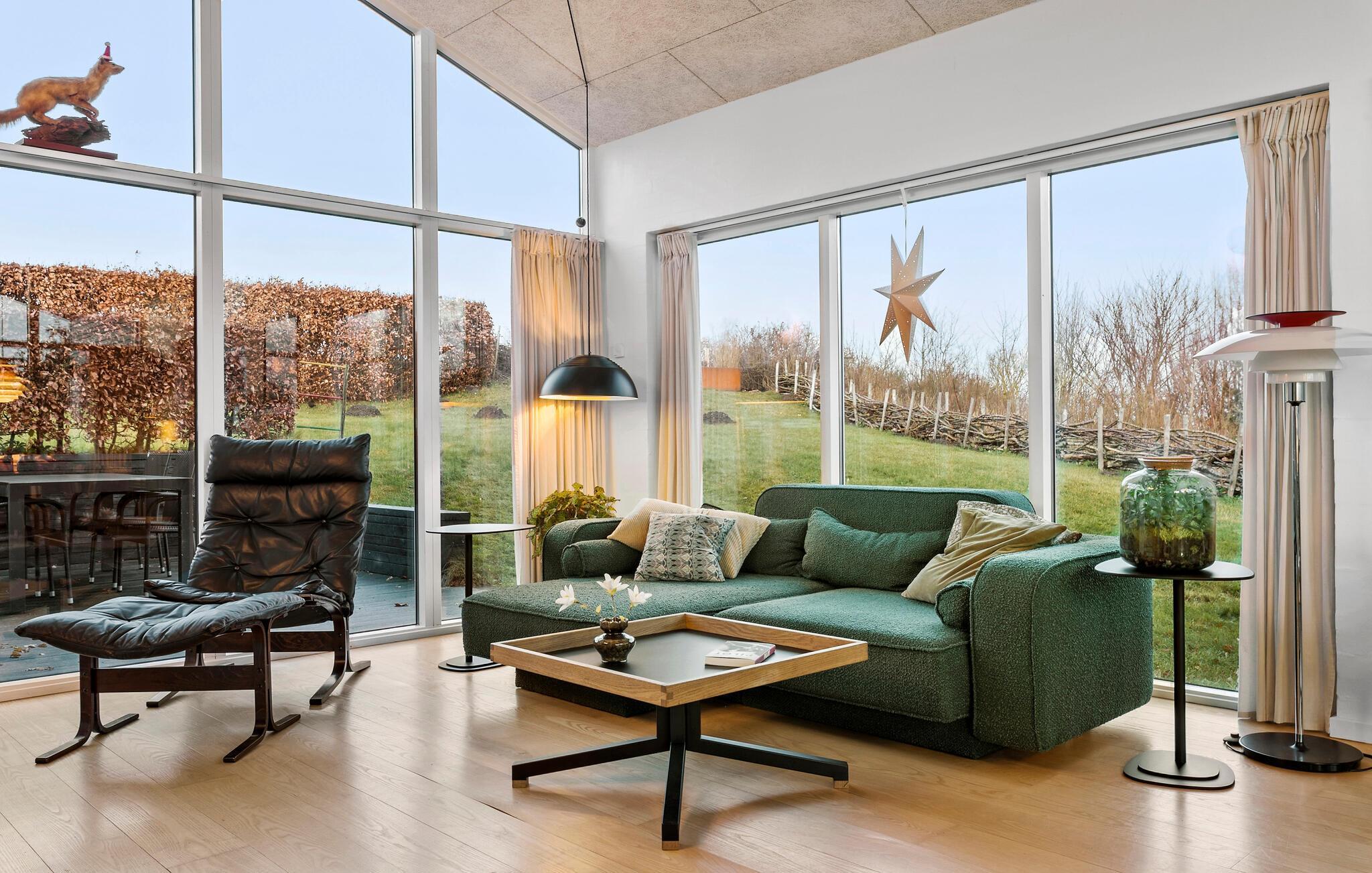Ein Urlaub in diesem Ferienhaus in Sebbersund bietet Ihnen pure Entspannung und skandinavischen Komfort sowie eine wundervolle Aussicht auf den Fjord, der ganz in der Nähe liegt. Das moderne Wohnzimmer mit seinen hohen Decken und großen Fensterfronten sorgt für eine helle und einladende Atmosphäre. Machen Sie es sich auf dem bequemen Sofa gemütlich, während Sie den Ausblick auf den gepflegten Garten genießen. Hier können Sie die Seele baumeln lassen oder bei einem guten Buch entspannen. Bereiten Sie in der eleganten, voll ausgestatteten Küche köstliche Mahlzeiten zu. Mit viel Arbeitsfläche und hochwertigen Geräten wird Kochen hier zum Vergnügen. Servieren Sie Ihre Gerichte anschließend im stilvollen Essbereich oder draußen an einem der zahlreichen Esstische, wo Sie von der frischen Luft und der Ruhe der Umgebung begleitet werden.