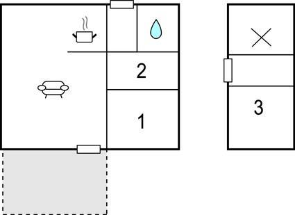 Wohnraum/Küche - 1 Schlafmöglichkeit. (Schlafsofa,Matratze,Sonstiges).