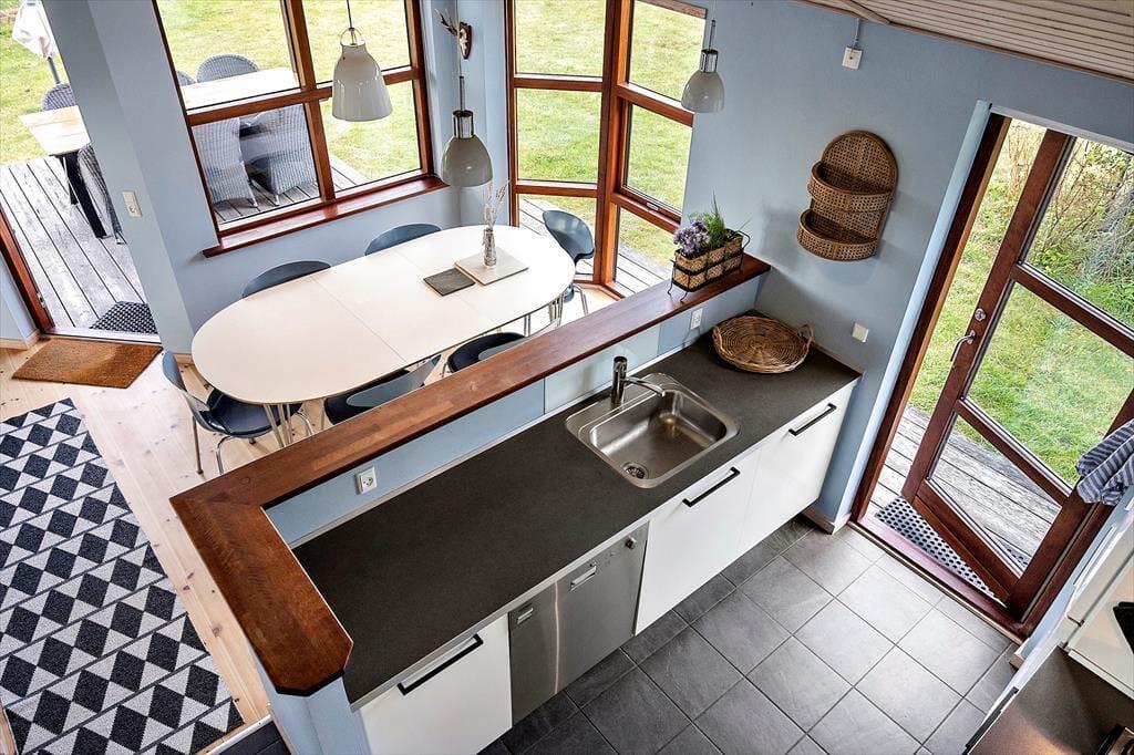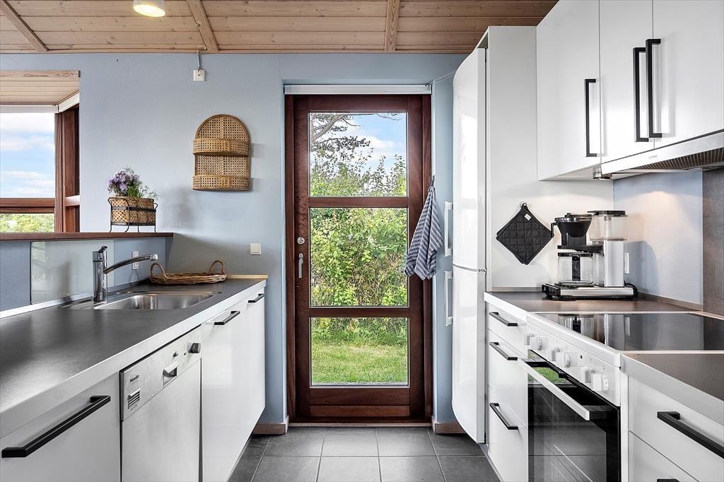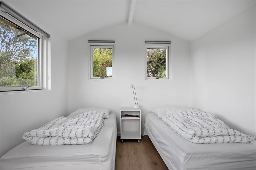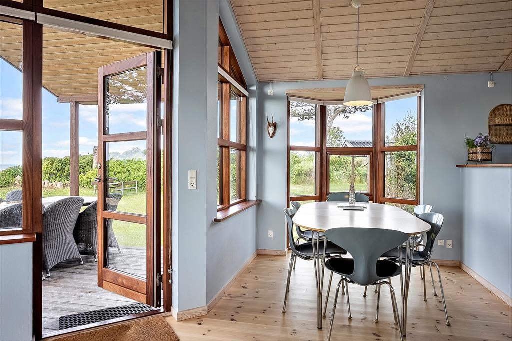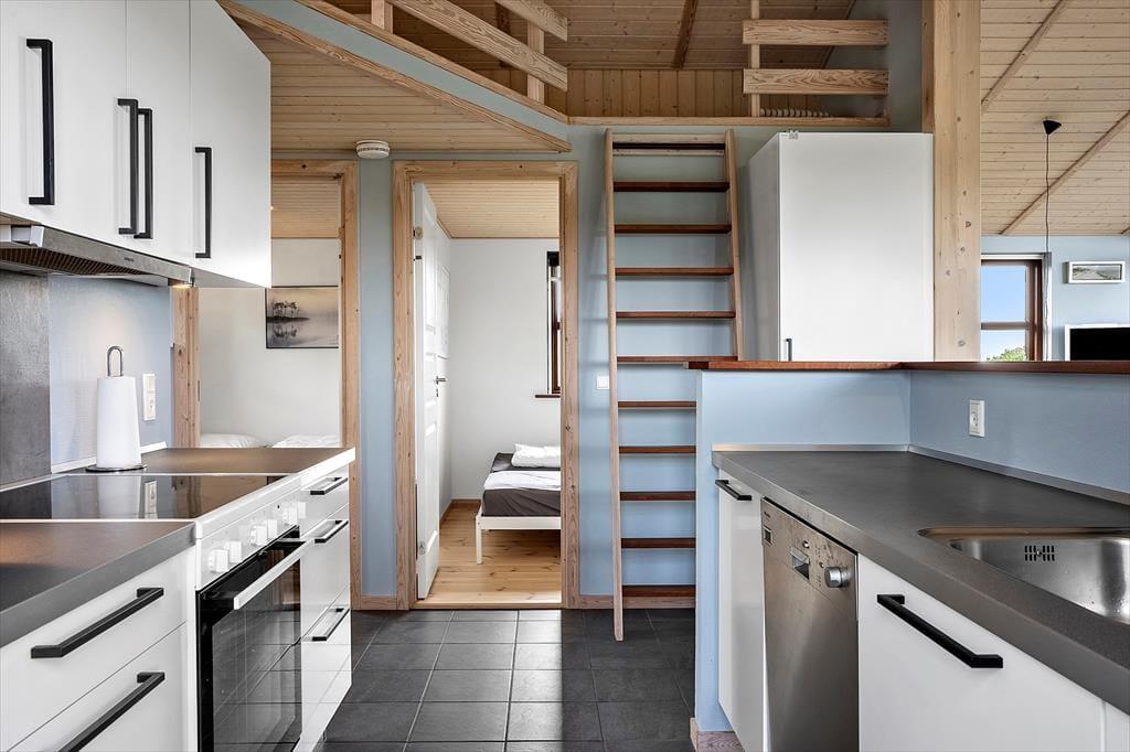 Das im Jahr 2008 erbaute Ferienhaus besticht mit unglaublich viel Charme. Dem Wohnraum wird durch hohe Decken und große Fensterpartien ein luftig-helles Ambiente verliehen. Durch die Fenster genießen Sie einen attraktiven Blick auf das Meer. Die Küche fügt sich offen in den Wohnraum ein. Sie beinhaltet unter anderem einen Herd, einen Kühl- und Gefrierschrank, einen Geschirrspüler und einen Fliesenboden inklusive Fußbodenheizung. Im Wohnraum mit Ausgang auf die Terrasse laden ein Ecksofa, ein Kaminofen, ein gemütlicher Essplatz und ein Fernseher mit Chromecast zum Streamen (TV-Kanäle sind nicht verfügbar) zu gemütlichen Stunden in geselliger Runde ein. Die Schlafplätze verteilen sich auf zwei Schlafraume mit Doppelbetten. Auf dem Schlafboden stehen darüber hinaus drei Matratzen zur Verfügung. Das Ferienhaus wird mittels des Kaminofens, einer Wärmepumpe und Elektroheizkörpern beheizt.