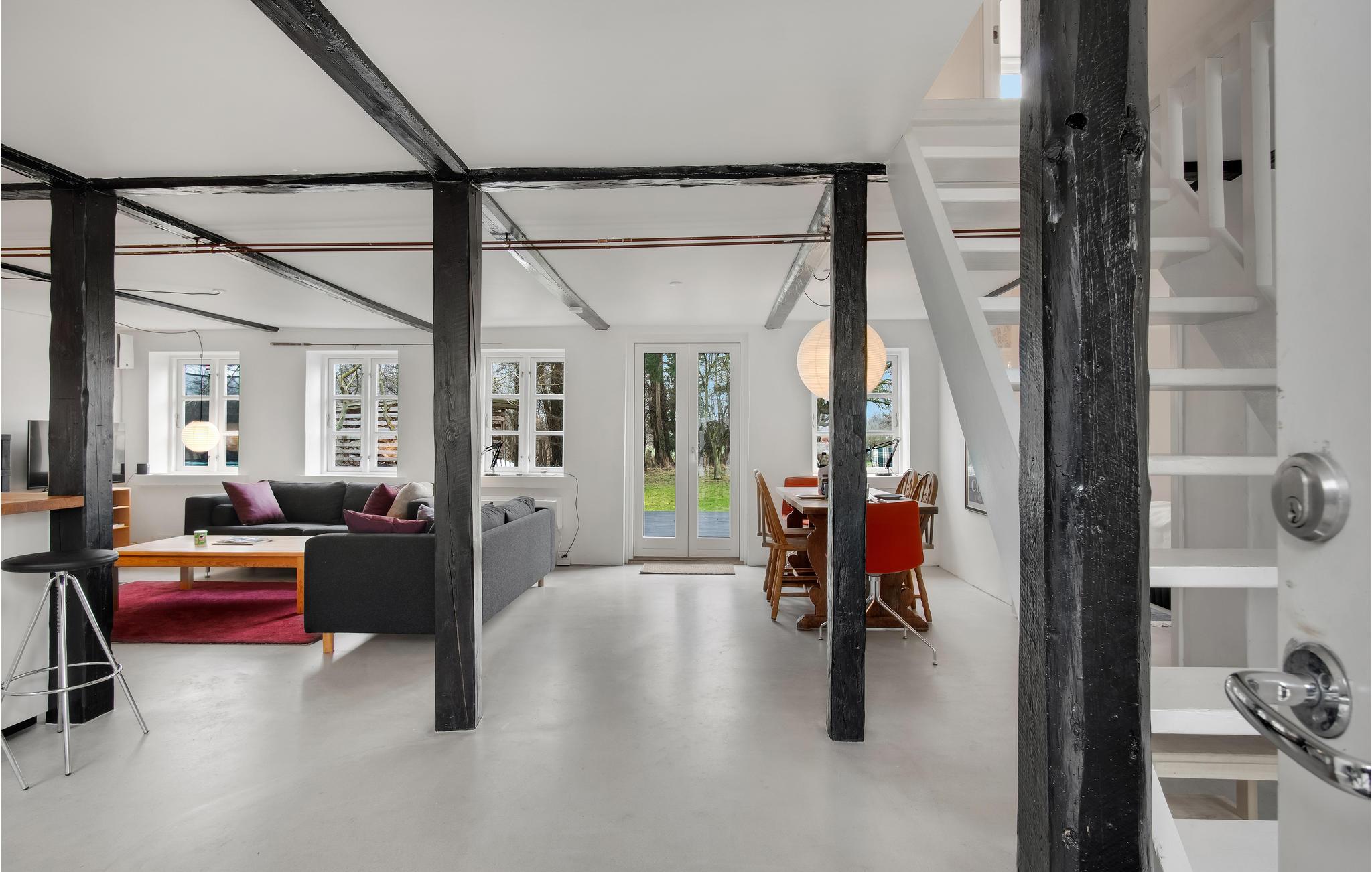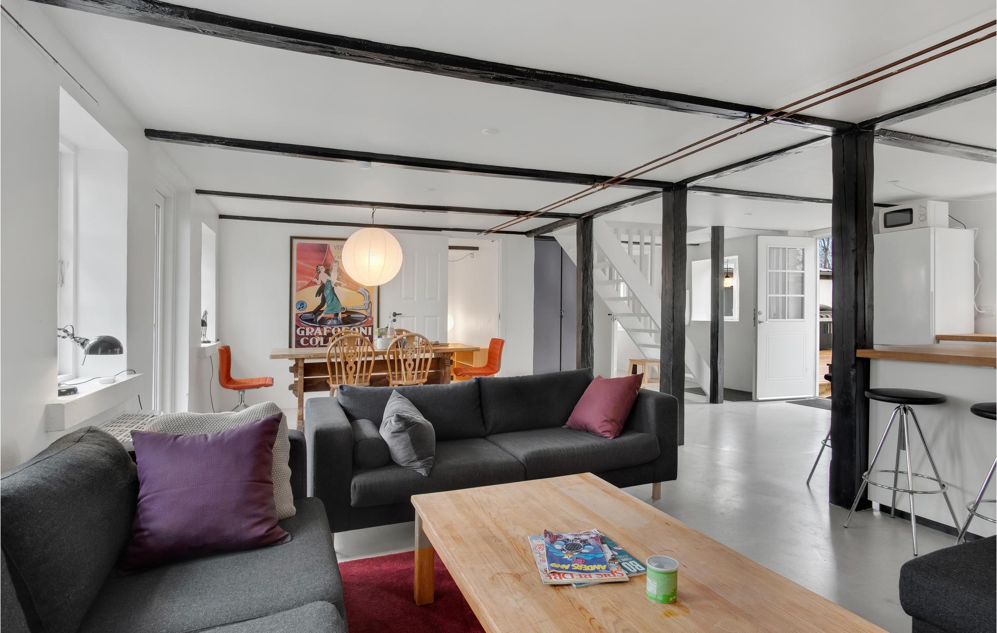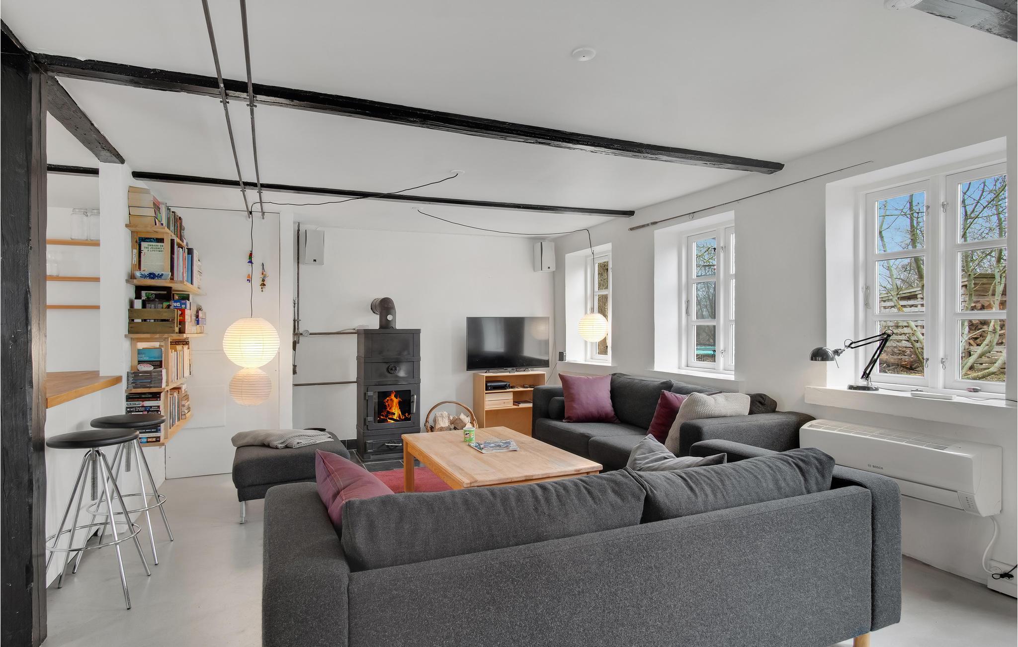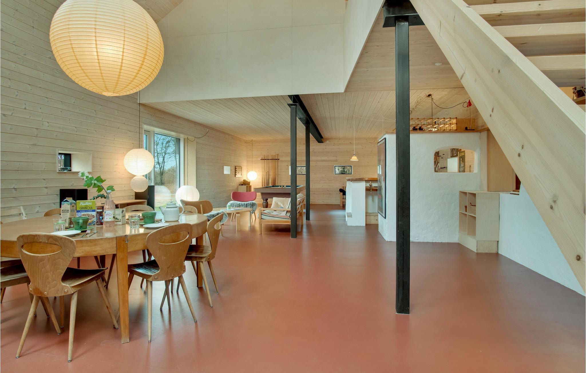 Hier können Sie sich mit Ihren Lieben häuslich einrichten. Die hellen Räume mit moderner Einrichtung und markanten Holzbalken schaffen eine behagliche Wohlfühlatmosphäre im Haus. Bodentiefe Fenster sorgen dafür, dass Sie den schönen Blick auf die Umgebung ideal genießen können. Freuen Sie sich auf ausgelassene Familienduelle beim Billard oder Tischtennis und gemeinsame Mahlzeiten mit Blick in den Garten. Machen Sie es sich am Ende eines herrlichen Tages im Wohnbereich zusammen gemütlich und plaudern Sie bis spät in den Abend beim leisen Knistern der Flammen im Kaminofen.